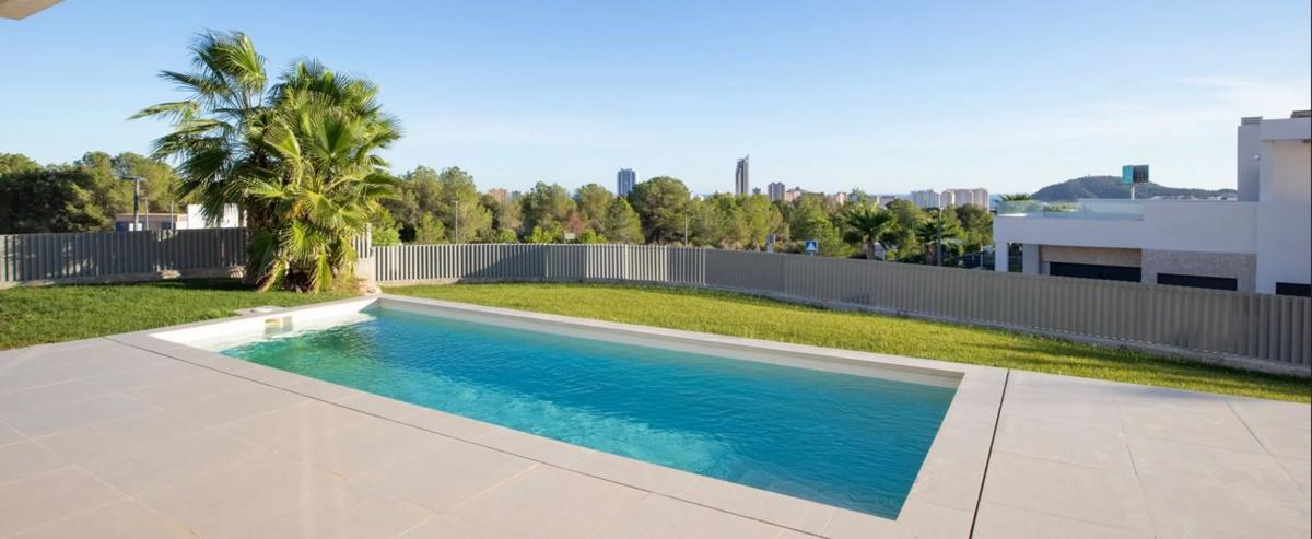VILLA DE LUJO CON PISCINA EN CALLE REY FELIPE II. URBANIZACIÓNSEA HILLS Les presentamos una nueva villa de estilo contemporáneo con vistas al mar, situadas en el término municipal de Finest...