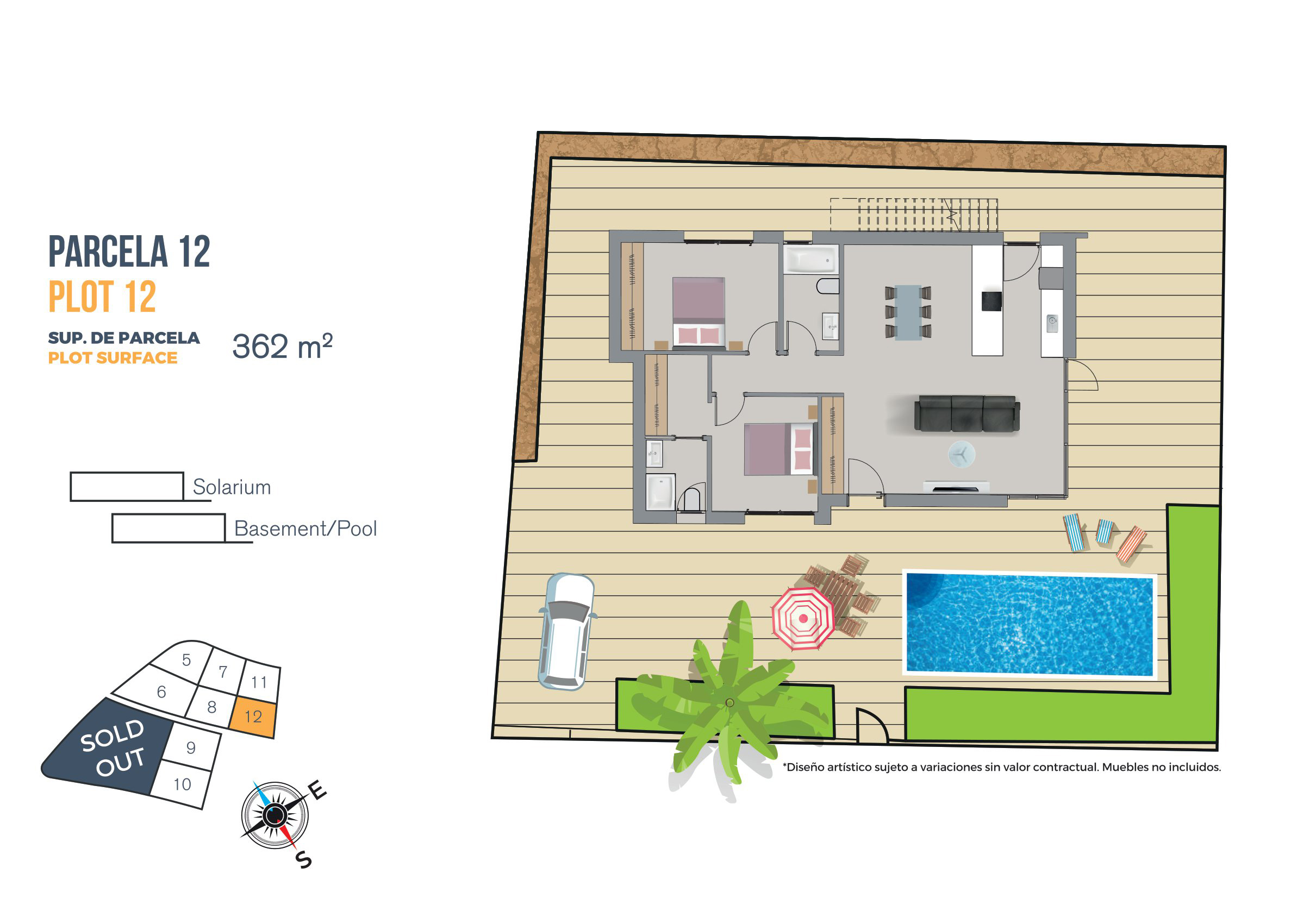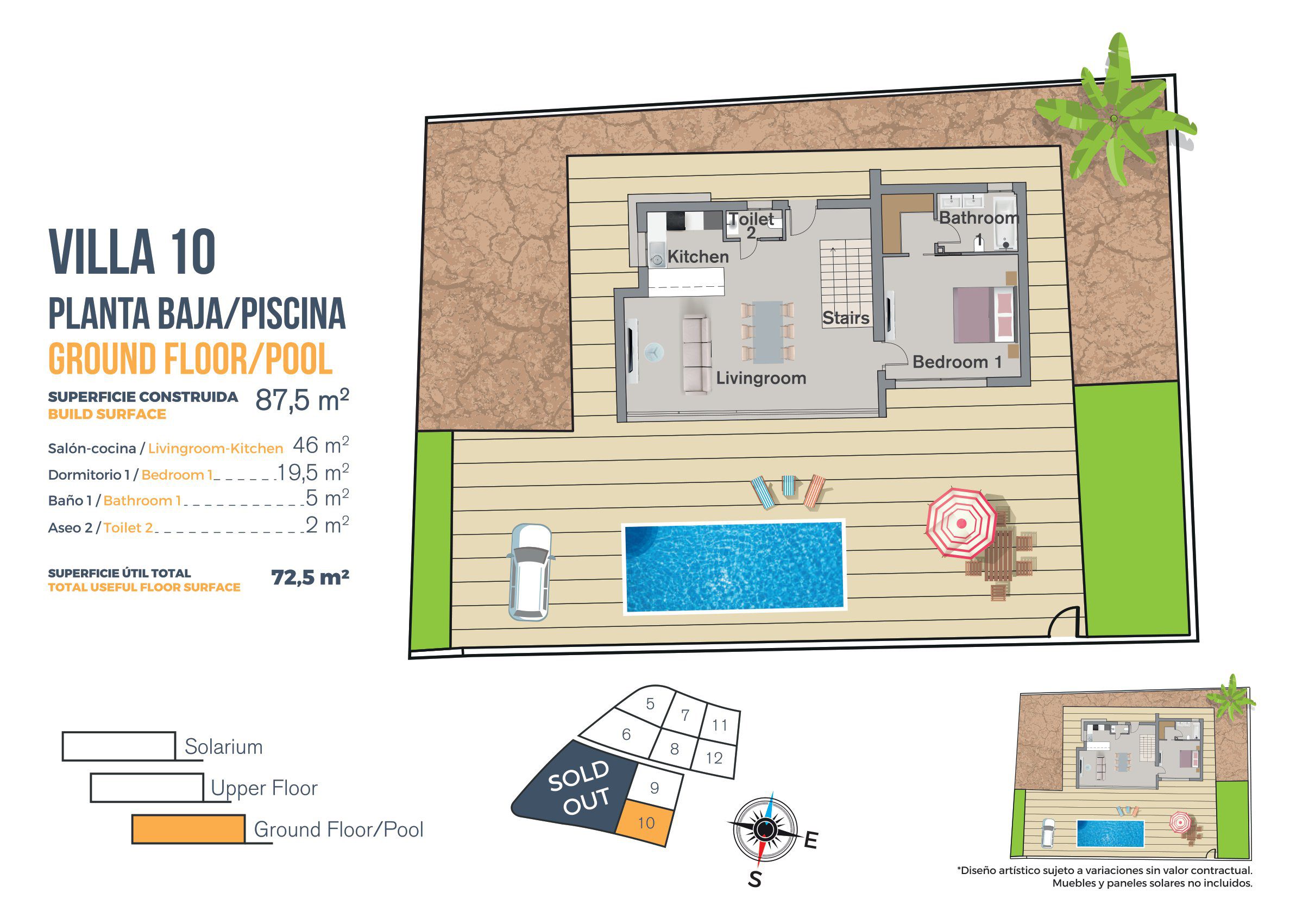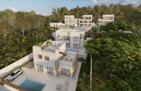 Elke villa beschikt over exclusieve buitenruimtes, waaronder een privézwembad, een tuin en een solarium met 360º uitzicht over de omgeving. Er is de mogelijkheid om tegen een redelijke prijs een tweede verdieping met extra terras toe te voegen.
