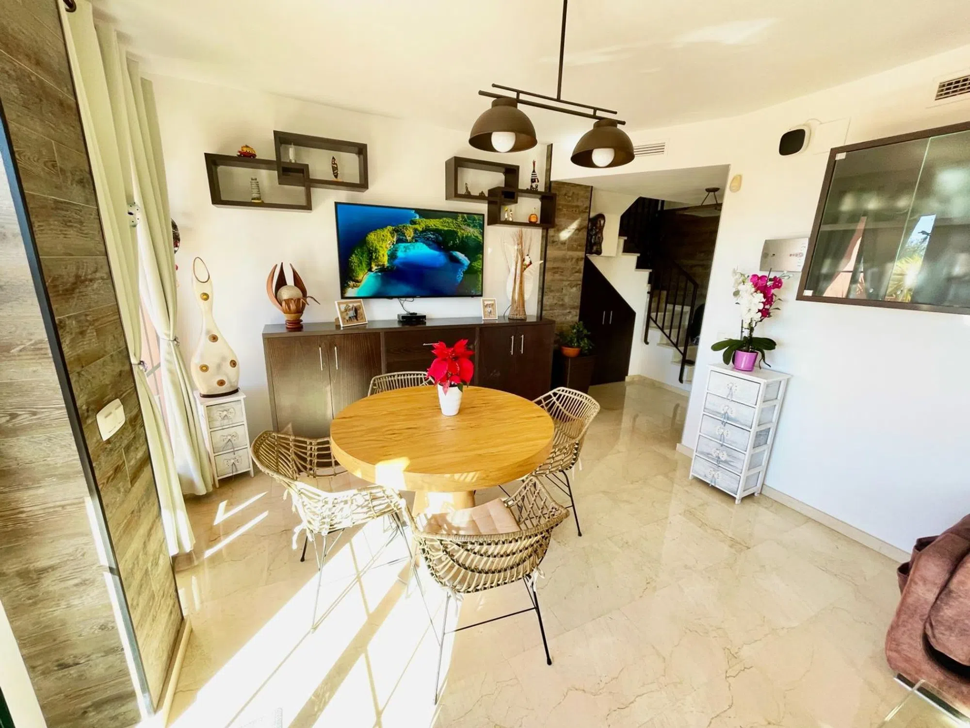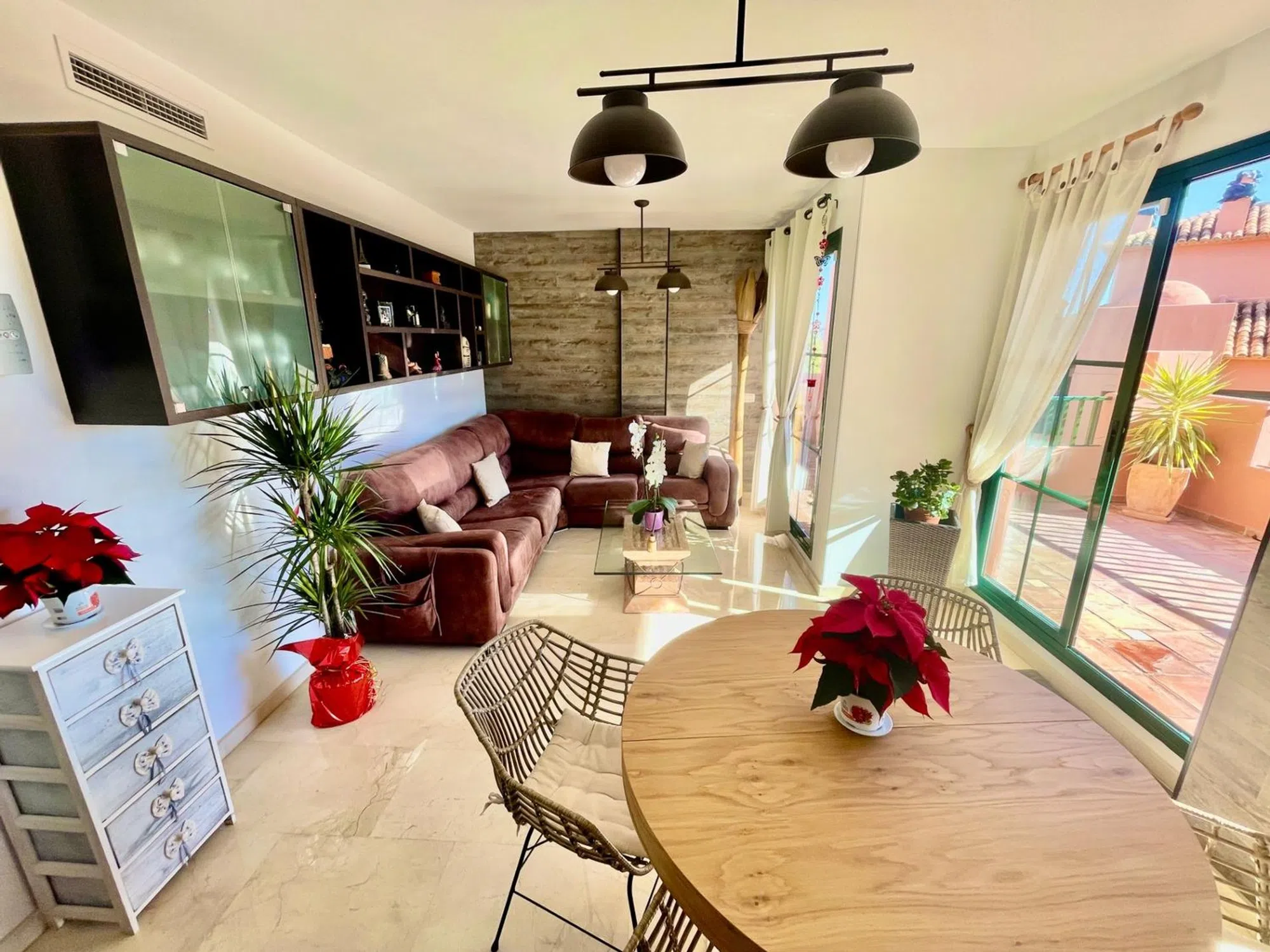 ¡Exclusivo atico duplex de esquina reformado con jardín y piscina comunitaria en un entorno privilegiado! Descubre este impresionante duplex de esquina, completamente reformado, con espacios amplios, modernos y diseñados para el máximo confort. Ubicado en una zona tranquila y bien comunicada, esta vivienda es perfecta para familias que buscan calidad de vida en un entorno privilegiado. Cuenta con 3 habitaciones y 3 baños, distribuidos de manera funcional para aprovechar al máximo cada rincón de la casa. Su amplio jardín delantero y trasero ofrece un oasis de tranquilidad, con zona verde y espacio suficiente para disfrutar del aire libre. Además, dispone de un porche techado con barbacoa, ideal para reuniones y momentos especiales. En el interior, un luminoso salón de concepto abierto se integra perfectamente con una salida en la terraza grande con vistas al mar y toda ciudad. Para los días más fríos, el sistema de aire acondicionado con bomba de calor garantiza el máximo confort durante todo el año. Dispone una habitacion bastante amplia con baño en suite y muchos armarios empotrados. En la planta superior, encontramos dos habitaciones (una doble y una sencilla que puede usarlo como oficina), un baño con bañera y un acogedor balcón con vistas despejadas. Además, cuenta con trastero para un almacenamiento extra. Para disfrutar del sol mediterráneo, la vivienda dispone de un espectacular solárium, perfecto para relajarse. Además, forma parte de una urbanización con una gran piscina comunitaria y amplias zonas ajardinadas. Otro gran plus es la posibilidad de aparcar el coche dentro del garaje con plaza muy amplia, añadiendo comodidad y seguridad. Una oportunidad única para vivir en un hogar que lo tiene todo. ¡No dejes pasar esta oportunidad y ven a visitarlo!