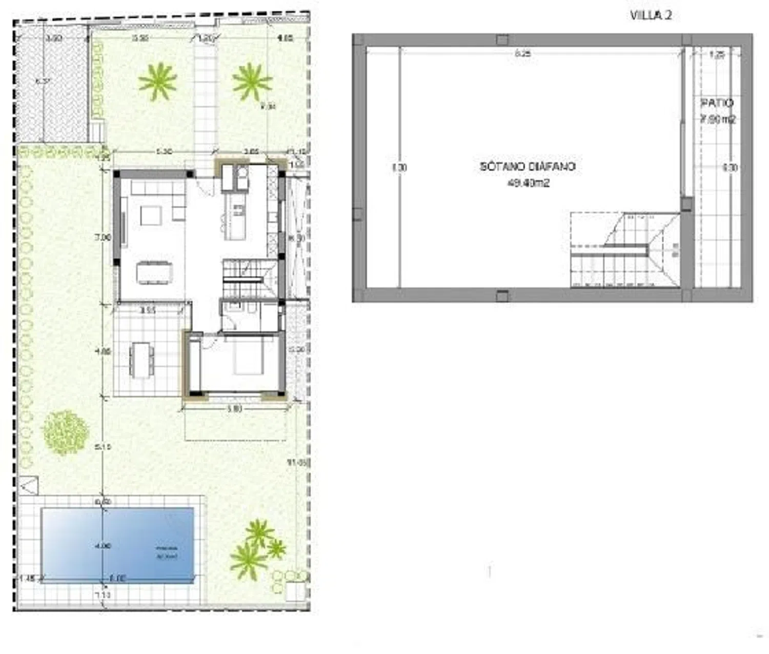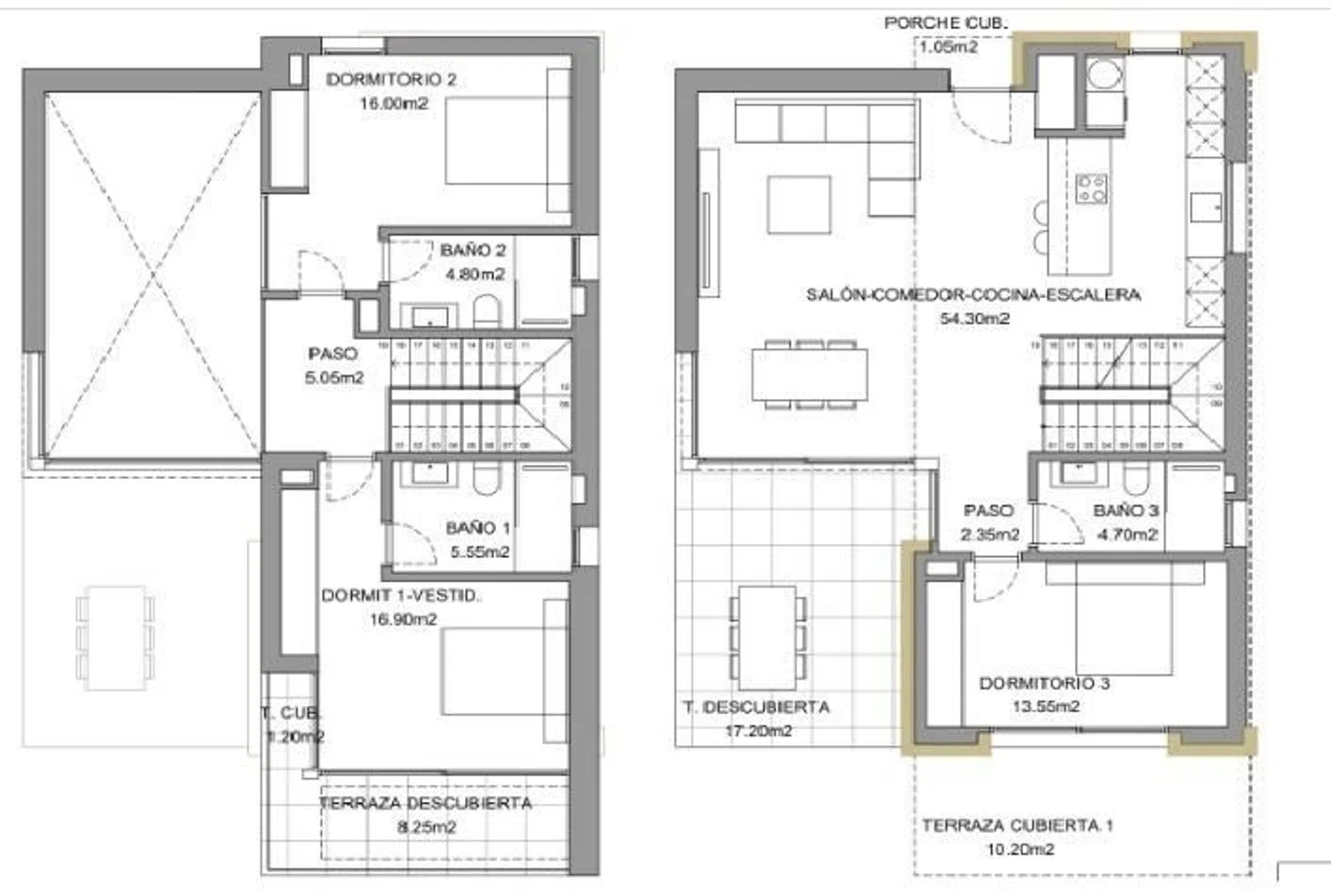 Op de bovenverdieping bevinden zich twee tweepersoonskamers, elk met een eigen badkamer en inloopkast, beide beschikken over privéterrassen met bevoorrecht uitzicht. Het is belangrijk op te merken dat alle villas worden gebouwd met materialen van de hoogste kwaliteit, met een duidelijke inzet voor milieuvriendelijkheid, gecombineerd met een modern en elegant ontwerp. Deze beschrijving is indicatief, aangezien de plannen en afmetingen kunnen variëren afhankelijk van de technische vereisten van het project.
