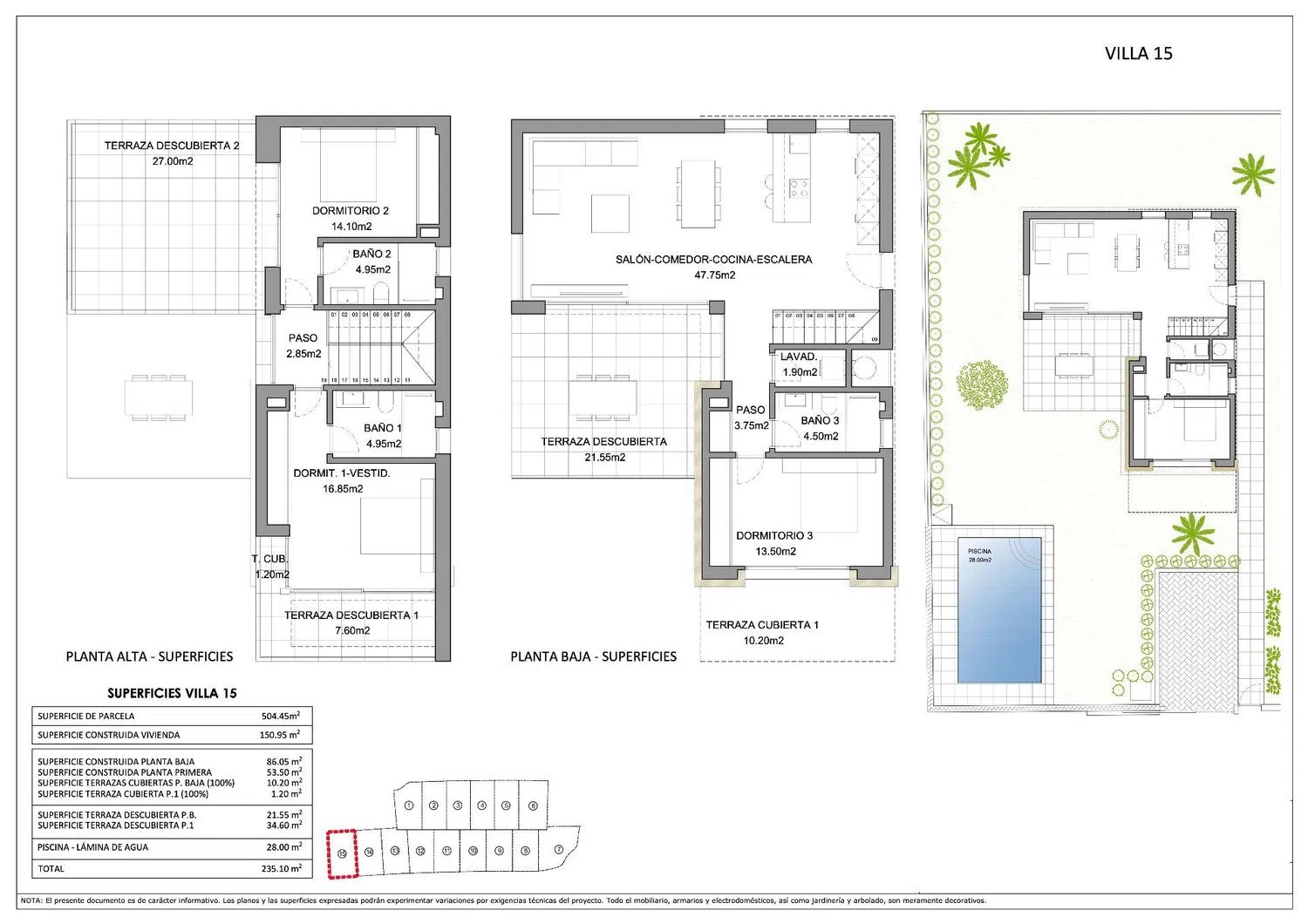 Bovendien zijn deze villa's voorzien van airconditioning voor zowel warmte als kou en een domoticasysteem, zodat comfort en gemak altijd voorop staan. Kwaliteit is het kenmerk van deze eigendommen, waar geen enkel detail over het hoofd is gezien in de selectie van hoogwaardige materialen en afwerkingen, wat elke villa transformeert in een uitdrukking van luxe en verfijning.