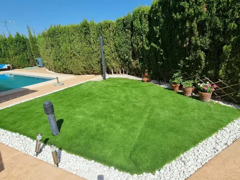 De kavel is 574 m² groot en heeft een privézwembad en een ruime garage. De woning bevindt zich in een zeer rustige en veilige residentiële omgeving. Het biedt gemakkelijke toegang tot de snelweg richting Alicante of Valencia. Op slechts 3 km afstand bevinden zich de stranden van Benidorm en alle nodige voorzieningen.