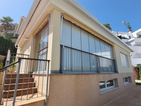 Villa mediterránea, authentiek te koop in Golf Bahia Finestrat. Het is een zeer zonnige villa van 346 m², gebouwd in 2009 en bestaande uit 3 verdiepingen, 4 slaapkamers, 3 complete badkamers, een ruime keuken, een woonkamer met open haard, een glazen terras, een balkon, een solarium met prachtige uitzichten op zee en de bergen. De woning is uitgerust met inbouwkasten, vloerverwarming en airconditioning.