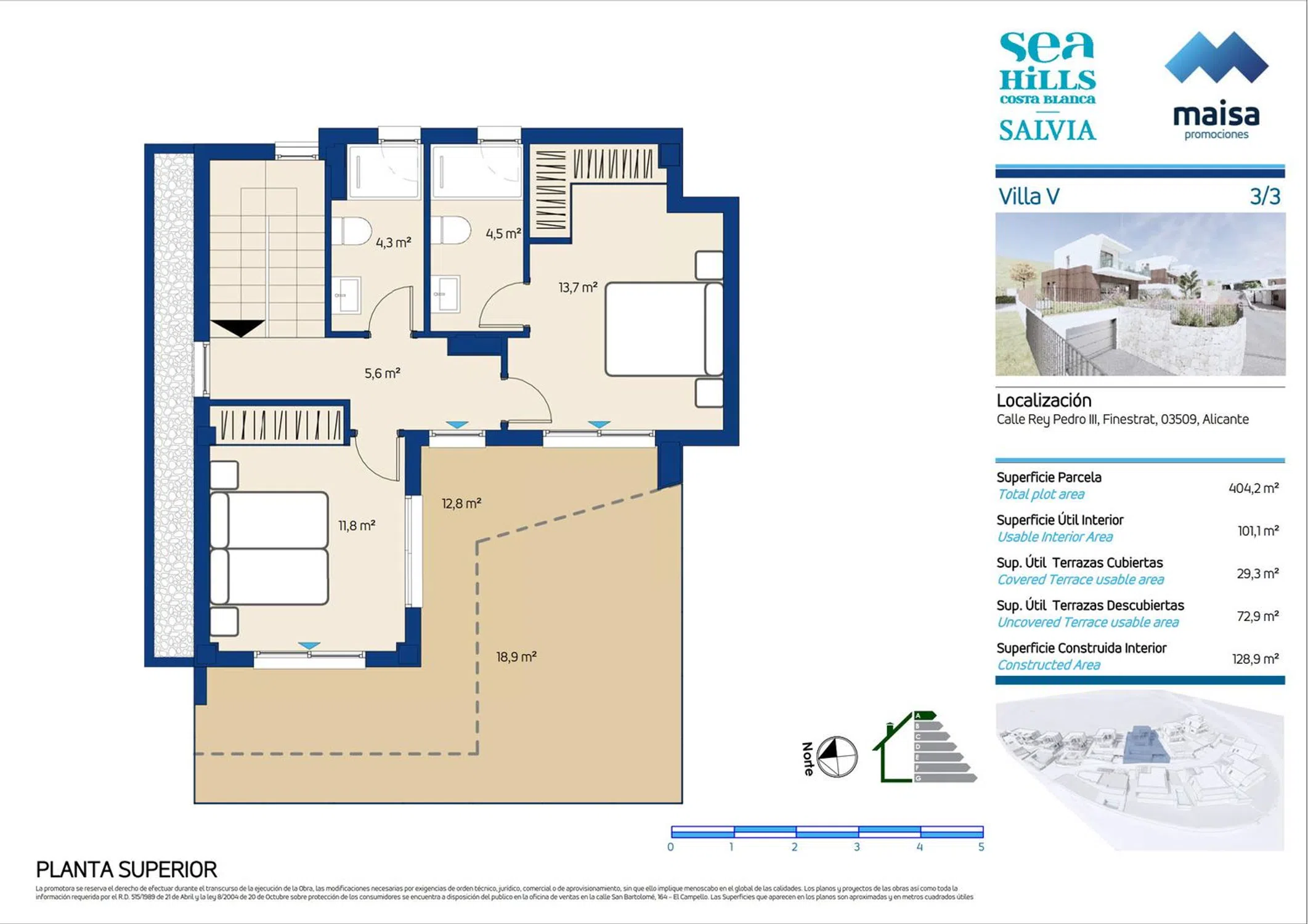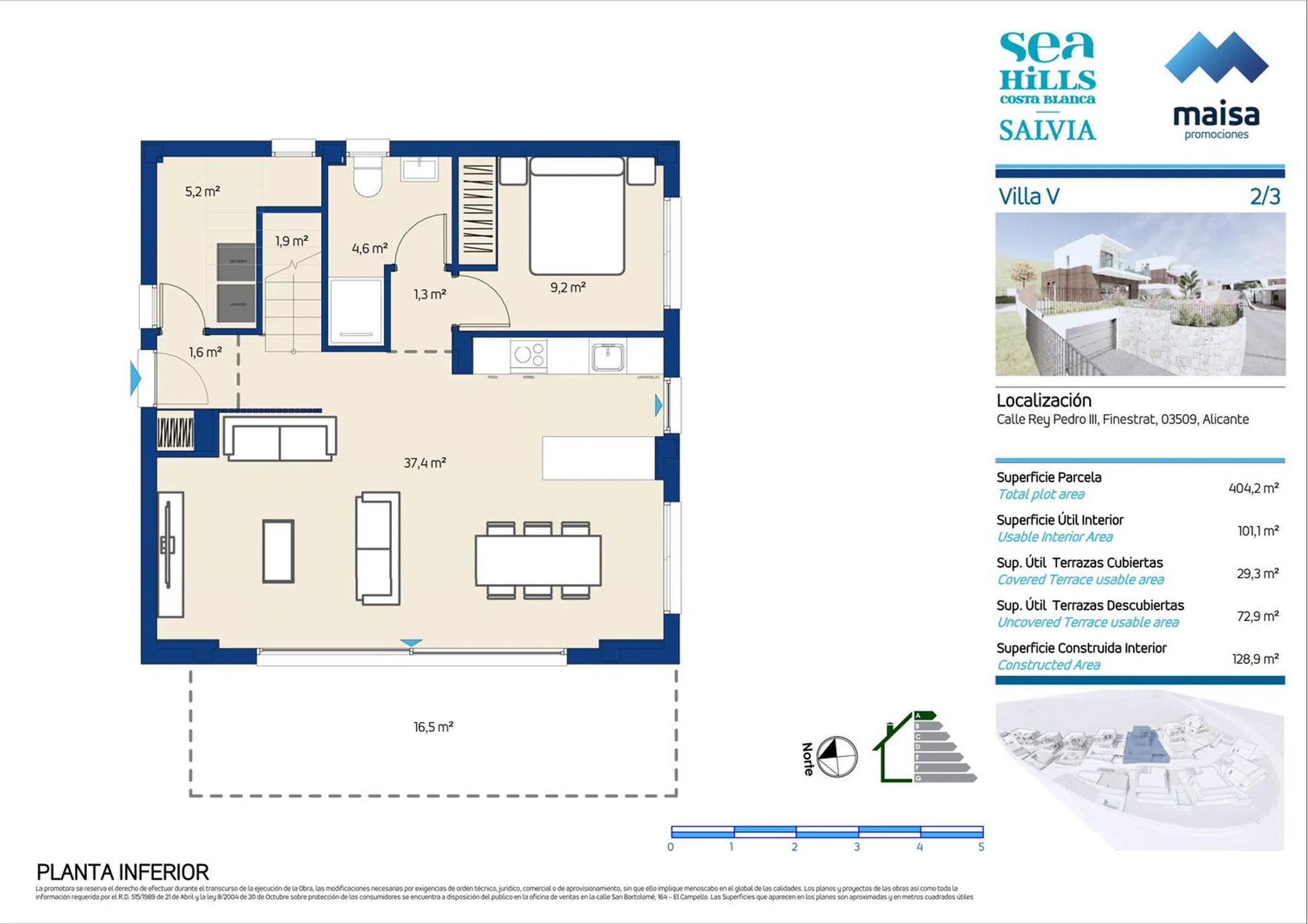 Maisa Promociones, con más de 60 años de experiencia en el sector, presenta esta nueva promoción de 12 viviendas únicas con licencia de obras obtenida en Finestrat, un enclave que combina la esencia mediterránea con la comodidad de contar con todos los servicios cerca. Las villas destacan por su diseño moderno y funcional, con espacios luminosos y acabados de alta calidad: suelos porcelánicos, carpintería lacada en blanco, amplios armarios y cocinas totalmente equipadas con electrodomésticos Siemens. Los baños incluyen muebles de diseño, espejos retroiluminados y griferías con sistema de ahorro de agua. Cada vivienda dispone de jardín privado con piscina, terraza y zona de aparcamiento. Además, cuentan con climatización por conductos, aerotermos de alta eficiencia y videoportero con control por app. Una ubicación estratégica que ofrece tranquilidad, naturaleza y conexión con todo: a 5 minutos de Benidorm, 40 minutos del Aeropuerto de Alicante y muy próximo a campos de golf, colegios internacionales y centros comerciales. Un hogar mediterráneo pensado para disfrutar de cada día.