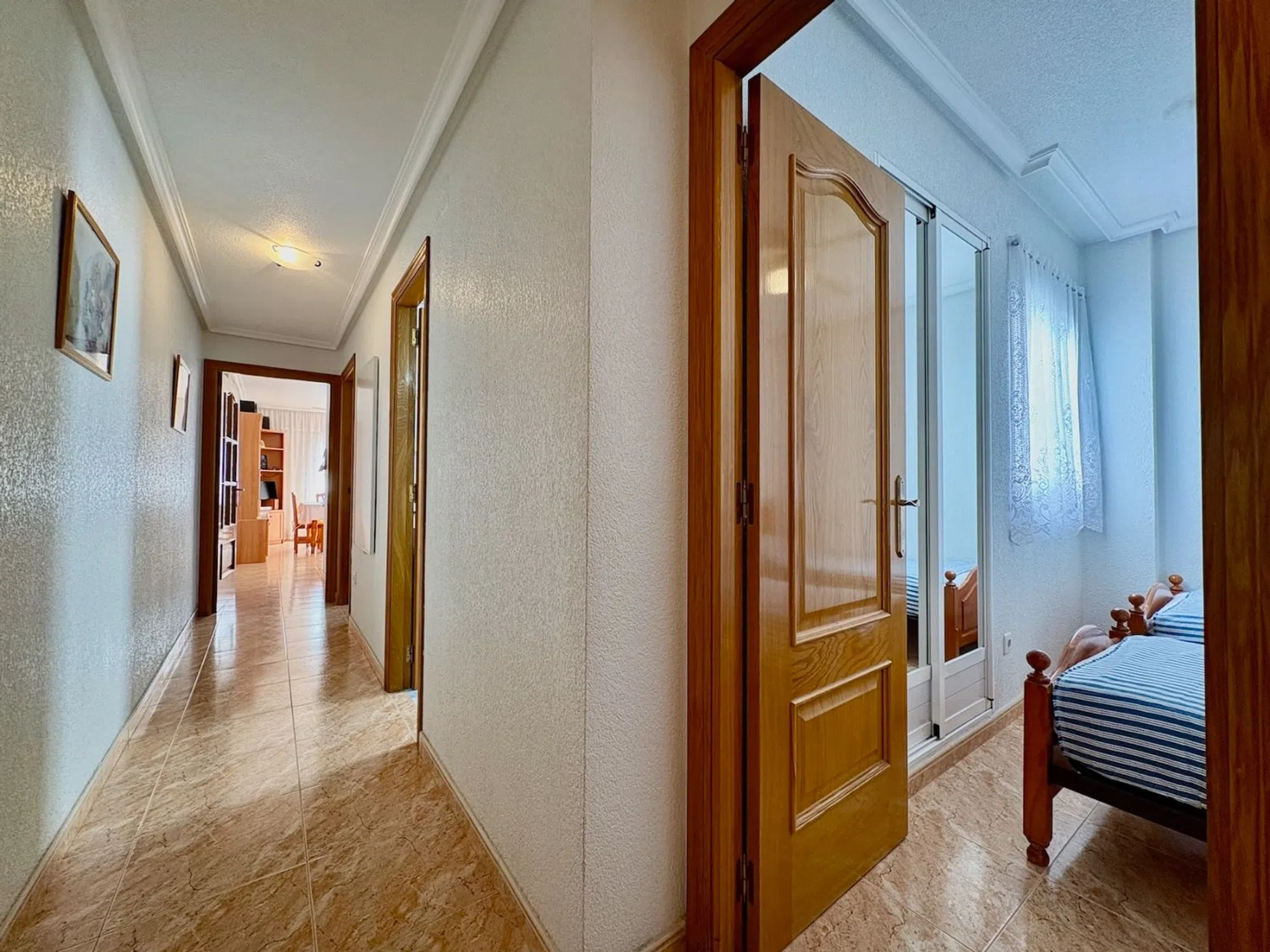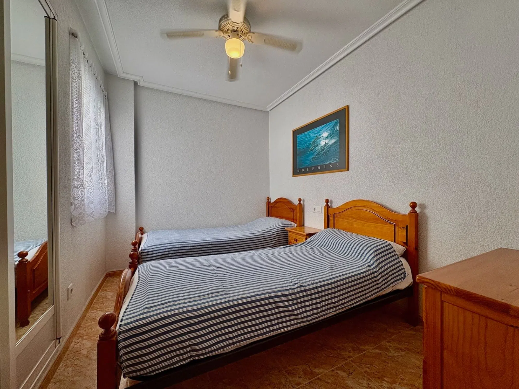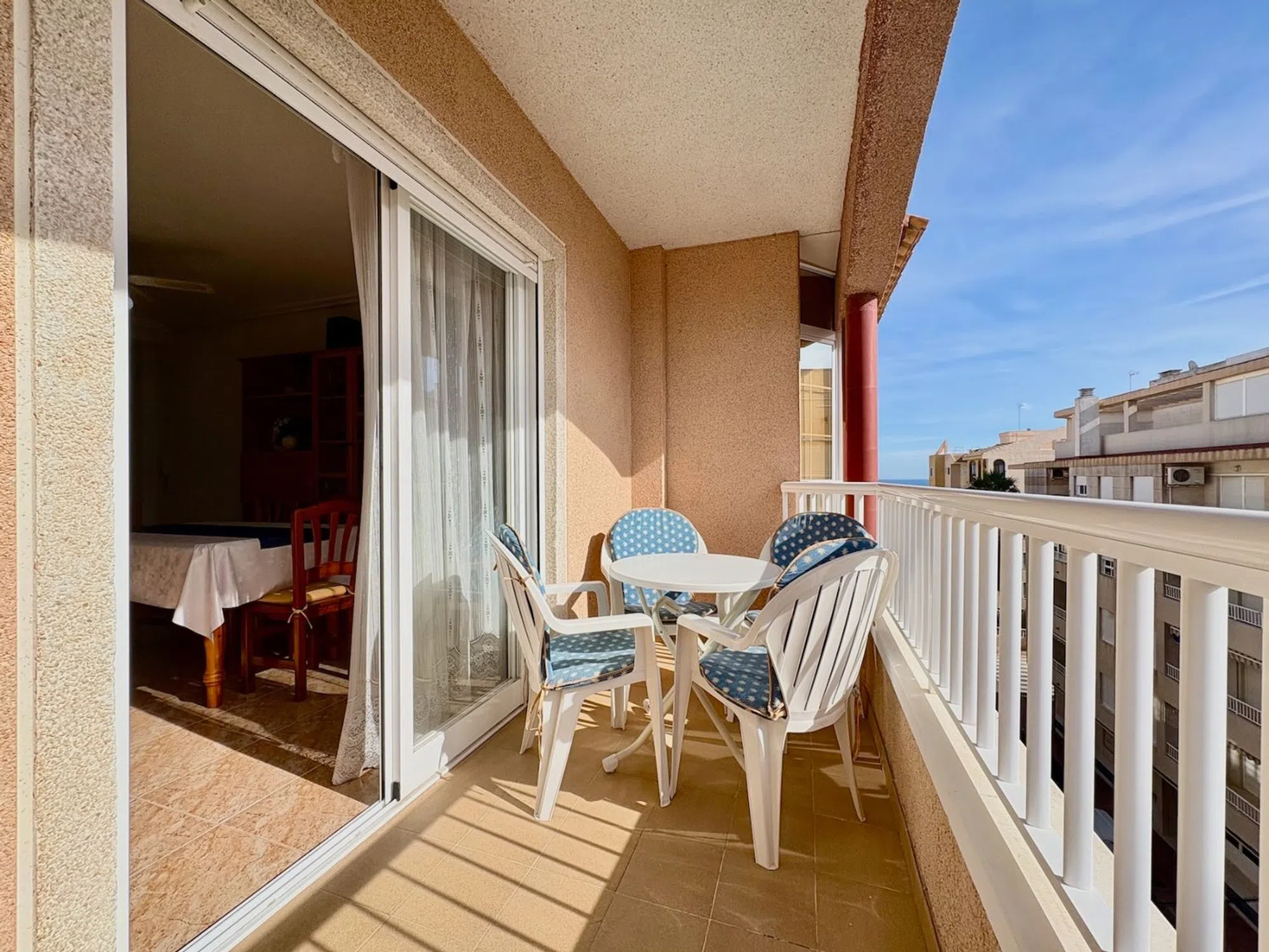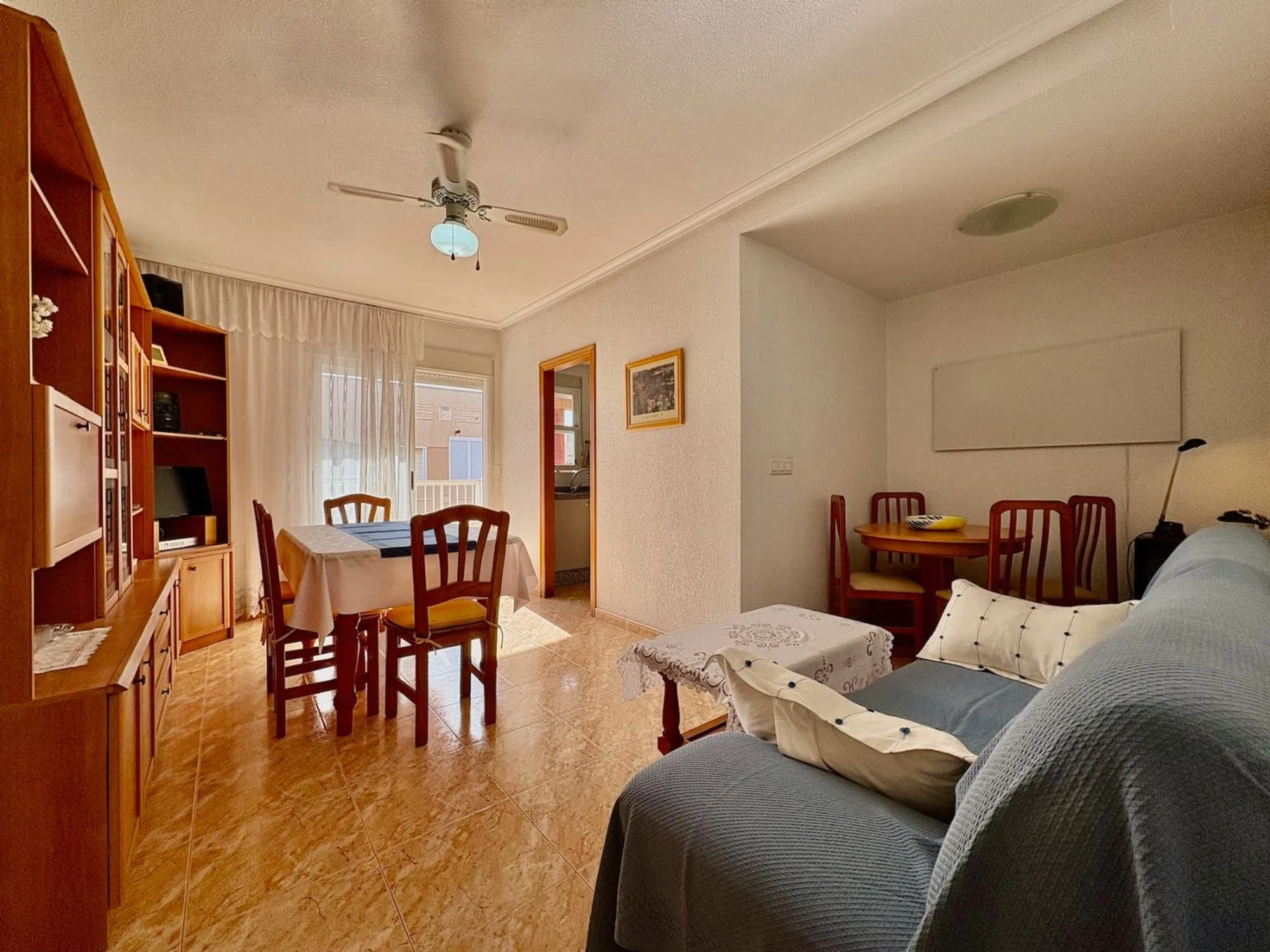 Ponemos a la venta este encantador apartamento ubicado en la cuarta planta del edificio Residencial Los Naranjos IX, un moderno complejo situado en una de las zonas más cómodas y demandadas de Guardamar del Segura. Su localización, en la calle Nueve de Octubre, permite disfrutar de todos los servicios esenciales a escasos metros y de la playa a pocos minutos caminando. La vivienda ofrece 67m² construidos y 60m2 útiles, distribuidos de forma práctica para aprovechar al máximo cada rincón: • Salón–comedor muy luminoso, con salida directa a una terraza amplia con vistas despejadas. • Cocina americana totalmente equipada e integrada en el espacio de día. • Dos dormitorios bien distribuidos, con capacidad para armarios y buena entrada de luz natural. • Un baño completo. Este apartamento cuenta además con un trastero privado de unos 4m², situado en la planta de cubierta del edificio, ideal para guardar bicicletas, maletas o material de playa durante todo el año. Como complemento opcional, existe la posibilidad de adquirir una plaza de garaje en el sótano del mismo edificio por 9.900 €, un valor añadido muy útil en el centro urbano. Gracias a su ubicación privilegiada, su altura, la luminosidad de sus estancias y la calidad de su residencial, esta propiedad es perfecta tanto como vivienda habitual como para inversión, alquiler o segunda residencia.