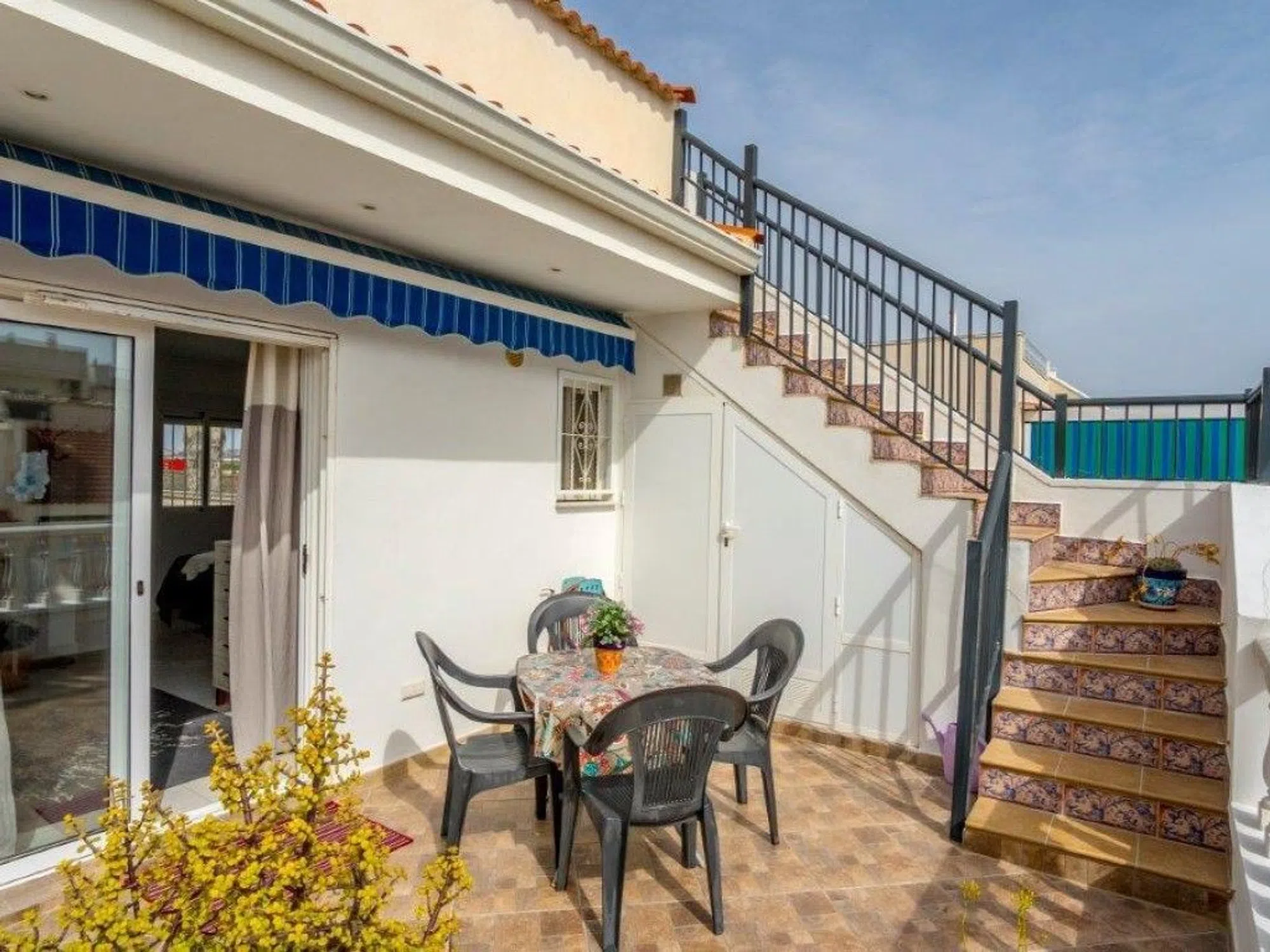 Esta es una casa adosada muy acogedora con varias terrazas grandes. Se accede a un patio de baldosas de 21 m2 con toldo y un práctico trastero. Desde la terraza se accede a la cocina con zona de comedor y planta abierta al salón. Además, en el primer piso hay 1 dormitorio, 1 baño y una habitación que actualmente se utiliza como pasillo / dormitorio. Desde aquí se accede a un trastero y a las escaleras que suben a la segunda planta. En la segunda planta hay un amplio dormitorio con armario empotrado y baño en suite. En el exterior hay una bonita terraza de 18 m2 y un trastero. Desde aquí las escaleras van a la azotea de 25 m2 con preciosas vistas y un trastero. El segundo piso fue construido en 2011. Ambos baños tienen calefacción por suelo radiante. Hay 2 aires acondicionados instalados, uno en el primer piso y otro en el segundo piso. La casa se vende amueblada y con electrodomésticos. Precio: 185.000 euros + gastosDatos: 3 dormitorios2 bañosAño de construcción: 1970Superficie: 63 m2AmuebladoElectrodomésticosAire acondicionadoAzoteaTerrazaTrasteroGastos de comunidad: 50 euros al añoIBI: 177 euros al añoCertificado energético: E/F ref: MLSC6257863.