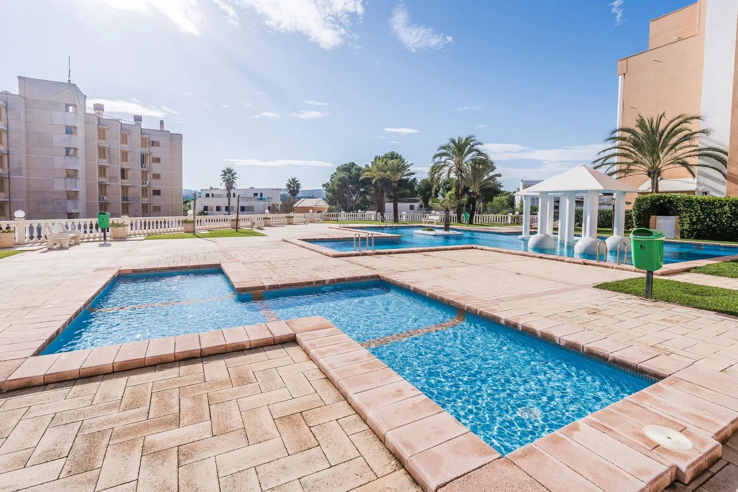 De residentie biedt hoogwaardige faciliteiten, waaronder twee zwembaden, waarvan één voor kinderen, evenals een tennisbaan. Het is gelegen op korte afstand van de zee en dicht bij een levendige omgeving vol restaurants, bars en winkels. Verder bevindt het zich ook nabij de rustige baai van Cala Blanca.