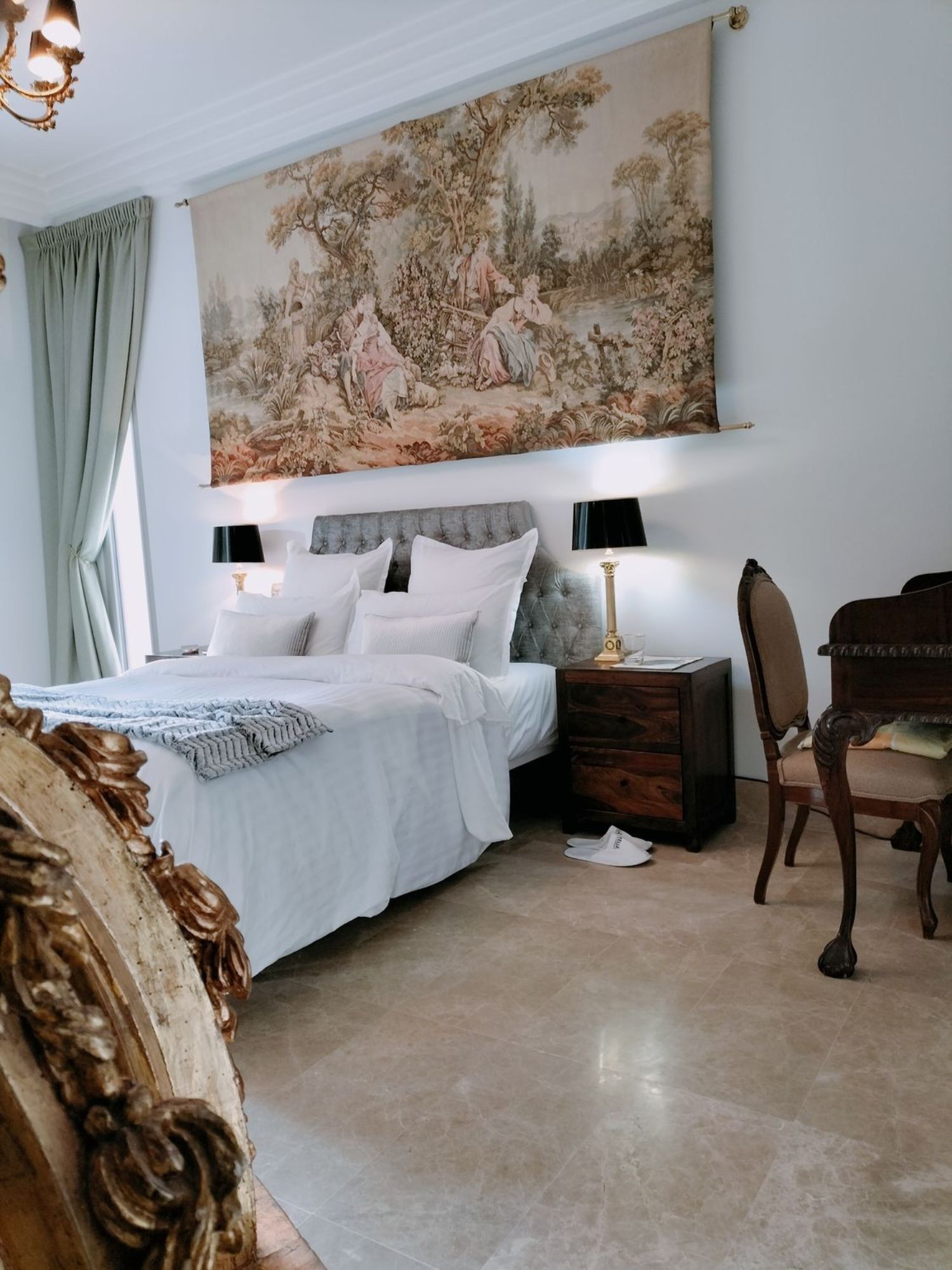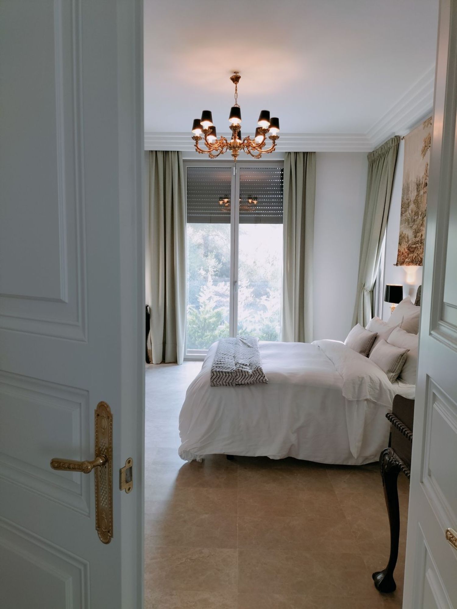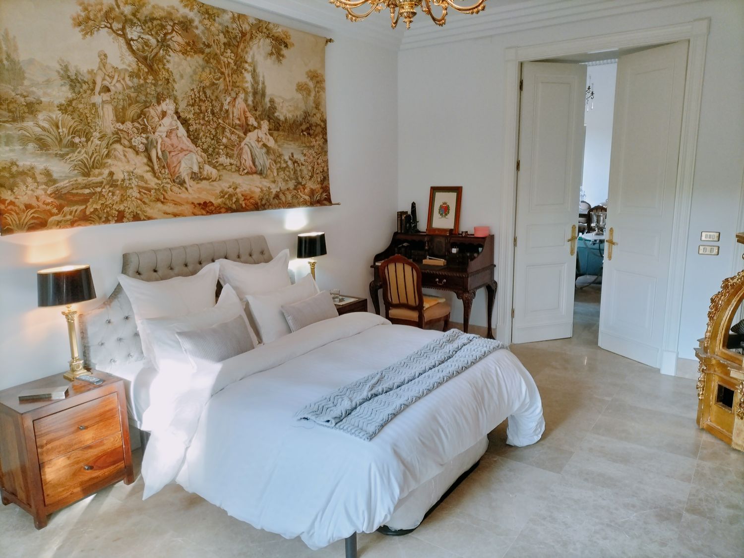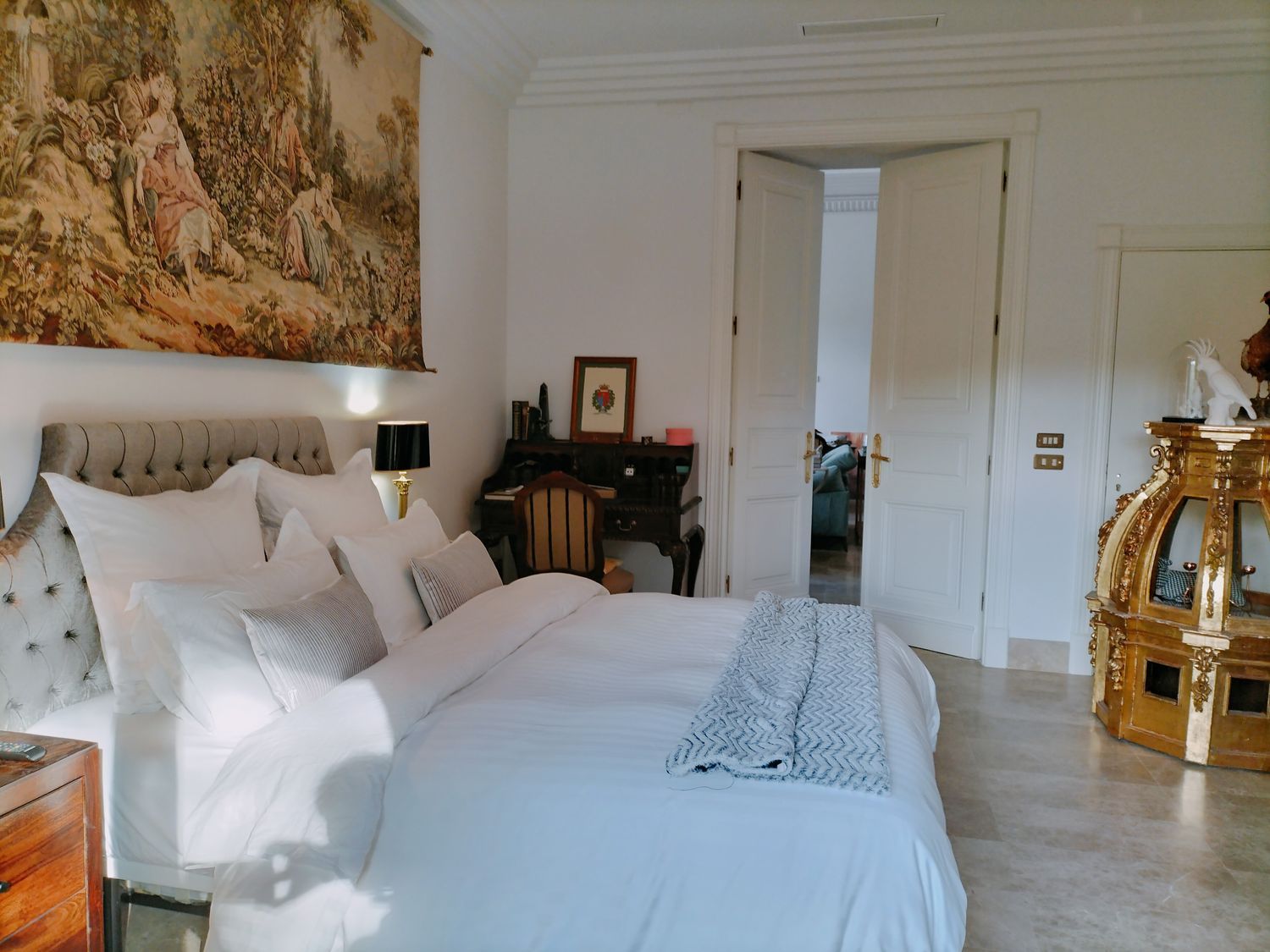 In het hart van de woonkamer geeft een imposante 19e-eeuwse open haard, samen met zijn originele trumeau, gerestaureerd uit een bourgeois appartement in de Alpenregio, deze kamer een grote persoonlijkheid. Vanuit deze ruimte is er toegang tot drie ruime slaapkamers via elegante dubbele deuren die een Hausmanniaanse stijl oproepen. Twee van de slaapkamers hebben en-suite badkamers, naast een volledig uitgeruste derde badkamer.