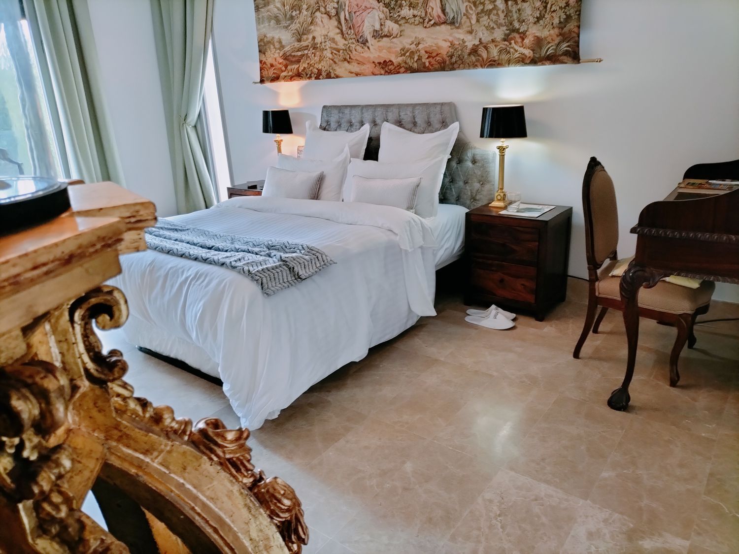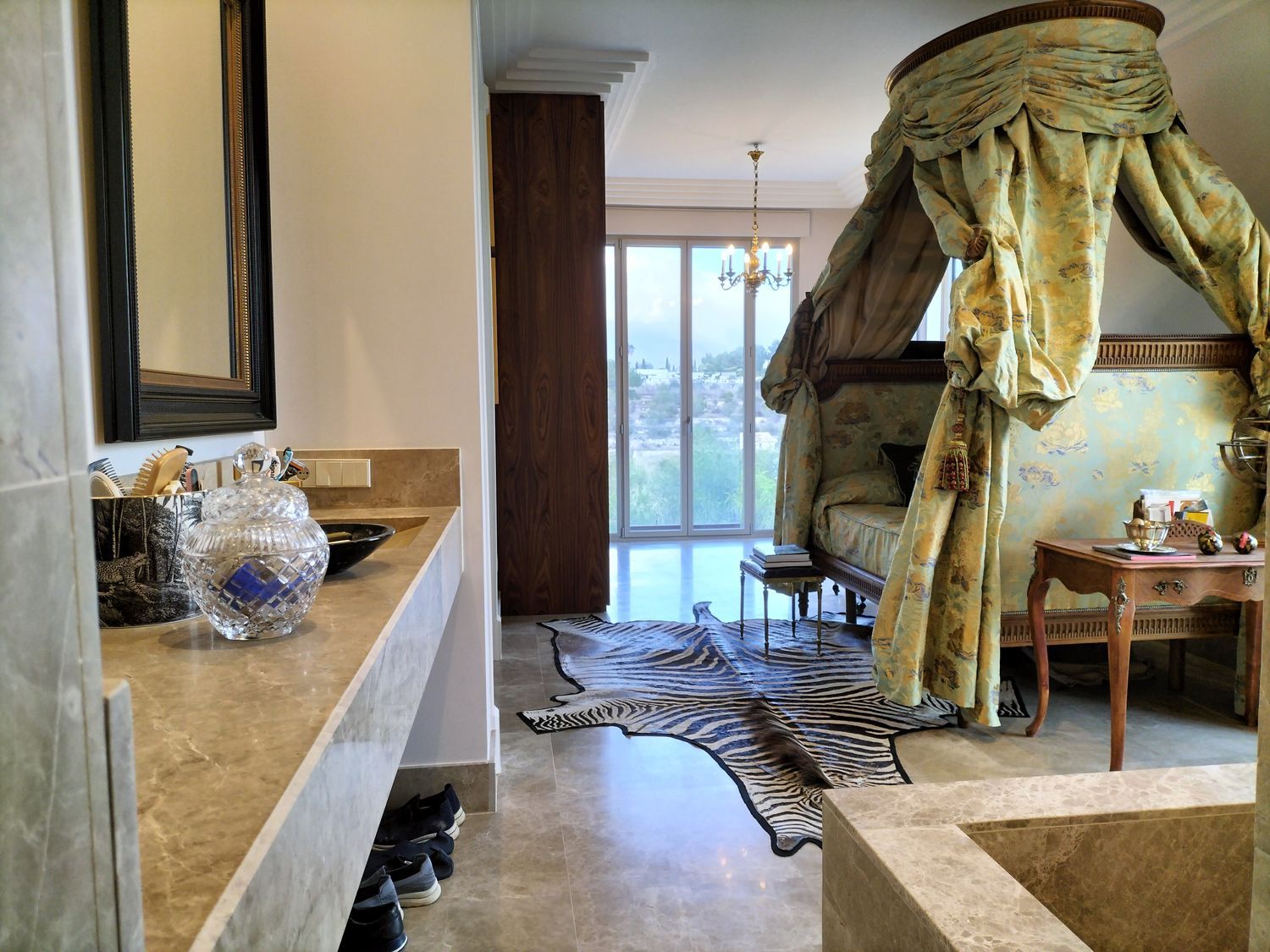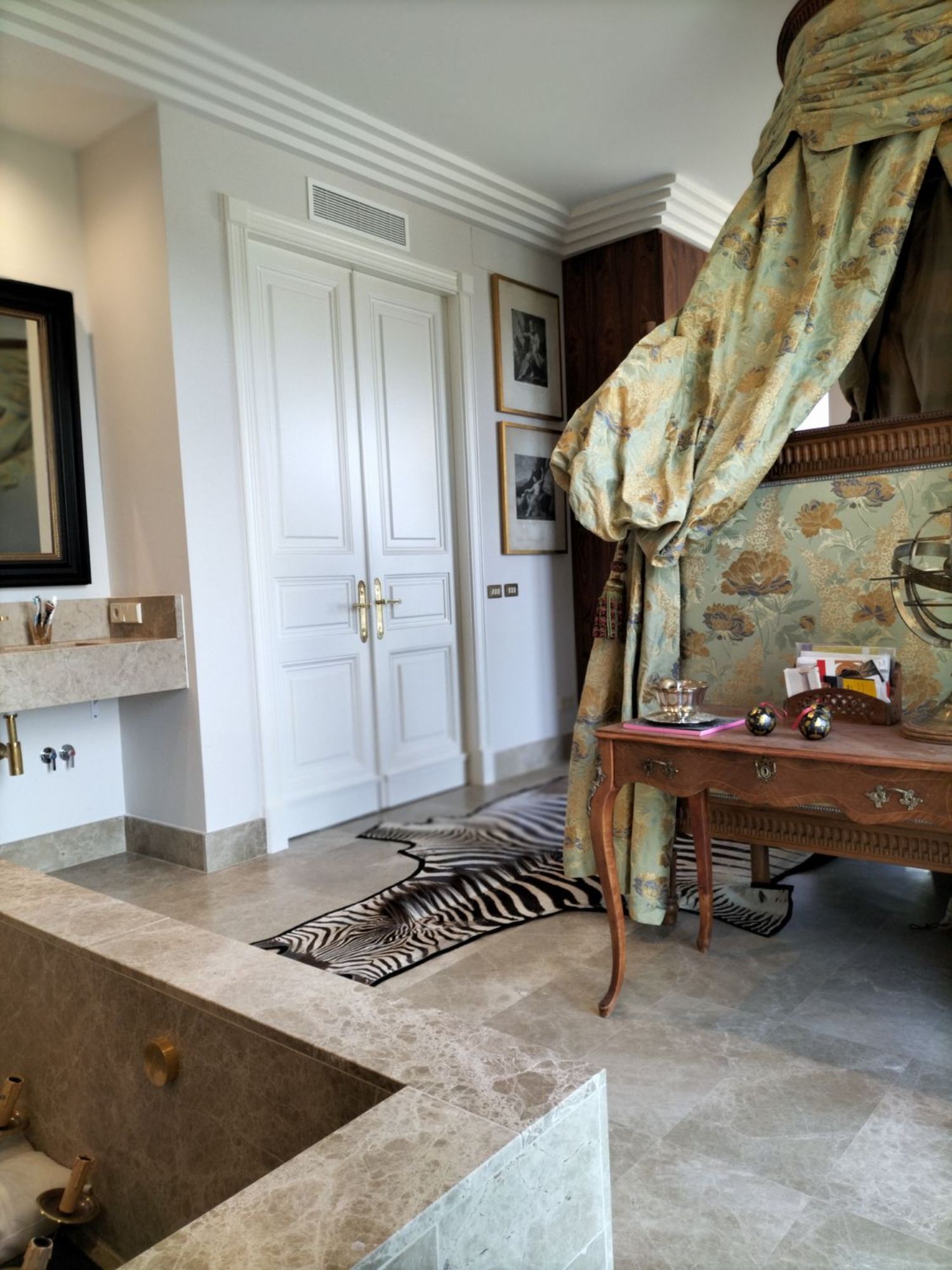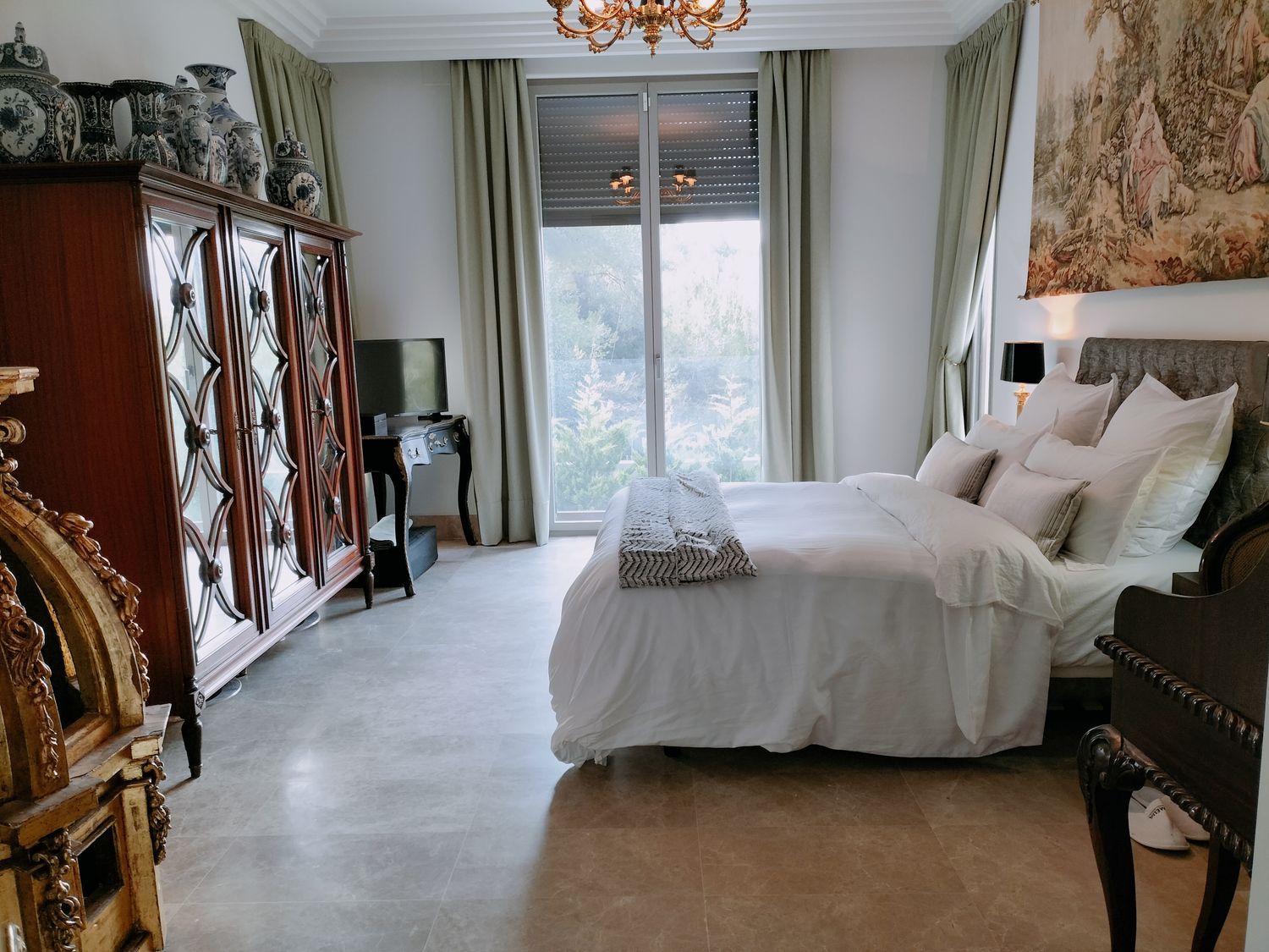 In het hart van de woonkamer geeft een imposante 19e-eeuwse open haard, samen met zijn originele trumeau, gerestaureerd uit een bourgeois appartement in de Alpenregio, deze kamer een grote persoonlijkheid. Vanuit deze ruimte is er toegang tot drie ruime slaapkamers via elegante dubbele deuren die een Hausmanniaanse stijl oproepen. Twee van de slaapkamers hebben en-suite badkamers, naast een volledig uitgeruste derde badkamer.