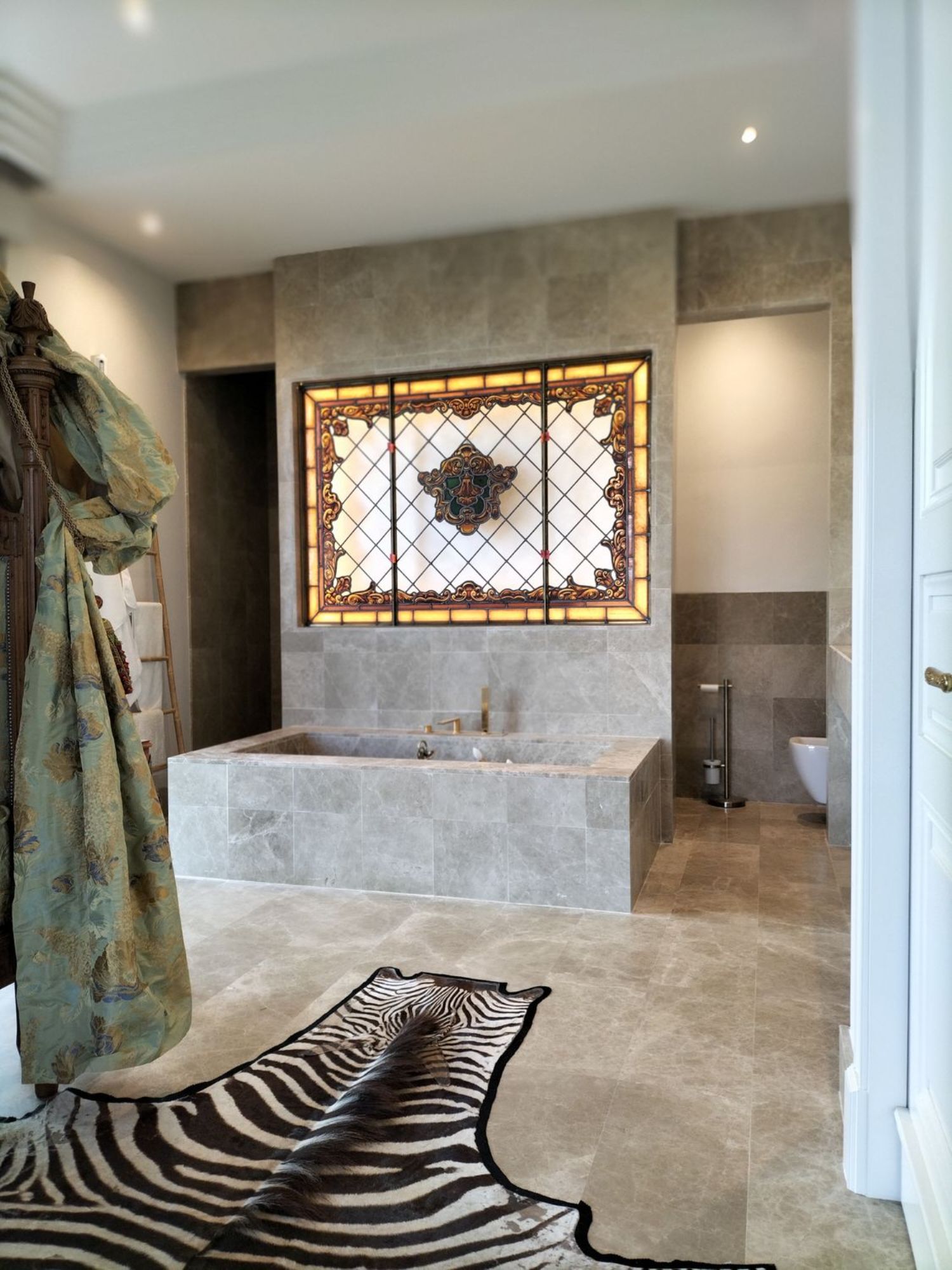 Een van de slaapkamers valt op door zijn royale omvang, inclusief een ingebouwde marmeren badkuip en een prachtig glas-in-loodraam van het beroemde atelier dat is gespecialiseerd in glas-in-lood. Vanuit de woonkamer is er toegang tot het terras via enorme ramen van meer dan 2,5 meter hoog, die indrukwekkende uitzichten bieden en zijn omlijst door een smeedijzeren reling die is hersteld van een iconisch lokaal gebouw.