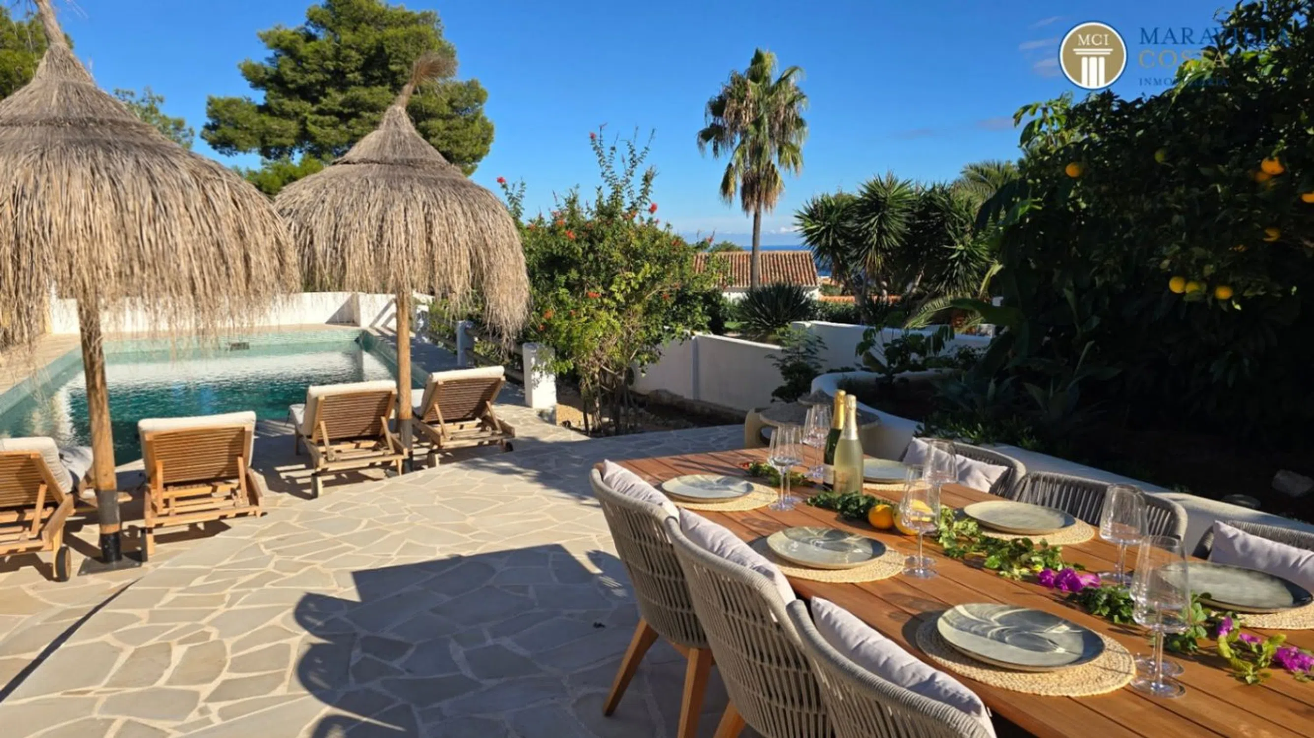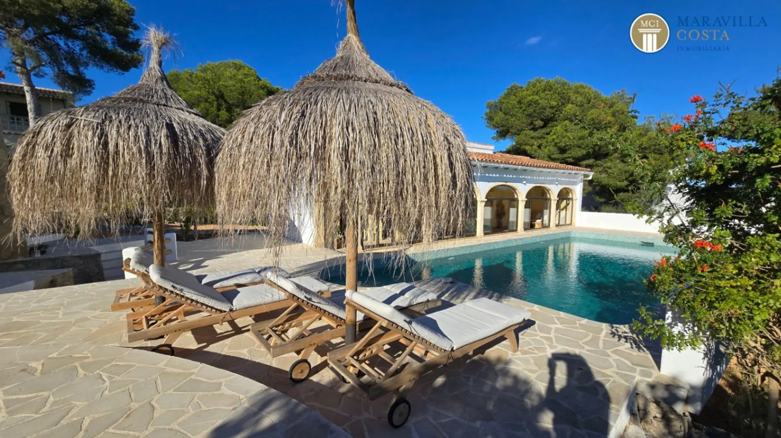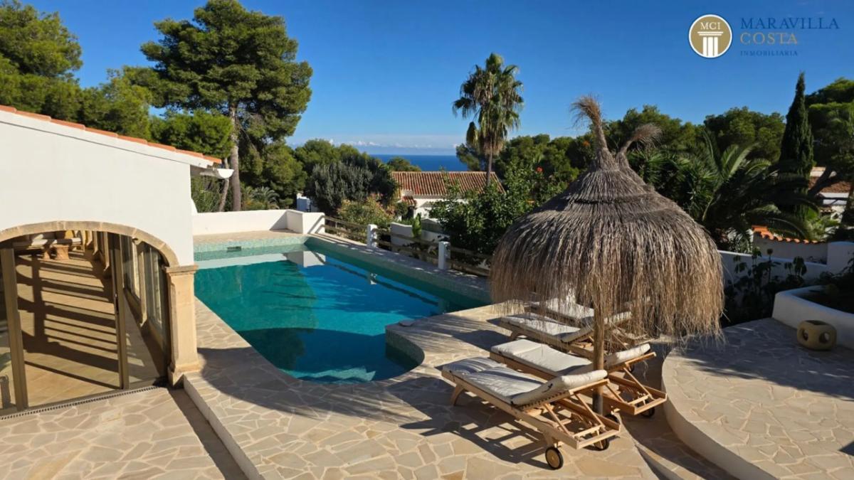 ¡Bienvenido a vuestra residencia mediterránea de ensueño! Esta villa completamente renovada y de estilo ibicenco, se encuentra en una zona muy soleada y hermosa de Jávea (Alicante), concretamente Balcón al Mar. Aquí se combinan tanto el lujo como la máxima privacidad y unas impresionantes vistas al mar y al paisaje. Destacados de la villa principal: Elegante vestíbulo con amplio guardarropaLuminoso salón con chimenea y vistas al marCocina con zona de comedor y acceso directo al jardín y a la piscinaTres elegantes dormitorios con baño en suite, dos en la planta superior y otro en la planta inferiorAseo de invitados, despacho y prácticos espacios de almacenamientoAcceso directo al garaje o escaleras separadasExterior y jardín: Jardín mediterráneo de diseño y fácil mantenimientoPiscina privada con ducha exteriorZonas de descanso y terrazas ideales para relajarseCasa de invitados independiente: Cocina totalmente equipadaEncantadora naya utilizada como zona de estar, comedor y relaxDormitorio con bañoOficina anexa con terraza privada y trasterosEsta propiedad ofrece el máximo confort tanto para uno mismo como para los invitados, en un entorno tranquilo y soleado. Es sin duda una villa ideal para familias o como residencia vacacional. Concreta ahora una visita y descubre el lujo mediterráneo en su máxima expresión.