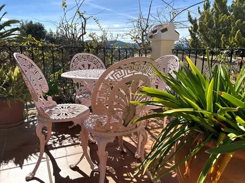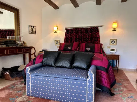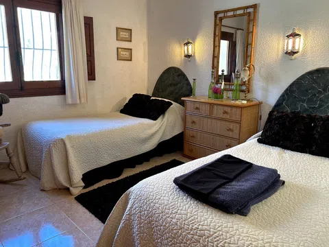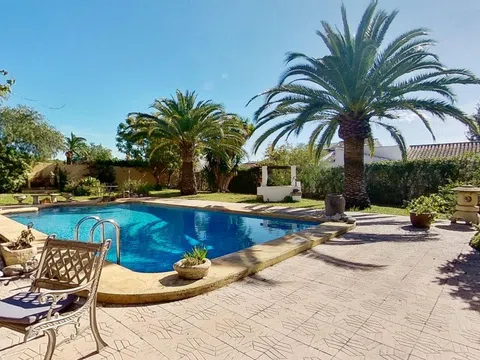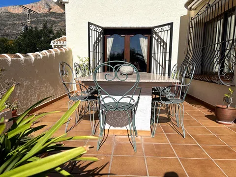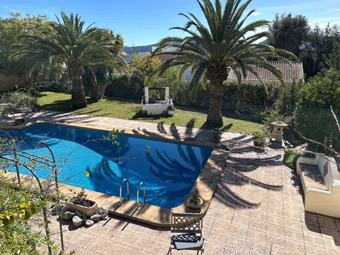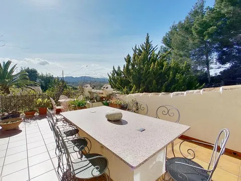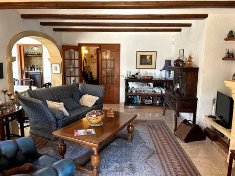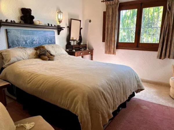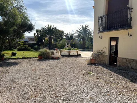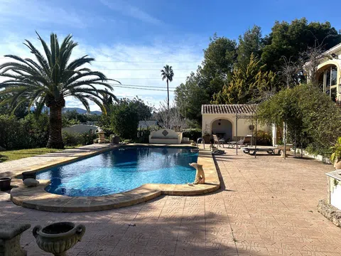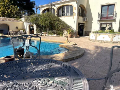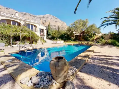 Gelegen in 1.990m2 van aangelegde tuinen, beslaat deze grote villa met 4 slaapkamers een oppervlakte van 364m2 verdeeld over twee niveaus. Een grote oprijlaan met voldoende parkeergelegenheid leidt naar de voordeur. De voordeur opent naar een entreehal met dubbele deuren die leiden naar de grote open woon-/eetkamer. Een deur vanuit de eetkamer leidt naar de ingerichte keuken met toegang tot de bijkeuken. Dubbele deuren vanuit de woonkamer openen naar de glazen Naya met prachtig uitzicht op de tuin. Dubbele deuren vanuit de eetkamer leiden naar een prachtig open terras voor al fresco dineren. Een gang links van de entreehal leidt naar twee gastenslaapkamers met tweepersoonsbed, een gastenbadkamer en de Master suite die bestaat uit een tweepersoonsslaapkamer, een kleedkamer en een en-suite badkamer met douche. Onderbouw met een aparte gastenappartement bestaande uit overdekt terras, zomerse keuken, tweepersoonsslaapkamer, kleedkamer en en-suite badkamer met douche. Zomerse keuken met een W.C. en badkamer met douche. Kantoor. Enkele garage. Grote onderbouw die kan worden omgebouwd tot meer accommodatie. Zwembad van 10 x 6m met fantastisch uitzicht terug naar de Montgo.