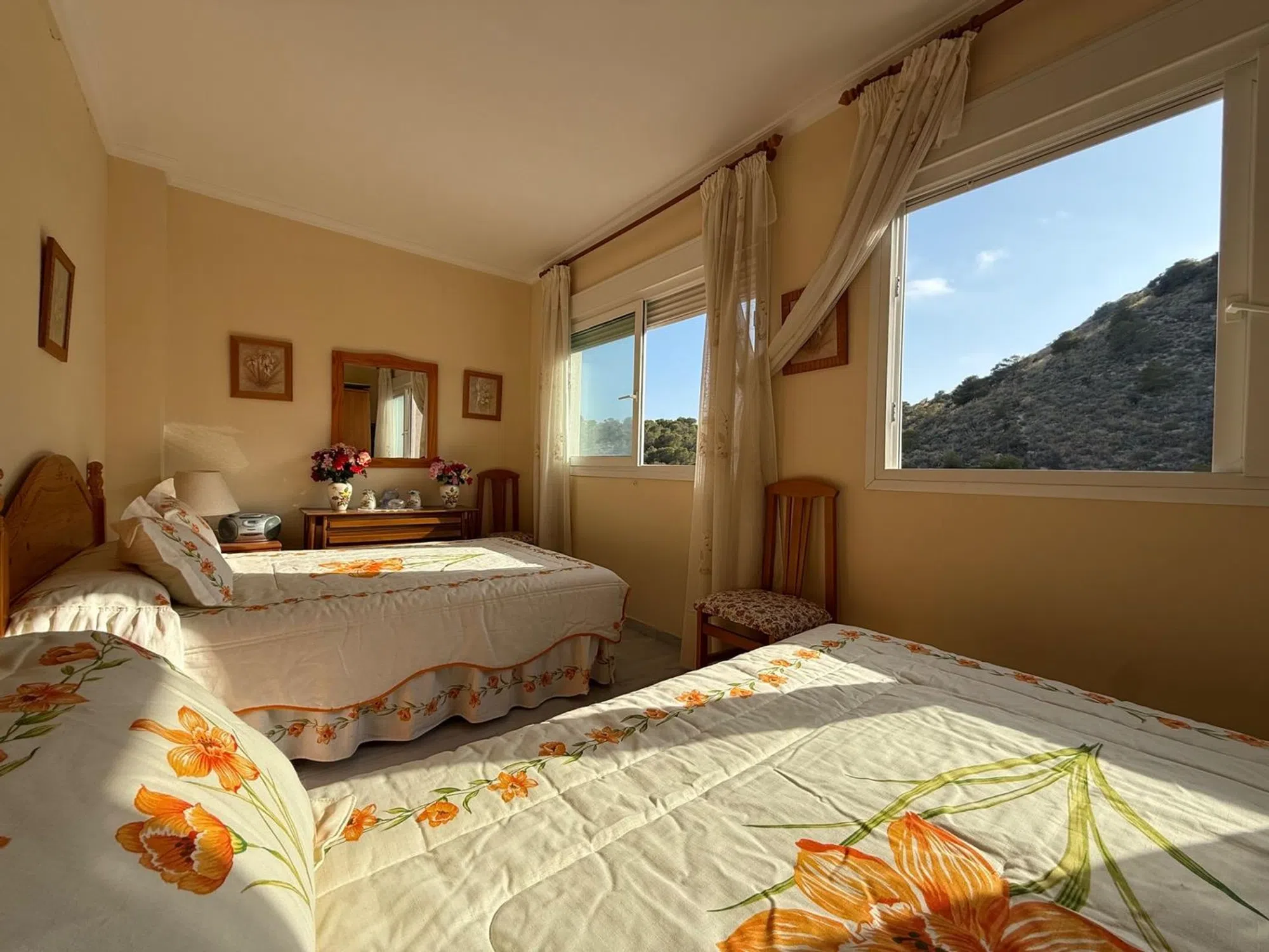 Apartamento en La Cala de Villajoyosa. Dispone de amplio hall de entrada, 2 dormitorios, 2 baños, cocina independiente, lavadero, salón comedor y gran terraza con vistas al mar y Benidorm. Dispone de plaza en garaje subterráneo. Urbanización con piscina comunitaria, pista de pádel, gimnasio, sauna y parque infantil. ☆ Todo exterior, con vistas al mar y a la montaña. ☆ Amplia plaza de garaje en planta -3, con 4 ascensores que suben a planta ☆ Piscina de más de 40 metros, con Socorrista. ☆ Pista de papel. ☆ Gimnasio ☆ Ping Pong ☆ Baloncesto y pista de fútbol. ☆ Dos saunas ☆ Máxima independencia e intimidad ☆ Cocina independiente, con lavavajillas incluido. ☆ Cuarto para aire acondicionado y lavadora/secadora. ☆ Armario empotrado. ☆ Los suelos en toda la casa son de mármol gris perla. ☆ Persiana del salón electrica. ☆ Mamparas en los dos cuartos de baños. ☆ Cuarto de baño principal con Mármol en las paredes, el principal con bañera y el auxiliar con mampara. ☆ Bomba de aire frío y calor ☆ Urbanización accesible, tanto a los edificios y garaje, como a los diferentes servicios. ☆ 60 cámaras de video vigilancia, incluso en los garajes. ☆ Cinco ascensores que suben a la planta. ☆ Sala de celebración de eventos, cumpleaños etc. ☆ Amplia sala de juntas. ☆ Videoportero.