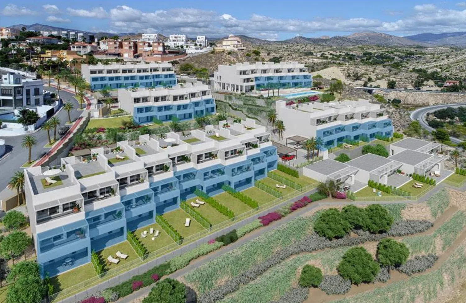 Met een indeling over twee ruime etages en hoogwaardige afwerking is deze woning klaar om bewoond te worden. Het beschikt over drie complete badkamers, de optie voor vier slaapkamers en een ruime woonkamer die aansluit op een groot terras met een gemotoriseerde pergola, ideaal om op elk moment van de dag van de zon en het uitzicht te genieten.