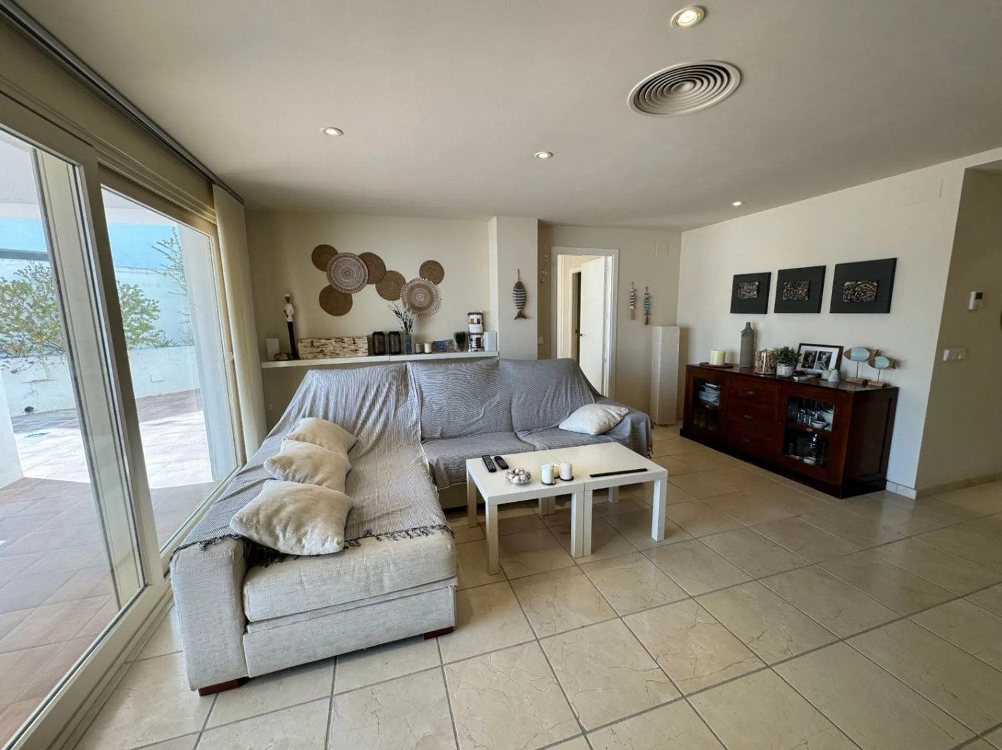 Rara oportunidad en Moraira: apartamento de lujo en planta baja en Moraira Club, con enorme terraza y a solo 500 m de la playaSi buscas una propiedad en el pueblo de Moraira, cerca de todos los servicios y a pocos pasos de las playas, esta vivienda te sorprenderá. Es ideal incluso para aquellos que inicialmente buscaban una villa cerca del mar, pero desean poco mantenimiento, amplitud y una gran zona exterior privada. Una visita basta para quedar impresionados. Moraira Club: ubicación perfecta en pleno puebloEl apartamento está situado en la prestigiosa urbanización Moraira Club, un complejo de lujo de estilo ibicenco, ubicado justo al lado del colegio y a pocos minutos caminando de comercios, restaurantes, servicios y de la playa. Un entorno cómodo, seguro y muy demandado para vivir todo el año o disfrutar de estancias vacacionales. Características clave de la propiedad128 m² construidos + espectacular terraza privada de 115 m²Urbanización de lujo Moraira Club, estilo ibicencoPiscina y jardines comunitariosConstruido en 2002Situado en el pueblo de Moraira, junto al colegioA solo 500 metros de la playaPlanta baja con acceso cómodo y sin escalerasDescripción de la viviendaEsta luminosa propiedad en planta baja se distribuye en: RecibidorSalón–comedor con chimenea y salida al porche y a la gran terrazaTerraza de 115 m² con barbacoa y trastero, perfecta para disfrutar todo el añoCocina independiente3 dormitorios dobles con armarios empotrados (uno con baño en suite)1 aseo con ducha, lavadero y patio de lucesCalidades y extrasAire acondicionado por conductos (frío-calor)Ventanas de PVC con doble cristalPersianas eléctricasVídeo-porteroSuelos de mármol tratado efecto envejecidoAlarma instaladaIncluye plaza de garaje y trastero en el precio. Por qué es ideal para tiEsta vivienda es perfecta para quienes buscan: Una casa en el pueblo de Moraira, con todos los servicios a manoProximidad a la playa, al colegio y a comerciosUn inmueble con mínimo mantenimiento, pero con la amplitud y privacidad de una villaUna gran terraza privada para disfrutar del clima mediterráneoUn hogar en una urbanización de alto nivel como Moraira ClubUna propiedad única que supera las expectativas de cualquiera que la visite. Rara oportunidad en Moraira Club. Muy aconsejable visitarlo. ¿Quieres venir a verlo?