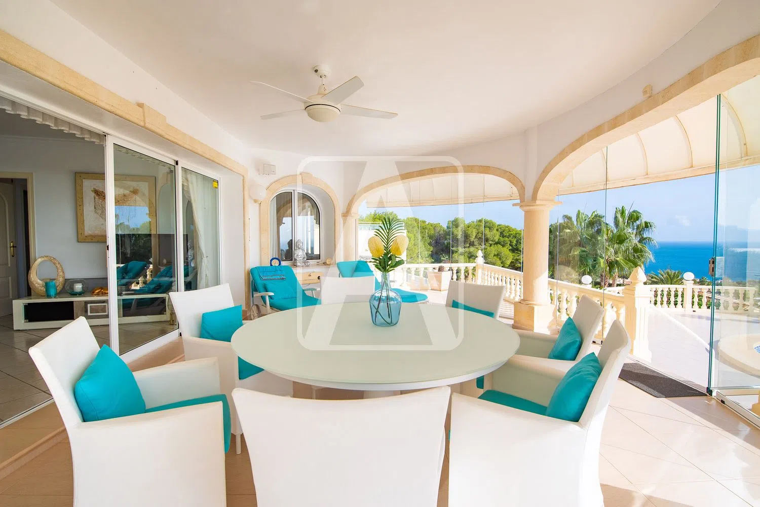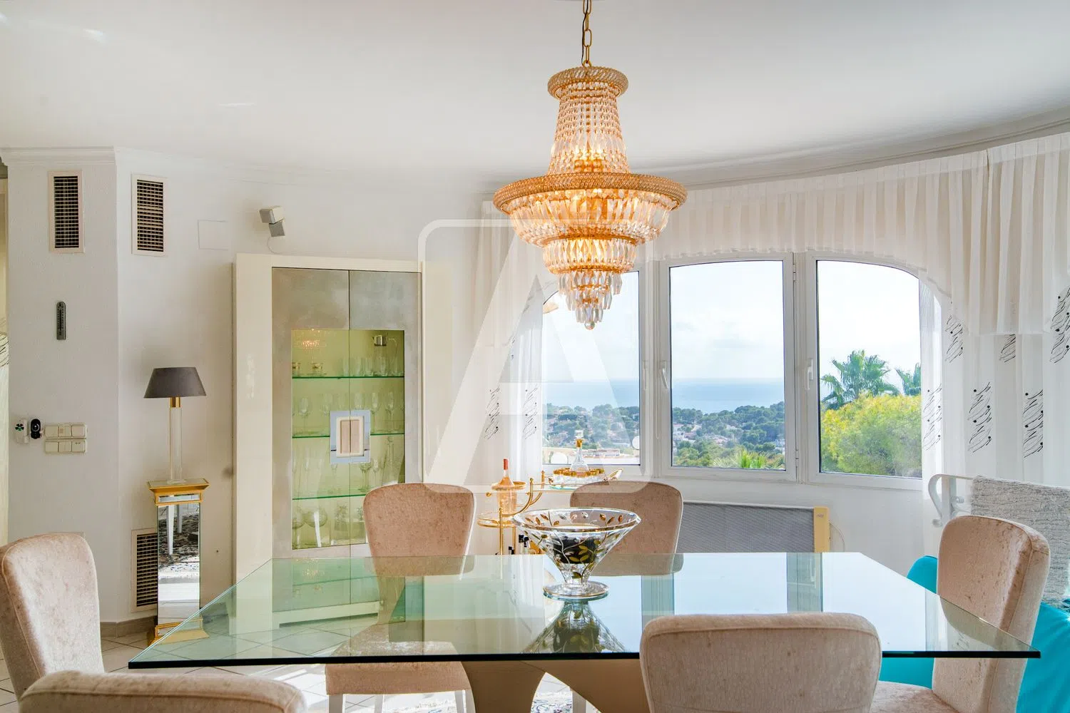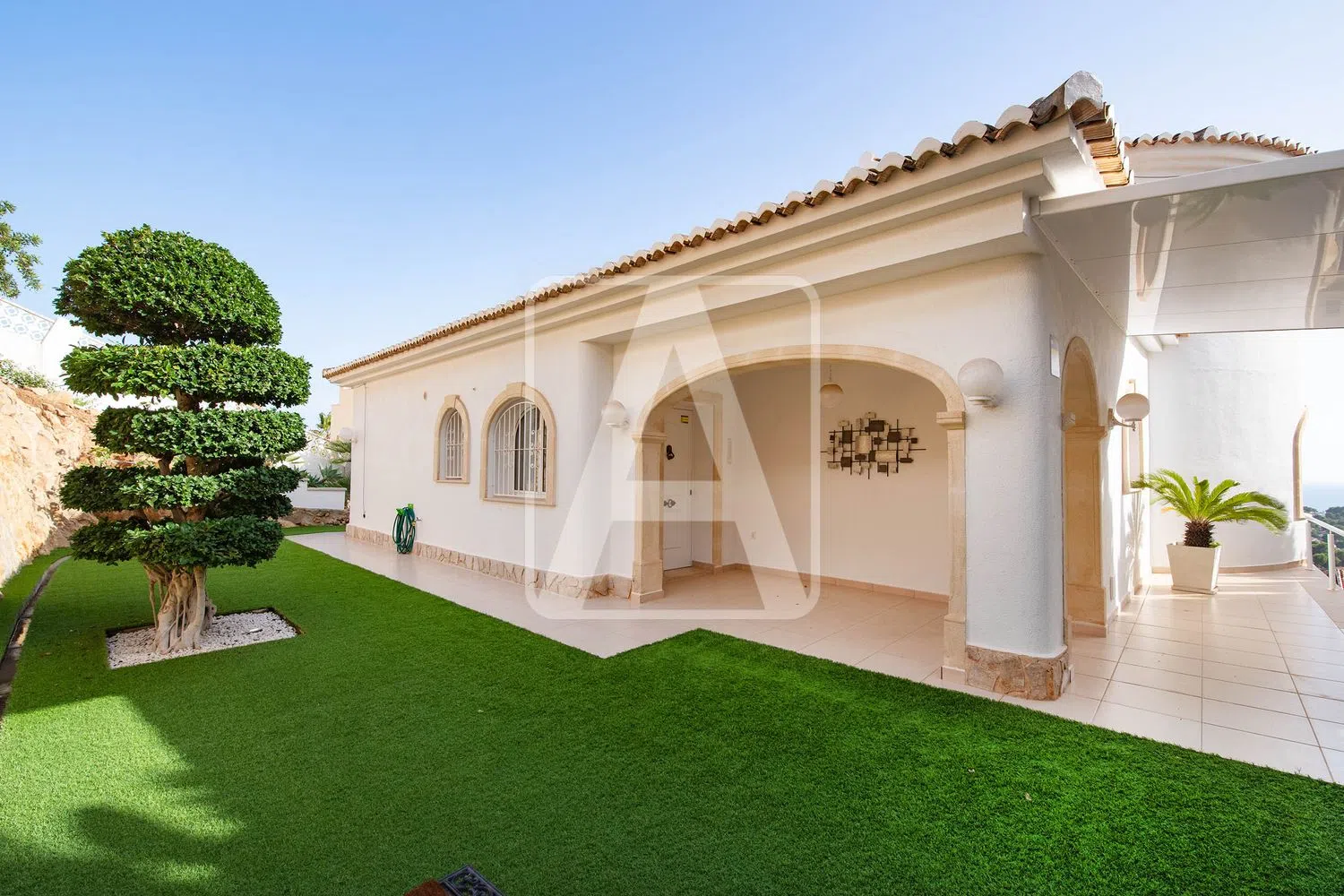 De villa biedt indrukwekkende panoramische zeezichten en geniet de hele dag zon dankzij de zuidgerichte ligging. De rustige omgeving wordt versterkt door de ligging in een autovrije straat. Met een mediterraan ontwerp, bevindt dit huis zich op een royale kavel en heeft het een ruime bebouwde oppervlakte verdeeld over twee verdiepingen. Op de bovenste verdieping bevindt zich de hoofdwoning, met een gezellige entreehal, een gastentoilet, een handige wasruimte, en twee slaapkamers. De grote woonkamer, die keuken en eetruimte combineert in een open concept, sluit ook aan op een lichte, glazen veranda met toegang tot een prachtige buiten terras, waar genoten kan worden van een verwarmd niervormig zwembad, ondersteund door een zomerse keuken, ideaal voor ontspanning en recreatie.