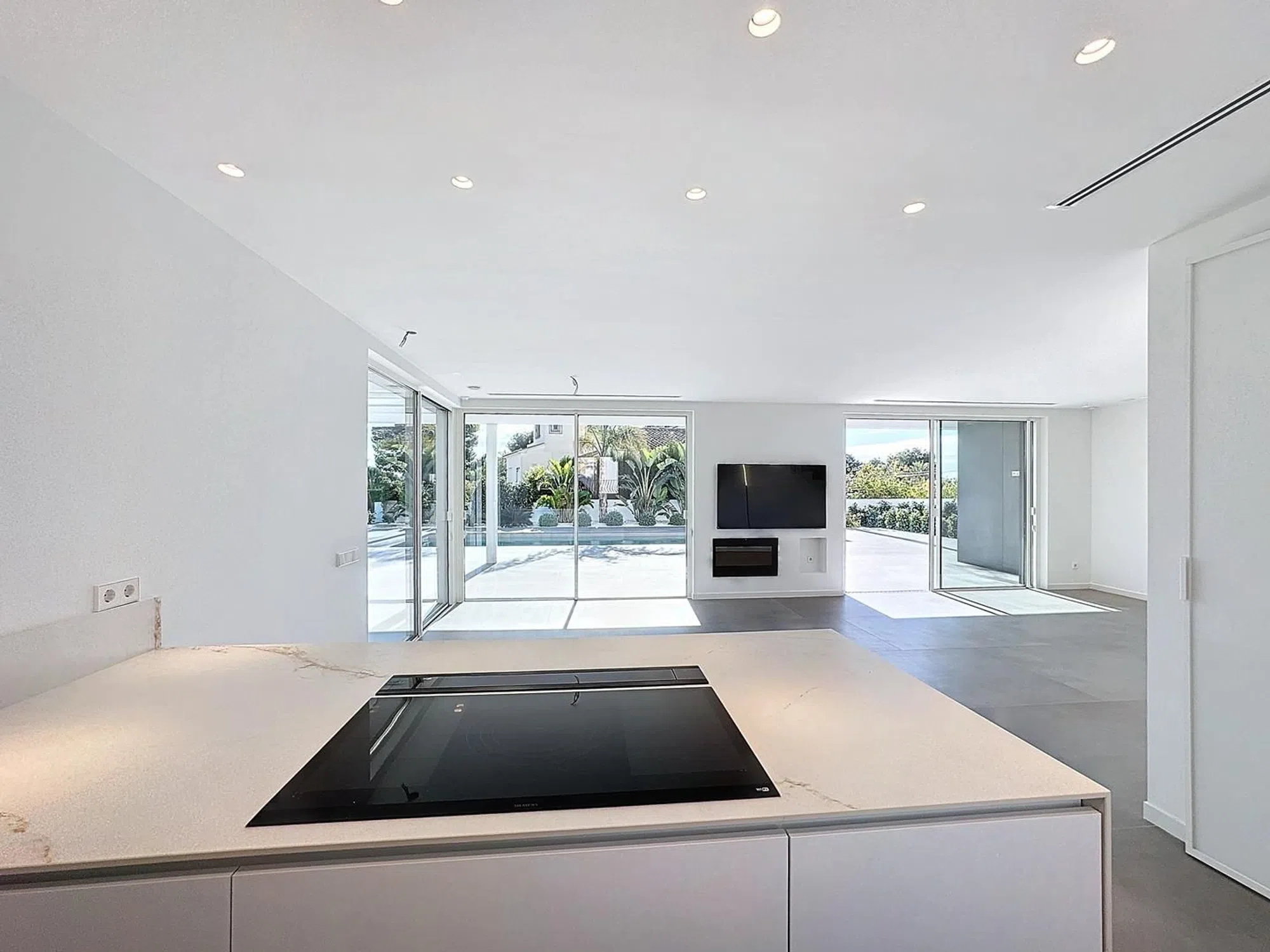 Exclusiva villa de nueva construcción en San Jaime, MorairaEstamos encantados de presentar esta impresionante villa de nueva construcción, situada en San Jaime, una de las zonas más codiciadas de Moraira. Su ubicación privilegiada le permite disfrutar de un entorno tranquilo y exclusivo, a solo unos pasos de supermercados, farmacias, restaurantes y las magníficas playas de la Costa Blanca. Desde el primer momento, esta villa cautiva con su diseño arquitectónico contemporáneo y sus acabados de alta gama. Disfrute de espectaculares vistas panorámicas al mar Mediterráneo, con el icónico Peñón de Ifach en el horizonte, visible desde las estancias principales. En la planta baja, la vivienda ofrece un amplio y luminoso salóncomedor de concepto abierto, donde los grandes ventanales de suelo a techo inundan el espacio de luz natural y se abren directamente a la terraza y la piscina privada. La moderna cocina de diseño, totalmente equipada con electrodomésticos de primera línea, cuenta además con un lavadero independiente para mayor comodidad. Uno de los grandes atractivos de esta propiedad es su sótano totalmente equipado, que incluye una elegante bodega y una sala polivalente, perfecta para convertirla en cine en casa, gimnasio o espacio de entretenimiento según sus necesidades. Además, la villa dispone de un apartamento de invitados independiente, con dos dormitorios y un baño con ducha, ideal para recibir a familiares y amigos con total privacidad. Esta exclusiva propiedad representa una oportunidad única en el mercado inmobiliario de Moraira, combinando lujo, comodidad y una ubicación inmejorable.