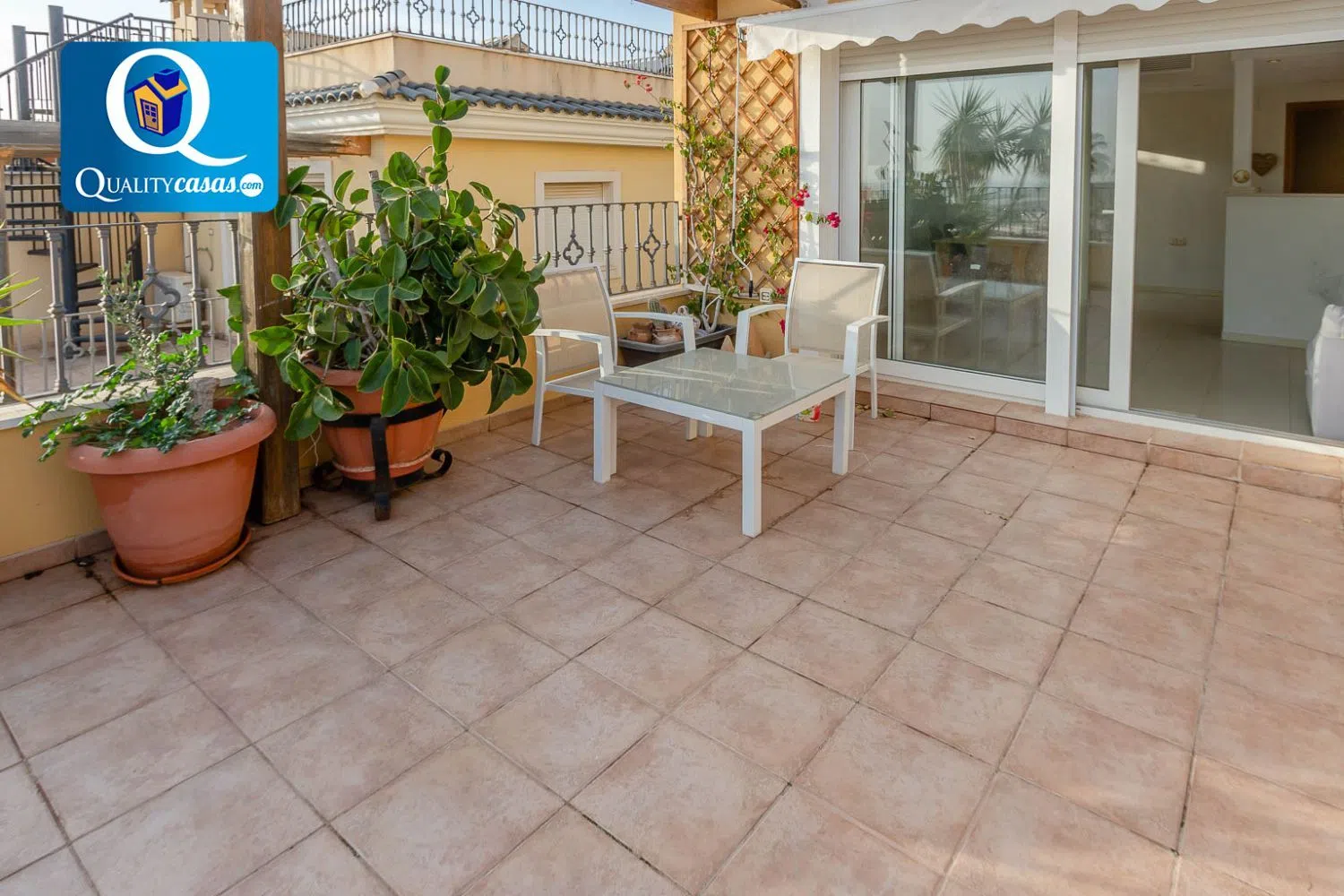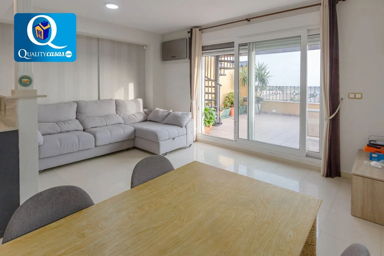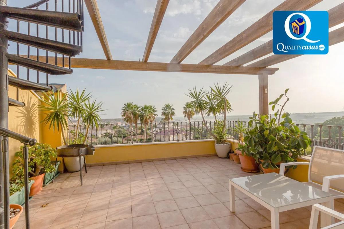 Referentie 17357. Een indrukwekkende duplex in een van de meest bevoorrechte woonwijken, biedt de perfecte combinatie van comfort en spectaculaire uitzichten op zowel de zee als de bergen. Deze volledig externe eerste verdieping valt op door zijn ruimtelijkheid en lichtinval, evenals een prachtige solariumterras op de bovenste verdieping.