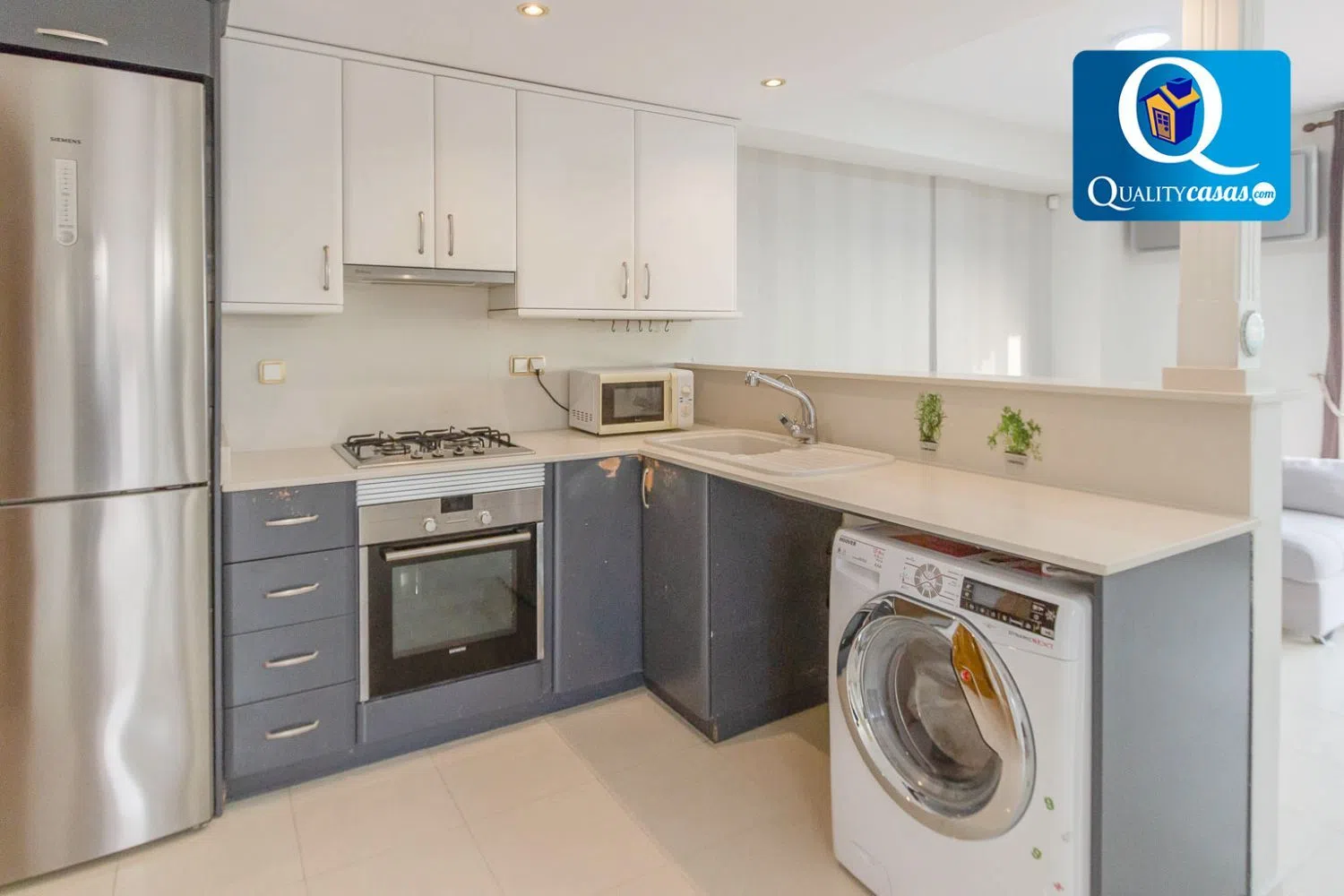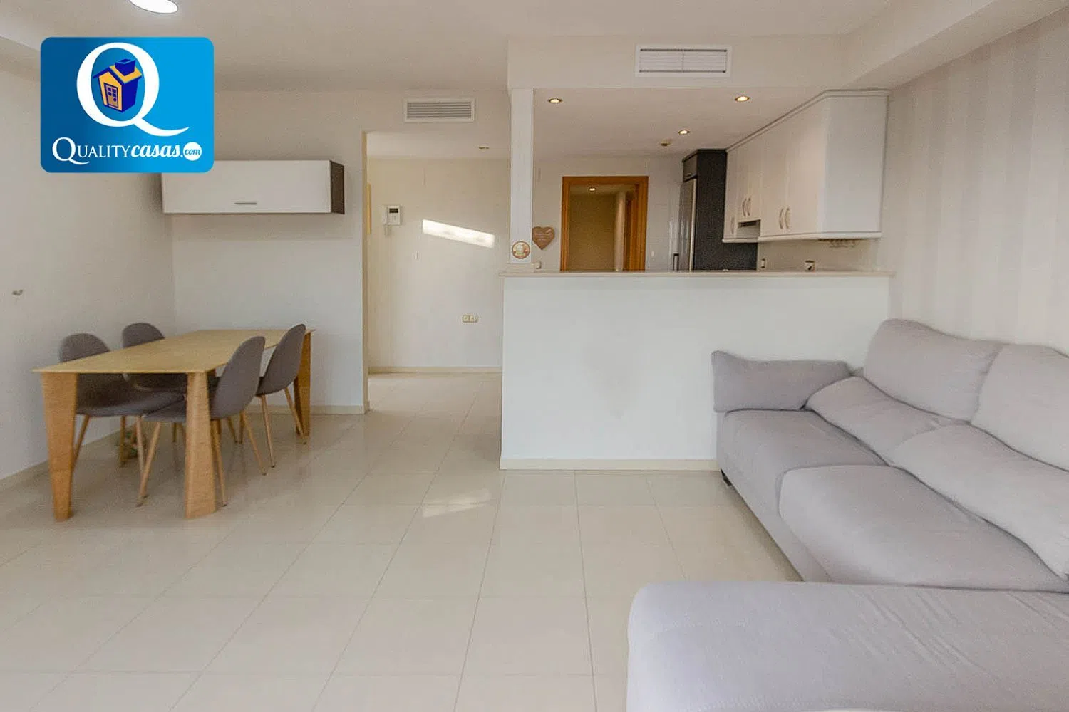 De lichte woonkamer sluit direct aan op een ruime buiten terras, wat een ideale ruimte biedt voor momenten in de open lucht. De keuken, in kantoorstijl en volledig uitgerust met hoogwaardige apparaten, integreert functioneel met de woonkamer, waardoor dagelijkse communicatie wordt gefaciliteerd. De woning wordt compleet gemaakt met twee slaapkamers met ingebouwde kasten en een complete badkamer. Bovendien is er een parkeerplaats en een berging, wat zorgt voor extra opslagruimte dat zeer wordt gewaardeerd.