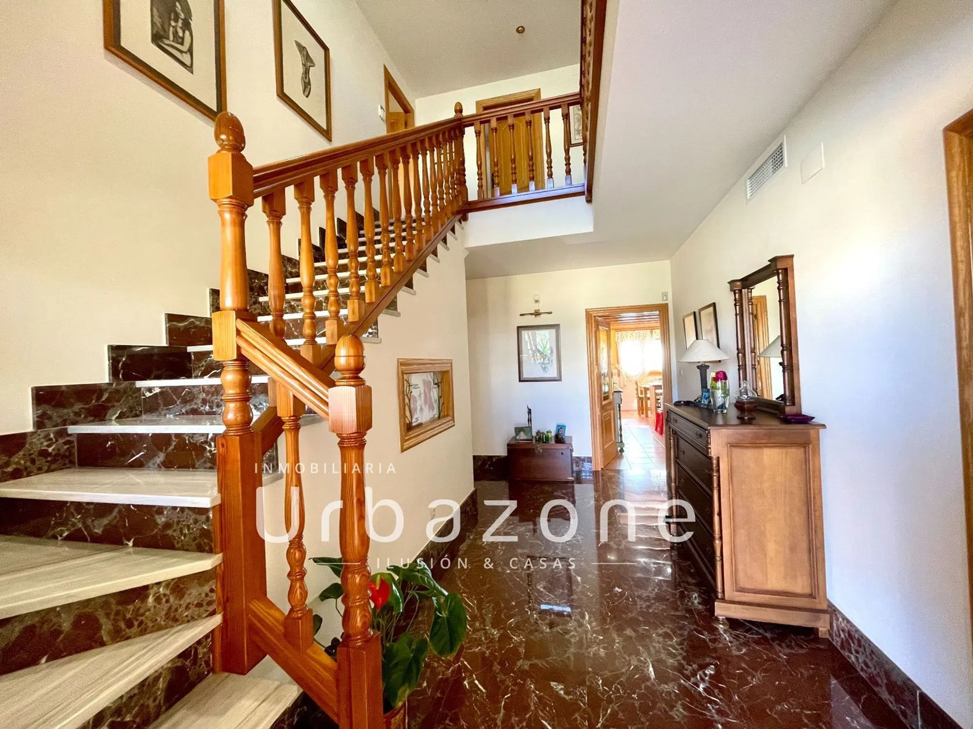 ¡Descubra su nuevo hogar en el corazón de Mutxamel! Este impresionante chalet independiente de 404m², situado en una parcela de 800m², es la definición de lujo y comodidad. Con amplios espacios y materiales de alta calidad, esta propiedad ofrece una experiencia de vida íntima y exclusiva. La villa se ilumina naturalmente, creando un ambiente acogedor y sofisticado en cada rincón. El jardín es un oasis privado con una piscina exterior, cómodo césped artificial y árboles frutales, perfecto para disfrutar de momentos inolvidables en familia. Además, cuenta con dos porches que permiten disfrutar del aire libre durante todo el año. La planta baja alberga un salón principal, una cocina moderna, una zona de lavadero y un dormitorio con baño completo, ideal para visitas o para quienes prefieren evitar las escaleras. En la primera planta, encontrará tres dormitorios adicionales y dos baños, proporcionando espacio más que suficiente para toda la familia. La planta inferior es un verdadero paraíso de ocio con una zona de entretenimiento, sauna, despacho y bodega, perfecta para los amantes del vino. Con seis dormitorios en total y tres baños, esta casa se adapta a todas sus necesidades. Mantenida en excelente estado, la propiedad también incluye armarios empotrados y un trastero para almacenamiento adicional. Para conocer más inmuebles en la zona, pincha en el logo de Urbazone. Urbazone ilusión & casas I-985 B-42 INMOBILIARIA URBAZONE Conforme se requiere en el Decreto 98/2022 de 29 de julio de 2022, del Consell de la Comunitat Valenciana, por el que se regula el Registro de Agentes de Intermediación Inmobiliaria, cumpliendo con los requisitos e inscrito en dicho registro, con el número RAICV 4289. Asociado Apial Nº A503 Asociación de Agentes de la Propiedad Inmobiliaria y Agentes Inmobiliarios de la Provincia de Alicante. [IW].