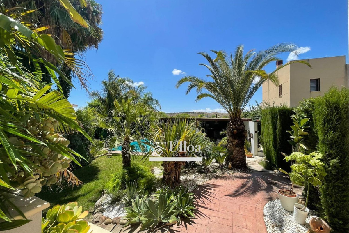 En la encantadora zona de Almajada, se presenta una residencia que encarna la esencia del lujo y la comodidad. Este magnífico chalet, que solo comparte una pared con un antiguo garaje, está ubicado en una amplia parcela de 723 metros cuadrados, combinando elegancia y privacidad en un entorno idílico.