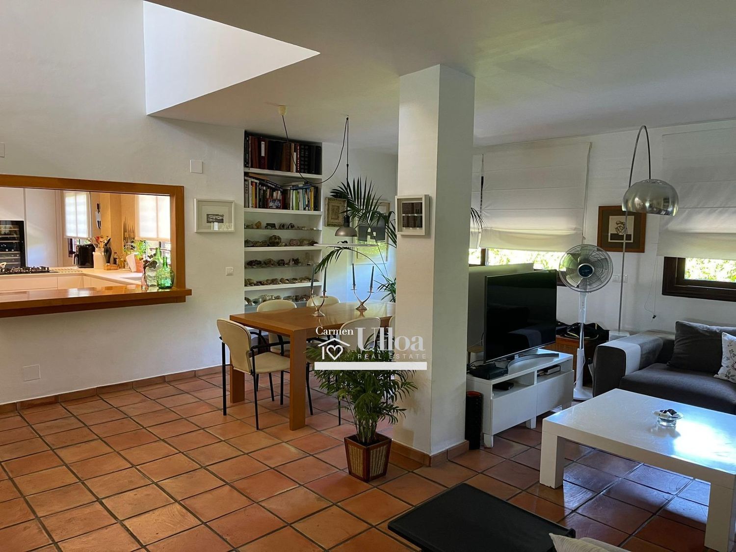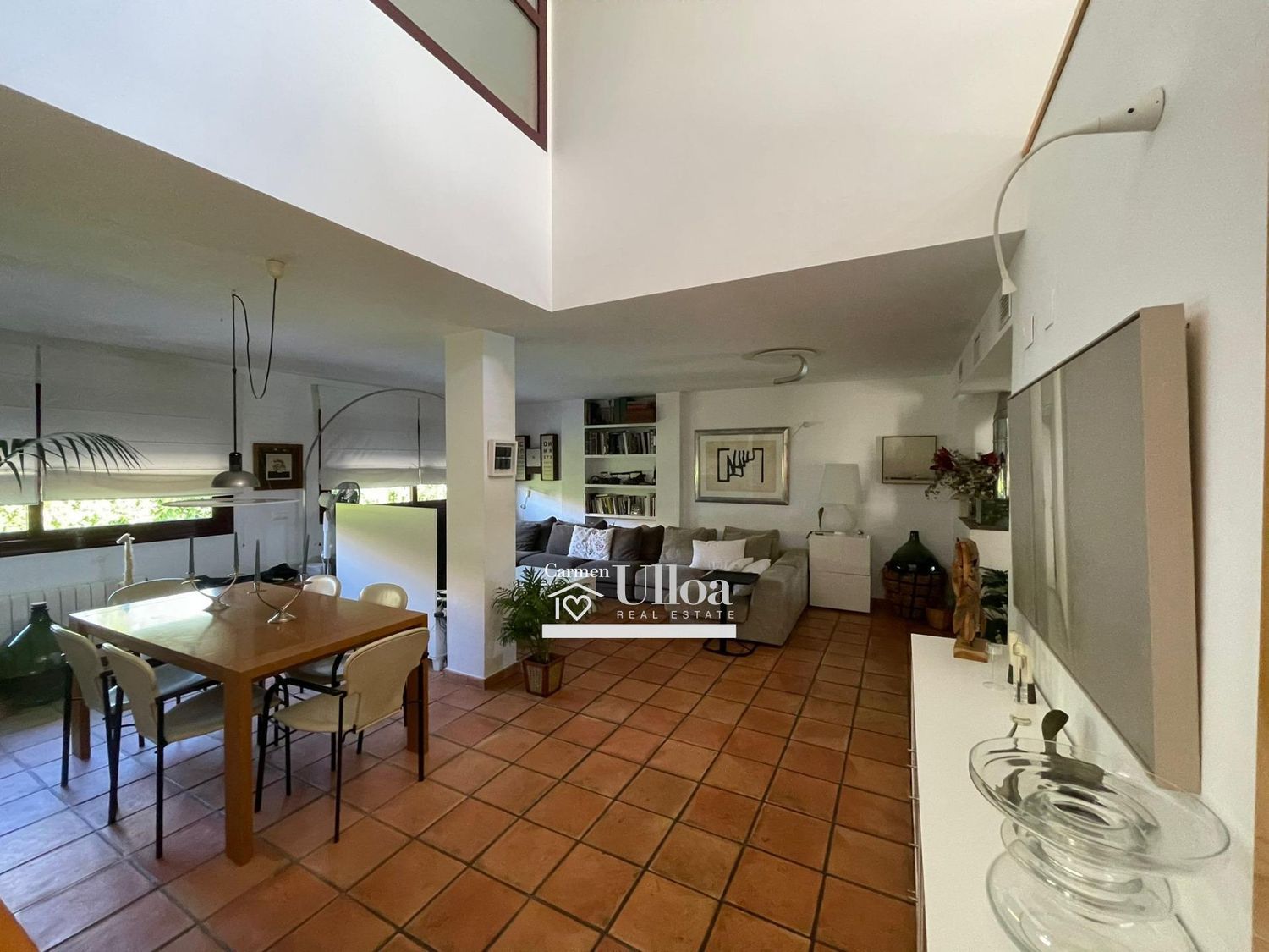 El corazón de la residencia es su impresionante salón, que se integra de manera armónica con una moderna cocina abierta, equipada con tecnología de vanguardia. Los grandes ventanales permiten que la luz natural inunde el interior, creando un ambiente acogedor. Desde el salón, se accede a una hermosa terraza que ofrece vistas al jardín y la piscina.