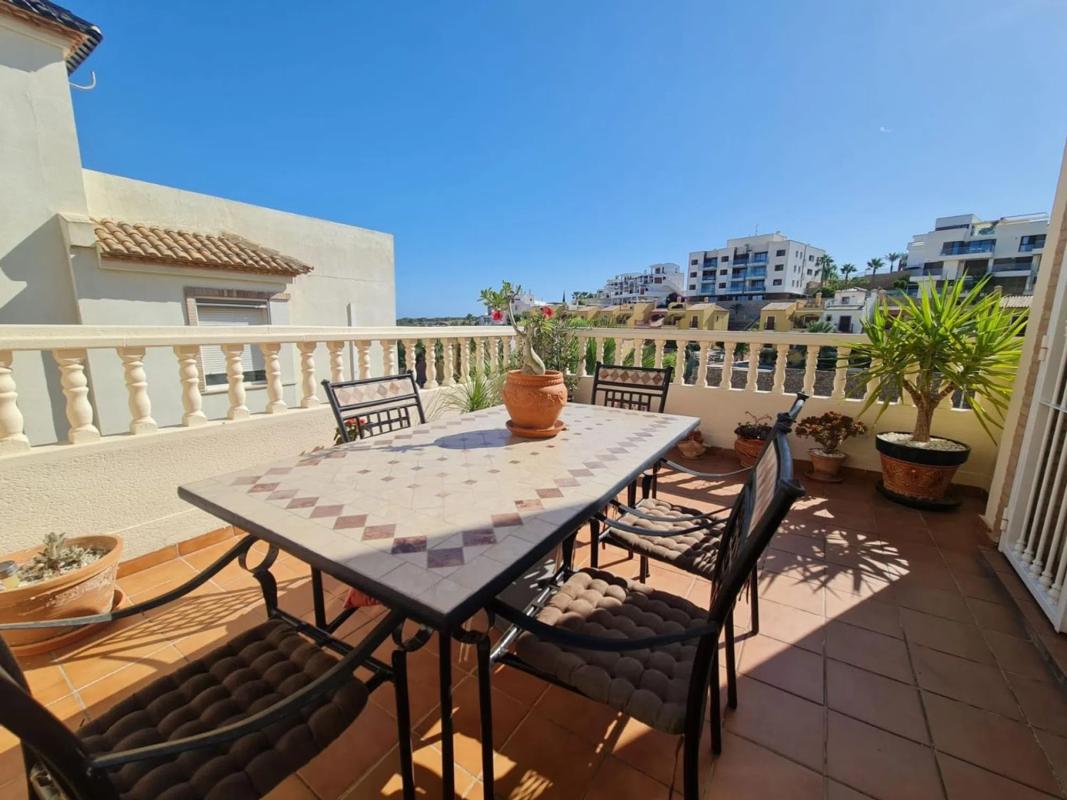 Fabulosa villa en el campo de golf Las Ramblas, Orihuela Costa 3 dormitorios 3 baños 1 aseo Piscina privada Piscina comunitaria Vistas panorámicas Vivienda 124.50m2 Trastero 14.80m2 Terraza en planta baja 5.50m2 Terraza en planta alta 15.47m2 Zona de aparcamiento 12.50m2 Solárium 31.60m2 Jardín 272m2 Impuesto comunitario: aprox. 550 € IBI: 305.50 €.