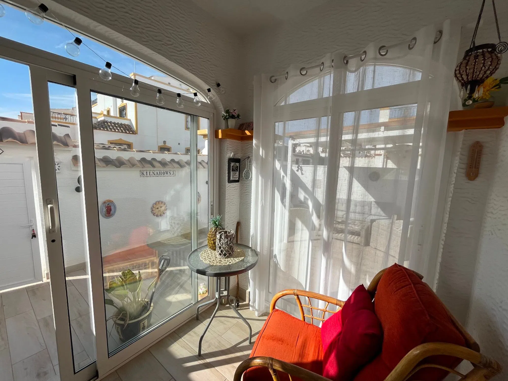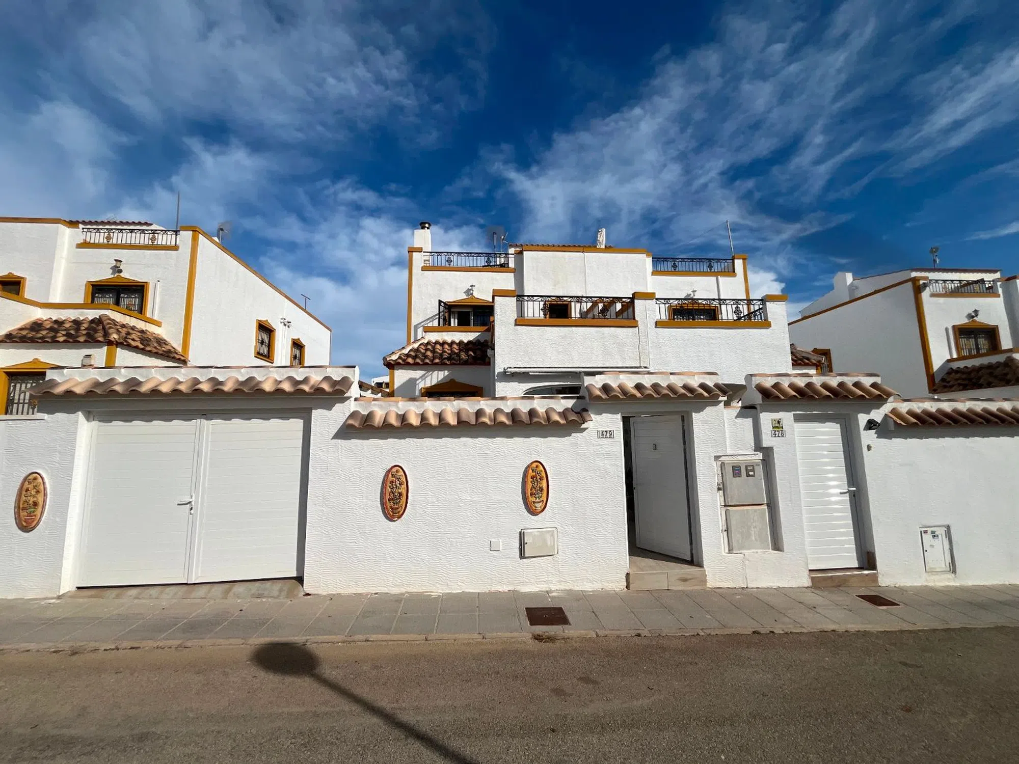 Casa cuádruple de 3 dormitorios con orientación oeste – Entre Naranjos, Vistabella Golf Esta preciosa casa adosada de 3 dormitorios y 2 baños, recientemente renovada, goza de una ubicación ideal en la popular zona de Entre Naranjos, en Vistabella Golf. La propiedad ha sido modernizada y se encuentra en excelentes condiciones. La vivienda cuenta con numerosas mejoras, entre las que se incluyen suelos nuevos en toda la casa, un jardín recién alicatado con una elegante pérgola, nuevas puertas de entrada y un muro perimetral más alto para mayor privacidad. Al entrar, encontrará una terraza acristalada que da a un luminoso salón-comedor con aire acondicionado frío/calor, ventiladores de techo con mando a distancia y una acogedora estufa de leña. La cocina independiente cuenta con una puerta nueva para mayor comodidad. En la planta baja hay una habitación doble con armarios empotrados, aire acondicionado frío/calor, un ventilador de techo nuevo y un cuarto de ducha. En la planta superior encontrará dos dormitorios dobles más, ambos con armarios empotrados, aire acondicionado y ventiladores de techo nuevos. El dormitorio principal cuenta con un balcón privado recién alicatado y acceso a un baño familiar. Una escalera interior cerrada conduce a un solárium privado en la azotea con preciosas vistas a la piscina comunitaria y al parque. La propiedad también incluye un práctico cobertizo. Con la nueva casa club de Vistabella Golf casi terminada, esta es una oportunidad única para adquirir una vivienda lista para entrar a vivir en una comunidad dinámica y en crecimiento, rodeada de hermosos paisajes y a poca distancia en coche de la costa. ¿Por qué elegir Solmar Estates? Somos miembros orgullosos de la API (Agente de la Propiedad Inmobiliaria), una asociación con una larga trayectoria en el sector inmobiliario español. La pertenencia a la API es una opción para los agentes inmobiliarios que implica obligaciones en materia de formación, experiencia y un estricto código ético. La membresía en la API ofrece a nuestros compradores y vendedores las máximas garantías sobre nuestra actividad y cualificaciones. Número de registro API: 00280. Para obtener más información, haga clic en el enlace a continuación.