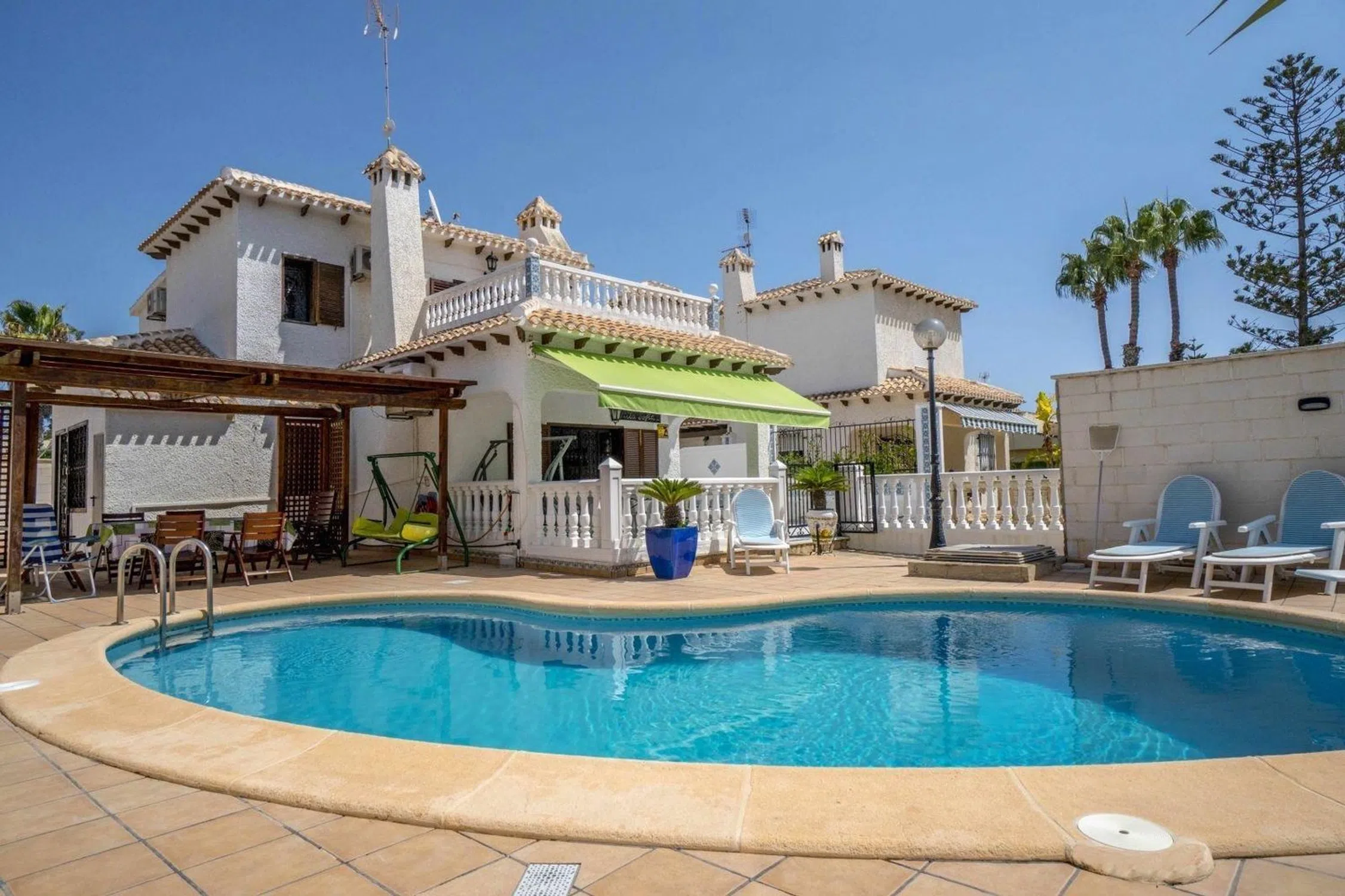 GLODEKO HOMES presenta: Exclusivo chalet con piscina de agua salada en Orihuela Costa Descubra esta magnífica propiedad ubicada en una de las zonas más deseadas de Orihuela Costa. Un chalet diseñado para disfrutar del confort, el estilo y la serenidad del Mediterráneo. La vivienda dispone de una espectacular piscina privada de agua salada, ideal para el cuidado natural de la piel y perfecta para relajarse durante todo el año. En la planta principal, encontrará un amplio salón-comedor con chimenea, que aporta calidez y elegancia en los meses más frescos, así como aire acondicionado tipo split para su total confort. La cocina americana, moderna y luminosa, se abre a través de un ventanal hacia la calle, ofreciendo funcionalidad y amplitud. Gracias a sus grandes ventanales, la propiedad goza de abundante luz natural y vistas panorámicas al mar que elevan la experiencia diaria de vivir en este enclave único. En la planta superior, pensada para mayor privacidad, se encuentran cuatro amplios dormitorios con armarios empotrados y aire acondicionado, además de dos baños completos con acabados de alta calidad. La vivienda se completa con dos generosos porches, ideales para disfrutar de veladas al aire libre, y un entorno tranquilo que invita al descanso, rodeado de naturaleza y a pocos minutos de las mejores playas y servicios. Una oportunidad excepcional para quienes buscan una residencia exclusiva en la Costa Blanca. Contáctanos para más información.