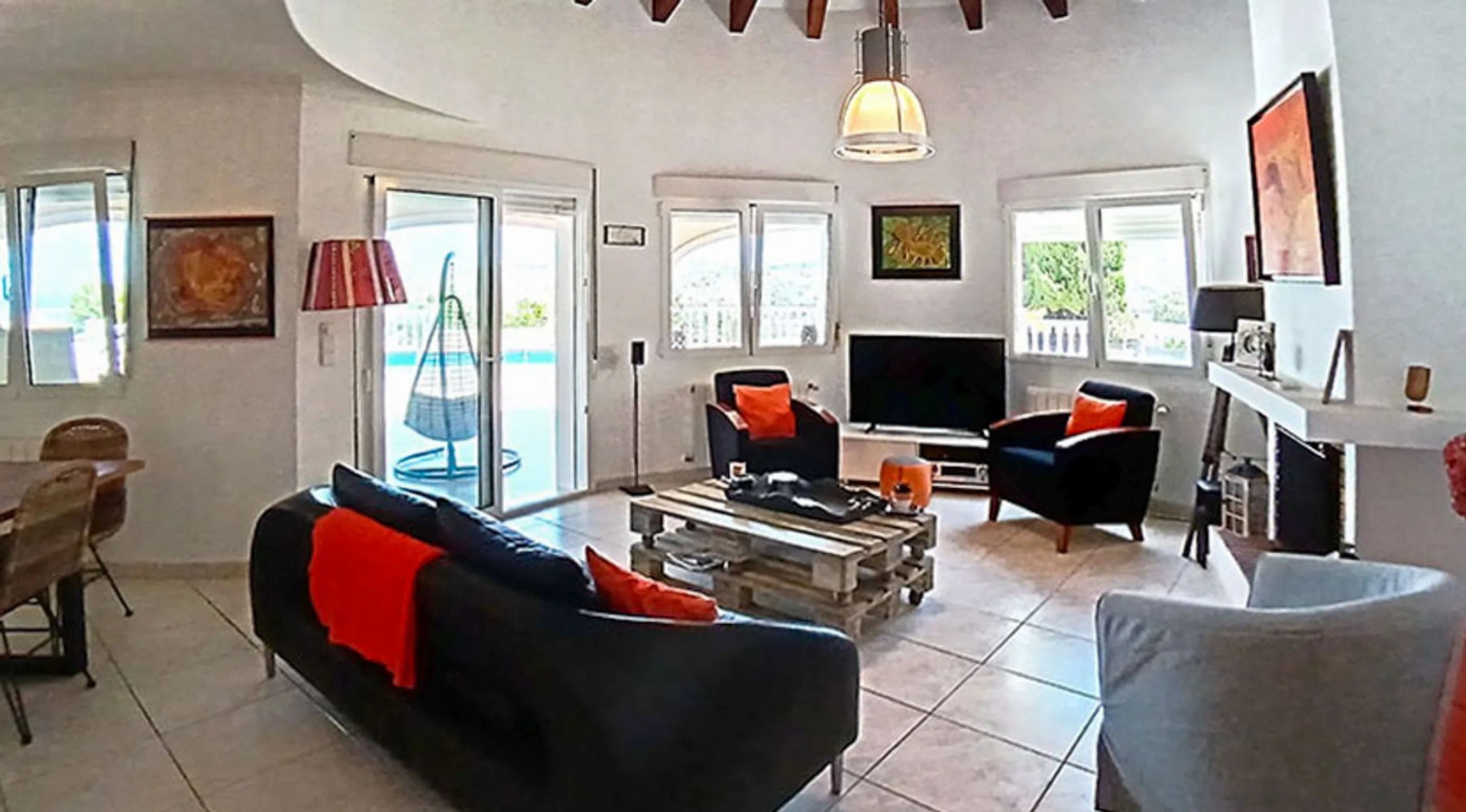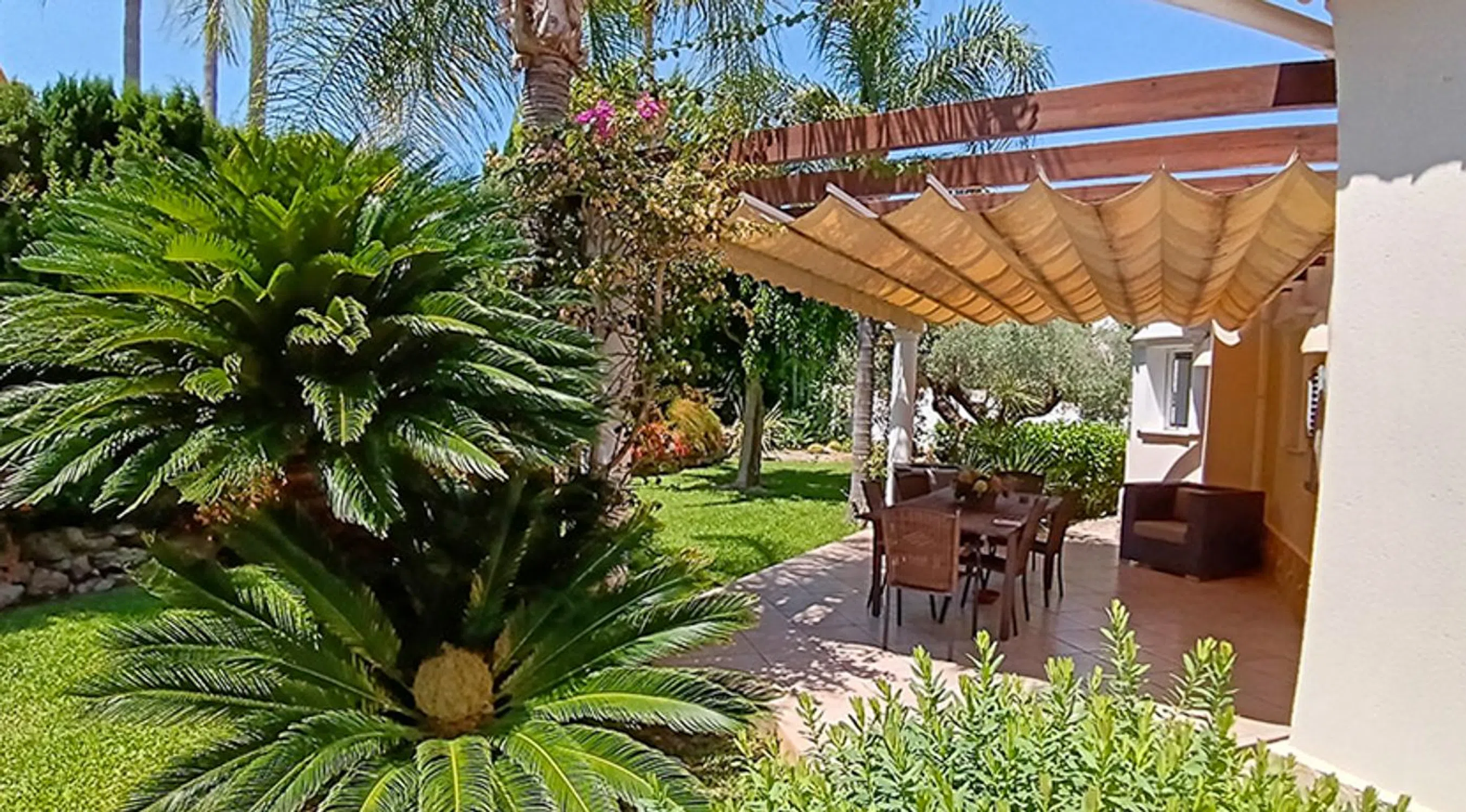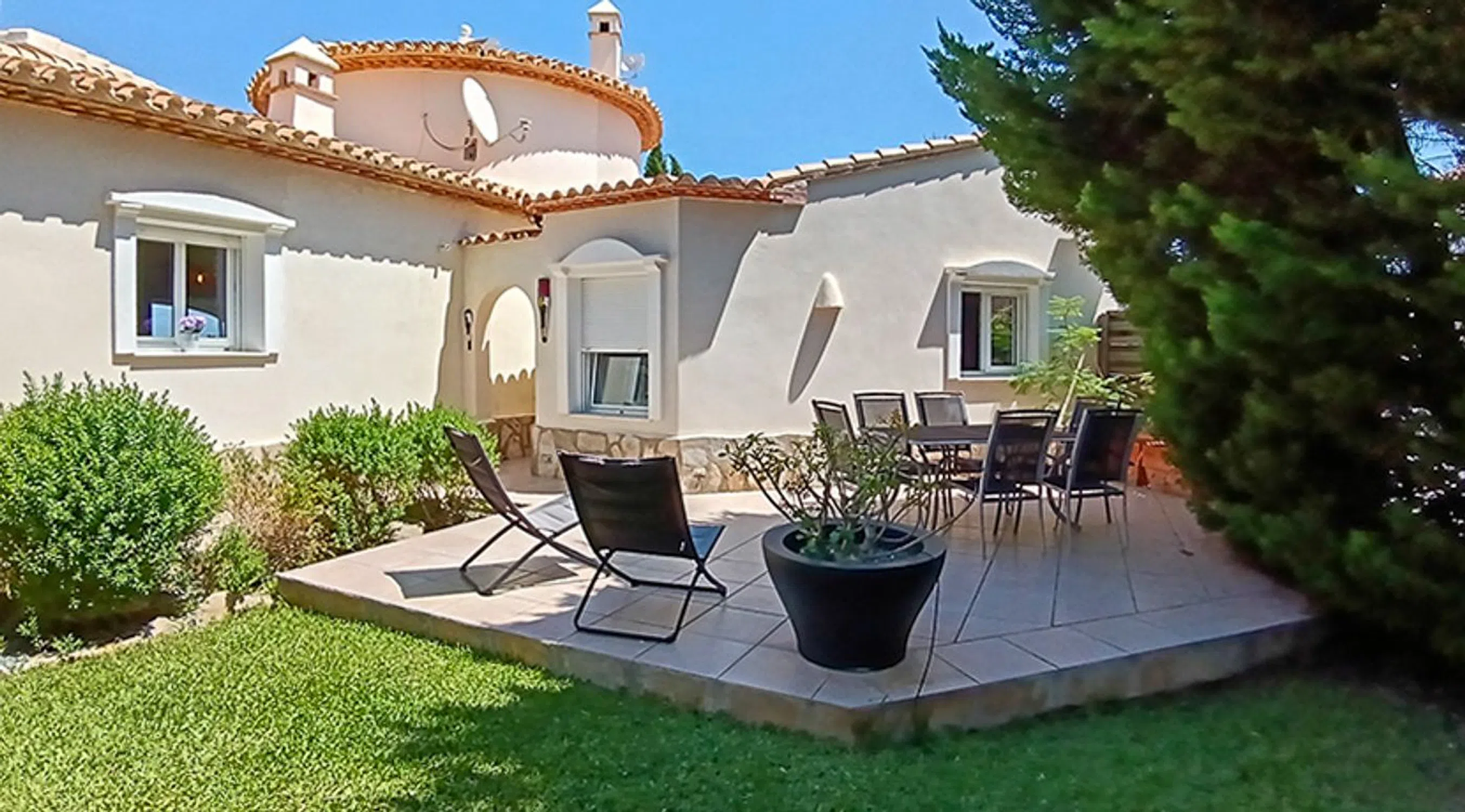 Ubicada en una zona exclusiva de Residencial La Sella Golf y con vistas panorámicas al mar, al campo de golf y al Montgó, ésta maravillosa villa cuenta con 275 m² construidos en una parcela de 1.275 m². Construida en el año 2000 y mantenida en excelente estado cuenta con 5 dormitorios, 3 baños y un garaje, además de una piscina privada de 10x5 m. Está equipada con calefacción central de gas, aire acondicionado frío/calor, fibra óptica y la urbanización tiene servicio de seguridad 24/7. Una casa de invitados y una caseta de madera destinada actualmente a taller de arte, perfeccionan el comfort de esta villa. La vivienda se presenta con un precioso patio de entrada y un diseño arquitectónico que destaca por sus arcos de piedra tosca, techos con vigas de madera y una acogedora chimenea. El salón y el comedor forman un espacio abierto y luminoso que se conecta con la cocina totalmente equipada. Desde aquí se accede a una terraza con agradables vistas al jardín, presidido por un olivo centenario que aporta autenticidad y carácter. La distribución en una sola planta ofrece máxima comodidad. La suite principal dispone de vestidor y baño privado, mientras que un segundo dormitorio con oficina anexa y un baño con ducha doble completan la vivienda principal. Además, la propiedad cuenta con una casa de invitados independiente con dos dormitorios, baño compartido y terraza privada, ideal para alojar a familiares o amigos. La caseta de madera, con agua y electricidad, ofrece un espacio versátil como estudio, despacho o taller. El exterior invita a disfrutar del clima mediterráneo durante todo el año. La piscina privada de 10 x 5 metros está rodeada por una amplia terraza solárium, perfecta para relajarse. La entrada cuenta con portón automático, espacio de aparcamiento para varios vehículos y garaje doble con zona de almacenamiento. Entre su equipamiento destacan la calefacción central de gas, aire acondicionado frío/calor, conexión de fibra óptica, videoportero, televisión por satélite y sistema de seguridad con vigilancia 24 horas dentro del resort. La parcela está completamente vallada y ajardinada, garantizando privacidad y tranquilidad. Situada a pocos minutos del centro de servicios y ocio de La Sella, del hotel Syncrosfera Health & Fitness y del campo de golf de 27 hoyos —sede del La Sella Open 2025 del Ladies European Tour—, la villa ofrece una ubicación inmejorable. Las localidades de Dénia y Jávea, con sus playas, puertos deportivos y excelente oferta gastronómica, están a menos de media hora en coche. Una propiedad única que combina privacidad, confort y vistas espectaculares en uno de los entornos más deseados de la Costa Blanca. Descubra todo lo que esta villa exclusiva puede ofrecerle, visítela para experimentar personalmente su encanto y sus vistas únicas, y no dude en ponerse en contacto con nuestro equipo para más información.