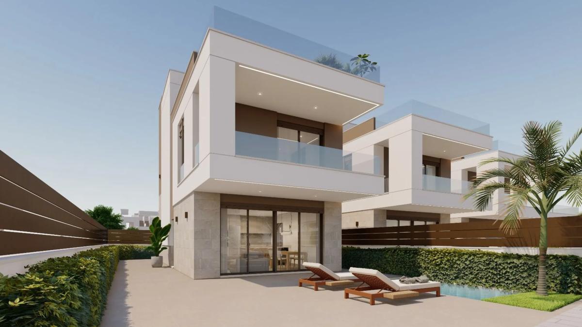 Exclusiva promoción de Obra Nueva de 4 impresionantes villas independientes, diseñadas para ofrecer comodidad, privacidad y estilo en un entorno privilegiado. Ubicación excepcional: - Frente a la Rambla de Pilar de la Horadada, una amplia zona verde que garantiza tranquilidad y vistas abiertas. - A pocos minutos de las playas, restaurantes y todos los servicios esenciales. - Entorno ideal para disfrutar del aire libre y la cercanía al mar sin renunciar a la comodidad urbana. Características principales: - 3 dormitorios y 3 baños. - Piscina privada y solarium. - Parcela con plaza de aparcamiento. - Amplios espacios. Solarium y exteriores: - cocina de verano con fregadero y ducha. - preinstalación para jacuzzi. - espacios al aire libre perfectos para disfrutar del sol y de las vistas.