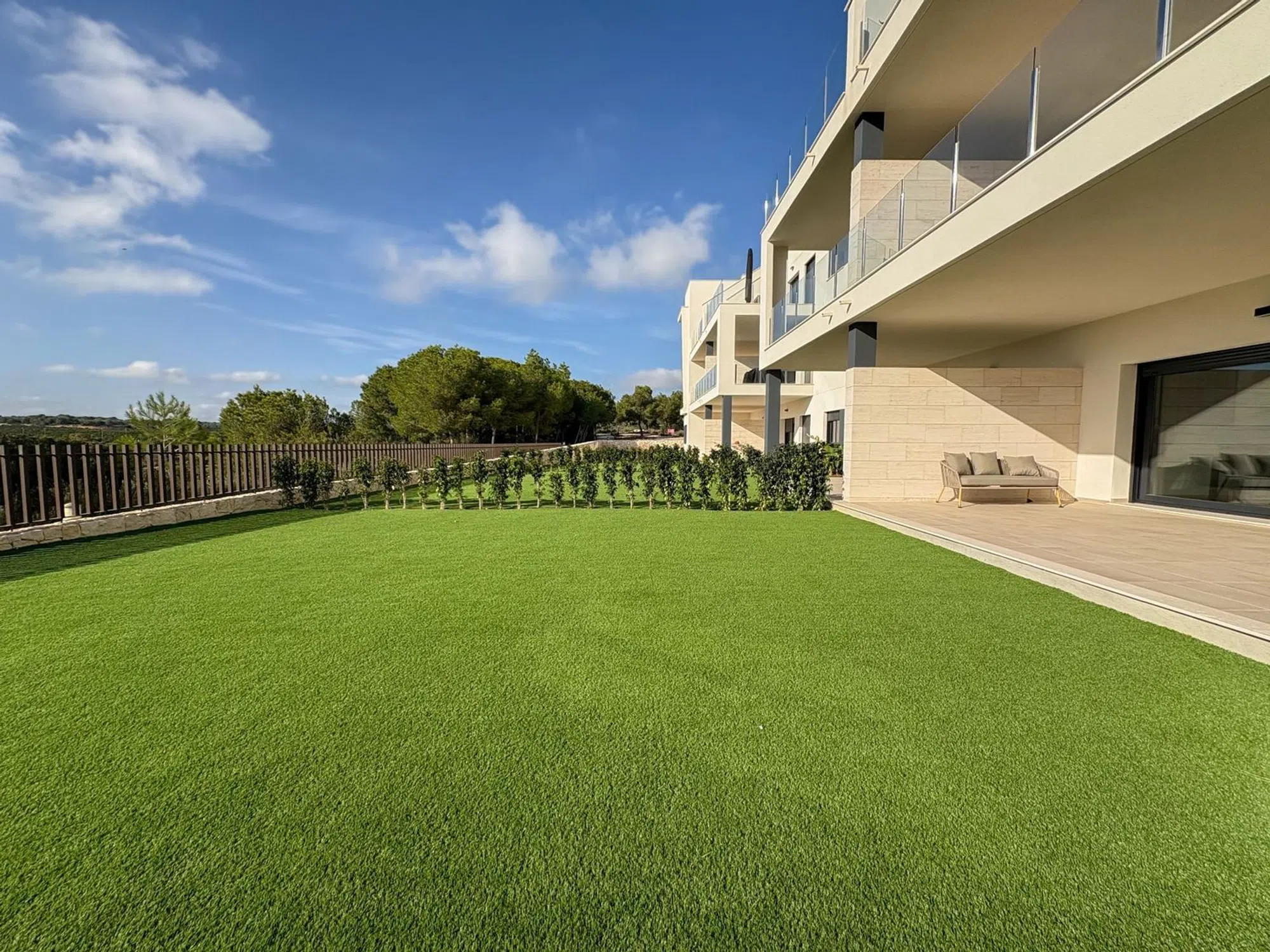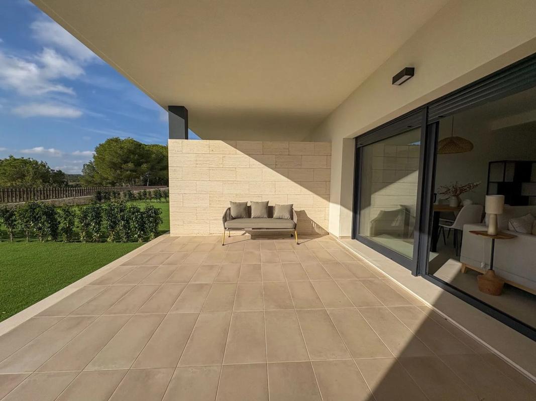 Este piso en planta baja se encuentra en el corazón del campo de golf Lo Romero, un lugar donde la calma, el paisaje y la luz se combinan para ofrecer un entorno único. A tan solo 8 minutos en coche de Pilar de la Horadada y de las playas, es una vivienda pensada para quienes buscan espacio, tranquilidad y conexión con la naturaleza, sin renunciar a la comodidad del día a día. La vivienda destaca por su amplio jardín privado de 129 m², un espacio abierto y versátil que invita a disfrutar del aire libre, las comidas con amigos o el silencio de las tardes. El acceso directo desde el salón al jardín crea una transición natural entre interior y exterior, ampliando la sensación de amplitud. En el interior, un gran salón comedor con cocina americana reúne las zonas de estar y cocina en un espacio funcional y luminoso, con acabados modernos y una distribución muy práctica. Dispone de tres dormitorios con armarios empotrados y dos baños completos, uno de ellos en suite, diseñados con materiales actuales y tonos neutros que aportan serenidad. El residencial ofrece piscina comunitaria rodeada de jardines, ideal para disfrutar de los días de sol. La vivienda incluye la posibilidad de plaza de aparcamiento por 5.000 € adicionales. Vivir aquí es disfrutar del ritmo tranquilo del campo de golf, con el mar y los servicios a pocos minutos. Una combinación poco común de confort, entorno natural y estilo de vida mediterráneo. [IW].