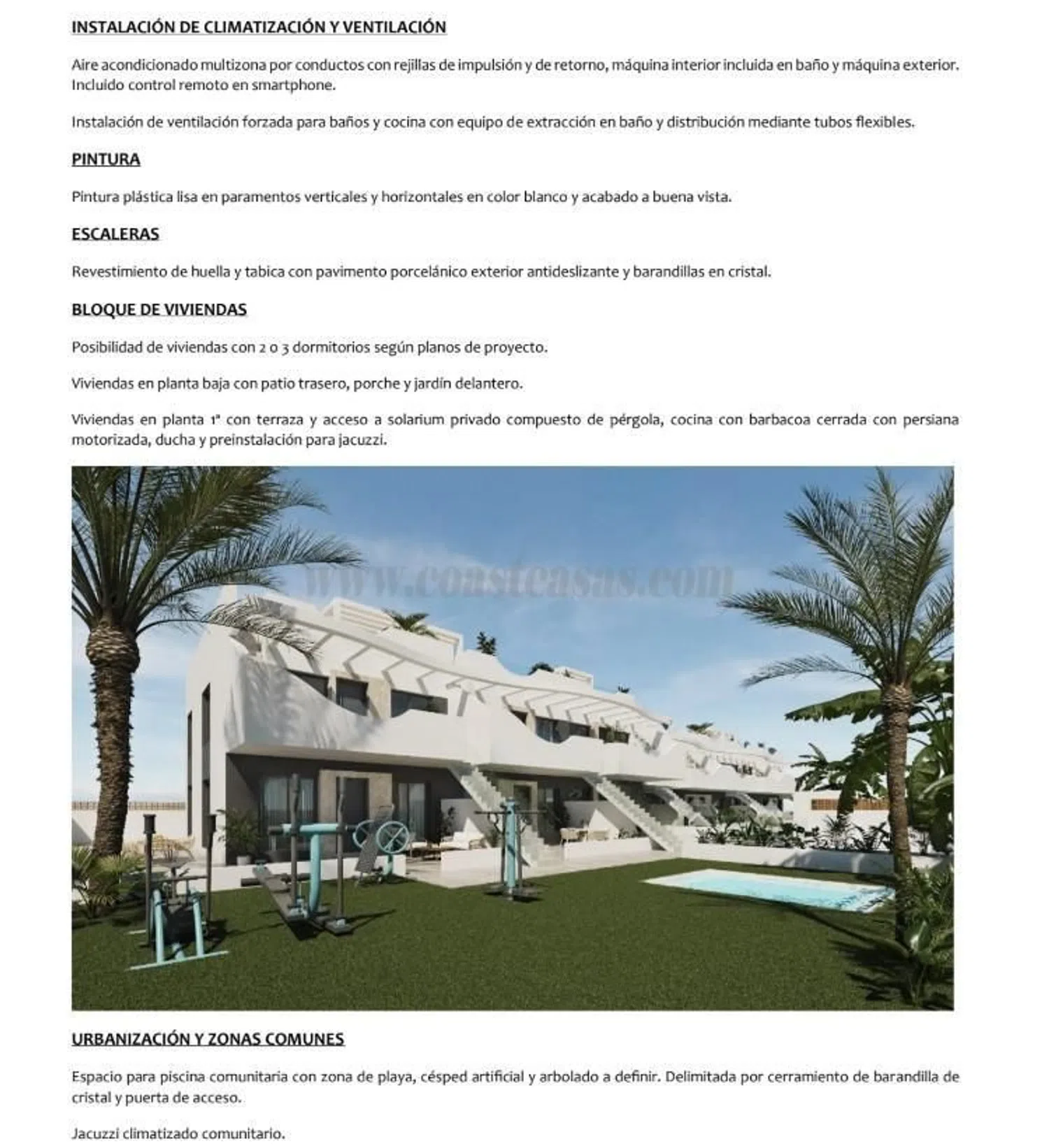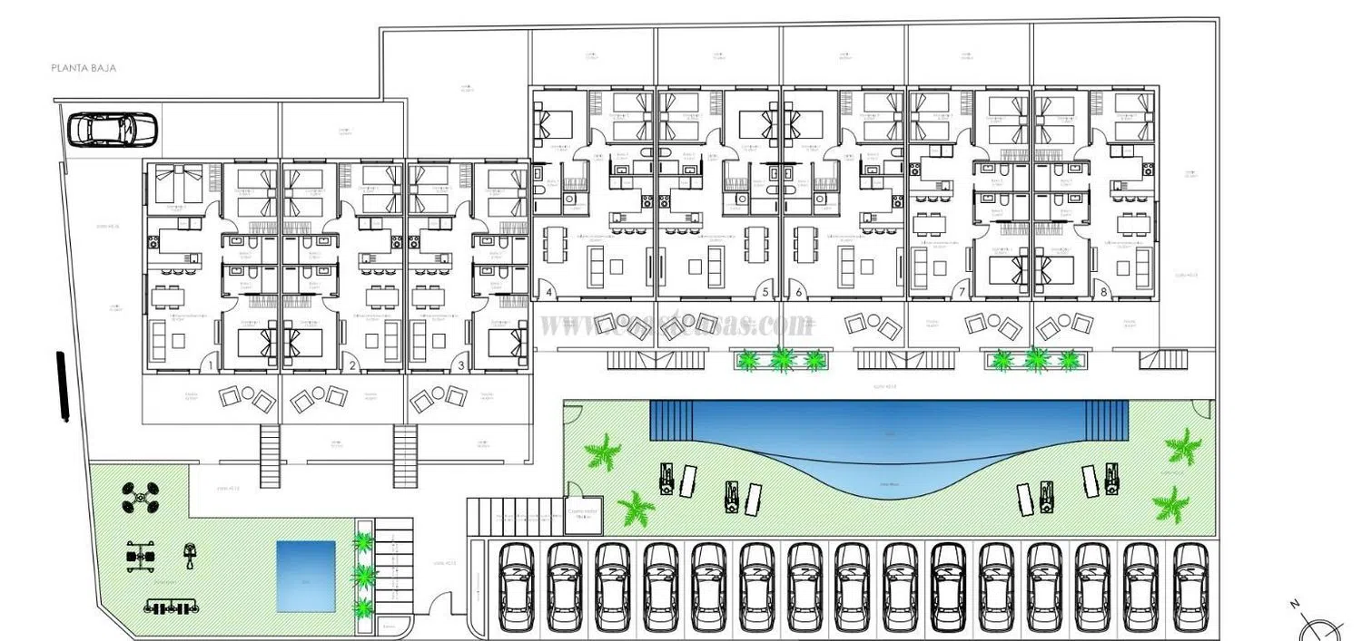 Deze nieuwe bungalows onderscheiden zich door hun modern design en golvende structuur, die elke woning een eigen karakter geeft. Beschikbaar in 2 en 3 slaapkamers, je kunt kiezen tussen begane grond met voortuin en achtertuin, of bovenverdiepingen met eigen solarium. Daarnaast is er een gemeenschappelijk zwembad en ruimtes ontworpen om optimaal te genieten van comfort en levenskwaliteit. Een ander soort huis, ontworpen om te verrassen.