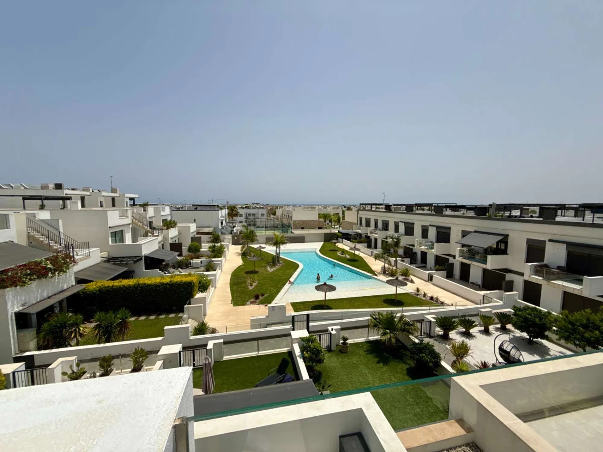 Te damos la bienvenida a este elegante ático ubicado en Avenida Costa Blanca, una de las zonas más cotizadas de la hermosa Torre de la Horadada, a solo unos minutos a pie del mar Mediterráneo. Situado en el Residencial Zen Life, un complejo tranquilo, bien gestionado y de alta calidad, este hogar combina diseño moderno, funcionalidad y confort en cada rincón. La vivienda, en excelente estado y prácticamente nueva, se distribuye en dos plantas: En la planta baja, encontrarás tres dormitorios amplios y luminosos. El dormitorio principal dispone de baño en suite y acceso directo a una gran terraza privada con vistas al jardín y a la zona comunitaria. Uno de los dormitorios se utiliza actualmente como oficina o habitación de invitados, ofreciendo versatilidad según tus necesidades. En la planta superior, destaca un amplio salón con cocina abierta, decorado con materiales de alta gama y una barra móvil a medida que delimita sutilmente los espacios. Desde aquí se accede directamente a una espectacular terraza privada en la azotea, con vistas al mar y a la cuidada zona comunitaria con gran piscina. La terraza cuenta con pérgola, instalación de agua y electricidad, creando el espacio ideal para disfrutar del sol, relajarte o compartir veladas al aire libre. Características destacadas: 3 dormitorios, incluyendo suite principal con baño privado y terraza Espacioso solárium con vistas al mar y a la piscina comunitaria Diseño moderno con materiales de alta calidad Aire acondicionado, pérgola, toma de agua y electricidad en terraza Urbanización tranquila, consolidada y con excelente mantenimiento A pocos minutos andando de la playa Una propiedad perfecta como residencia permanente, segunda vivienda o inversión de alto nivel en la Costa Blanca. Nota legal: Tasas e impuestos no incluidos. La información proporcionada es orientativa y no vinculante jurídicamente, pudiendo contener errores.