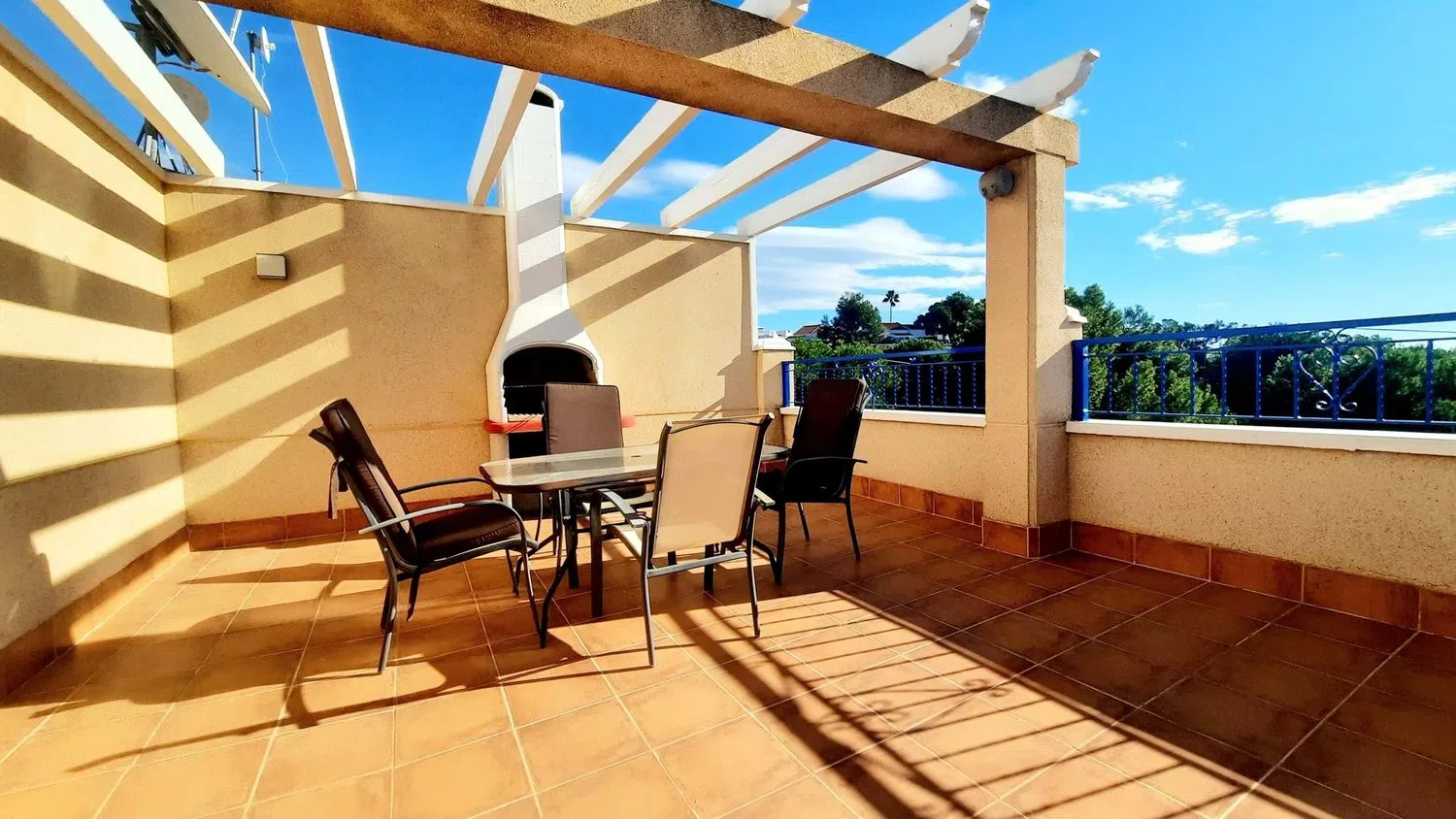 Deze woning omvat een privégarage, toegankelijk via elektrische poorten vanaf de straat, die directe toegang tot het huis biedt, wat de boodschappen vergemakkelijkt. Bovendien biedt de trap naar de garage een ruime opbergruimte. De urbanisatie ligt in een prachtige omgeving, met zorgvuldig onderhouden gemeenschappelijke ruimtes. Het strand en de voorzieningen bevinden zich op slechts 10 minuten loopafstand, wat veel waarde toevoegt aan de locatie. De luchthaven van Murcia is op ongeveer 30 minuten rijden en de luchthaven van Alicante op ongeveer 60 minuten.