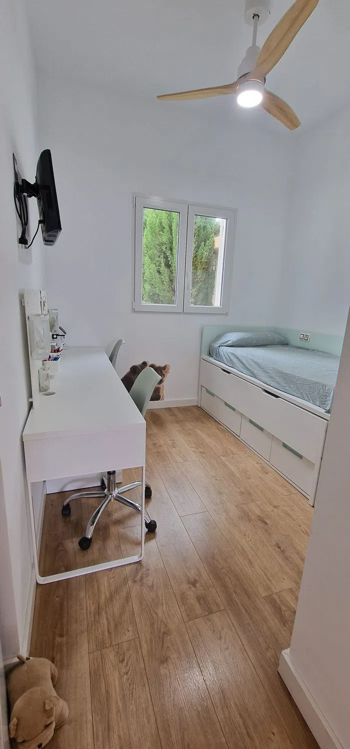 Espectacular chalet pareado con vistas panorámicas sito en una urbanización de gran prestigio perteneciente al termino de Polop de la Marina. La propiedad se distribuye en 3 niveles, la planta baja consta de hall de entrada, una bonita cocina completamente amueblada y equipada, un amplio y luminoso salón - comedor, el cual cuenta con acceso directo a la zona exterior, 2 dormitorios, además de, 1 cuarto de baño. La primera planta consta de 2 amplios dormitorios equipados con armarios empotrados y balcón privados, además de, 2 baños, ambos en suite. Desde esta planta podremos acceder al solarium de la vivienda, en el podremos disfrutar de unas amplias vistas panorámicas. Parking en superficie, la propiedad cuenta con un trastero de unos 13 metros cuadrados. Las zonas comunitarias nos ofrecen unas amplias zonas ajardinadas, 4 piscinas y 3 zonas infantiles. El equipamiento de la vivienda es muy extenso, está cuenta con aire acondicionado y agua caliente con placas solares (ACS), ventanas de doble acristalamiento, puerta de seguridad, calefacción, entre otros.