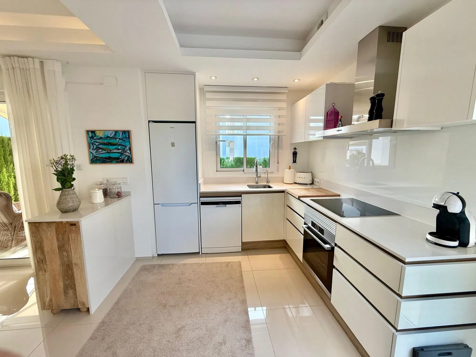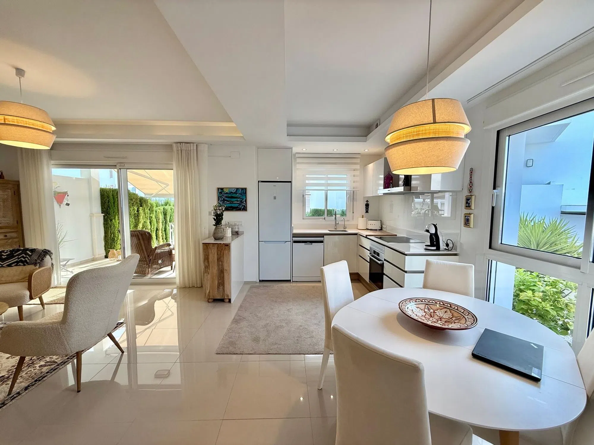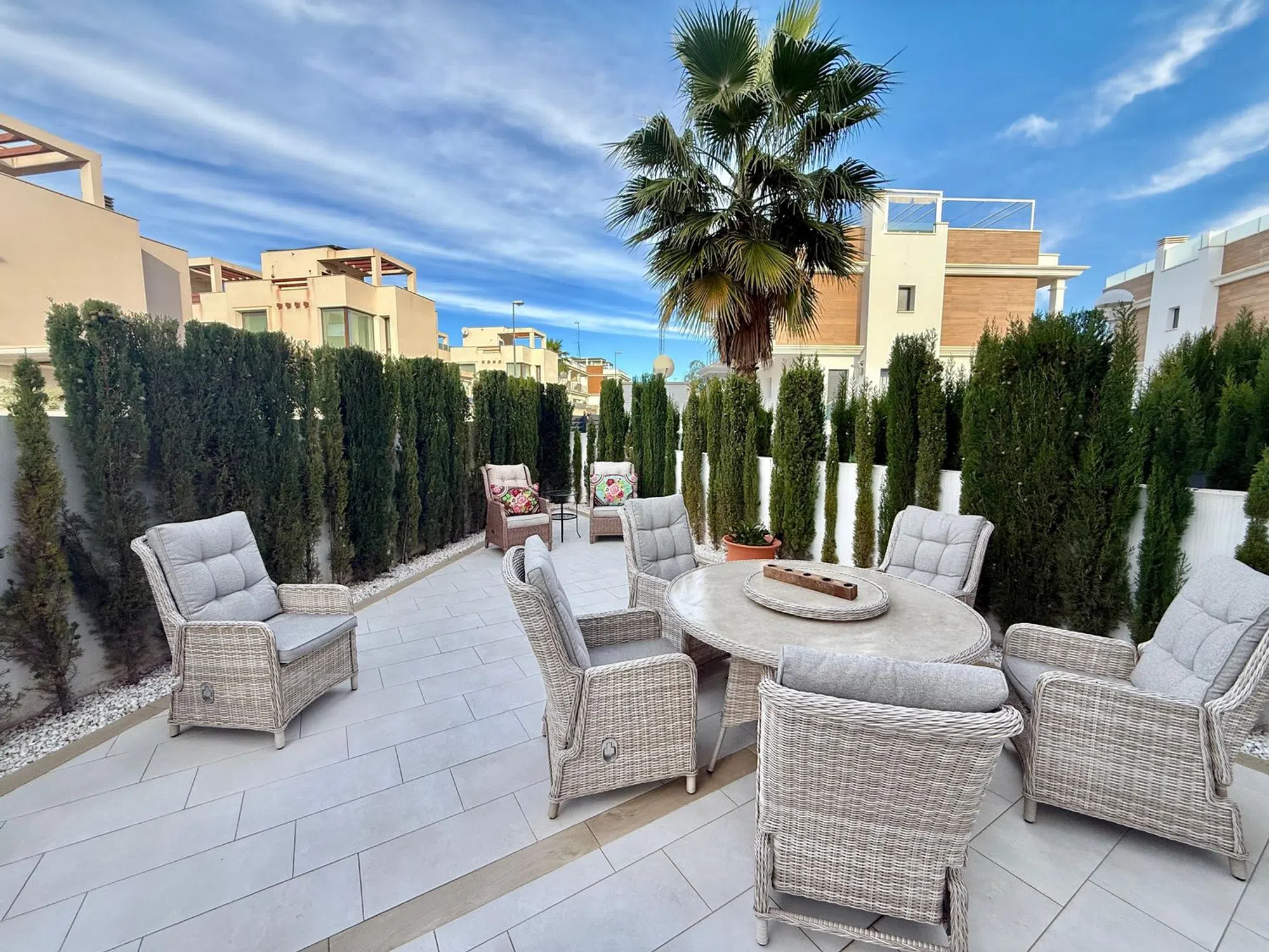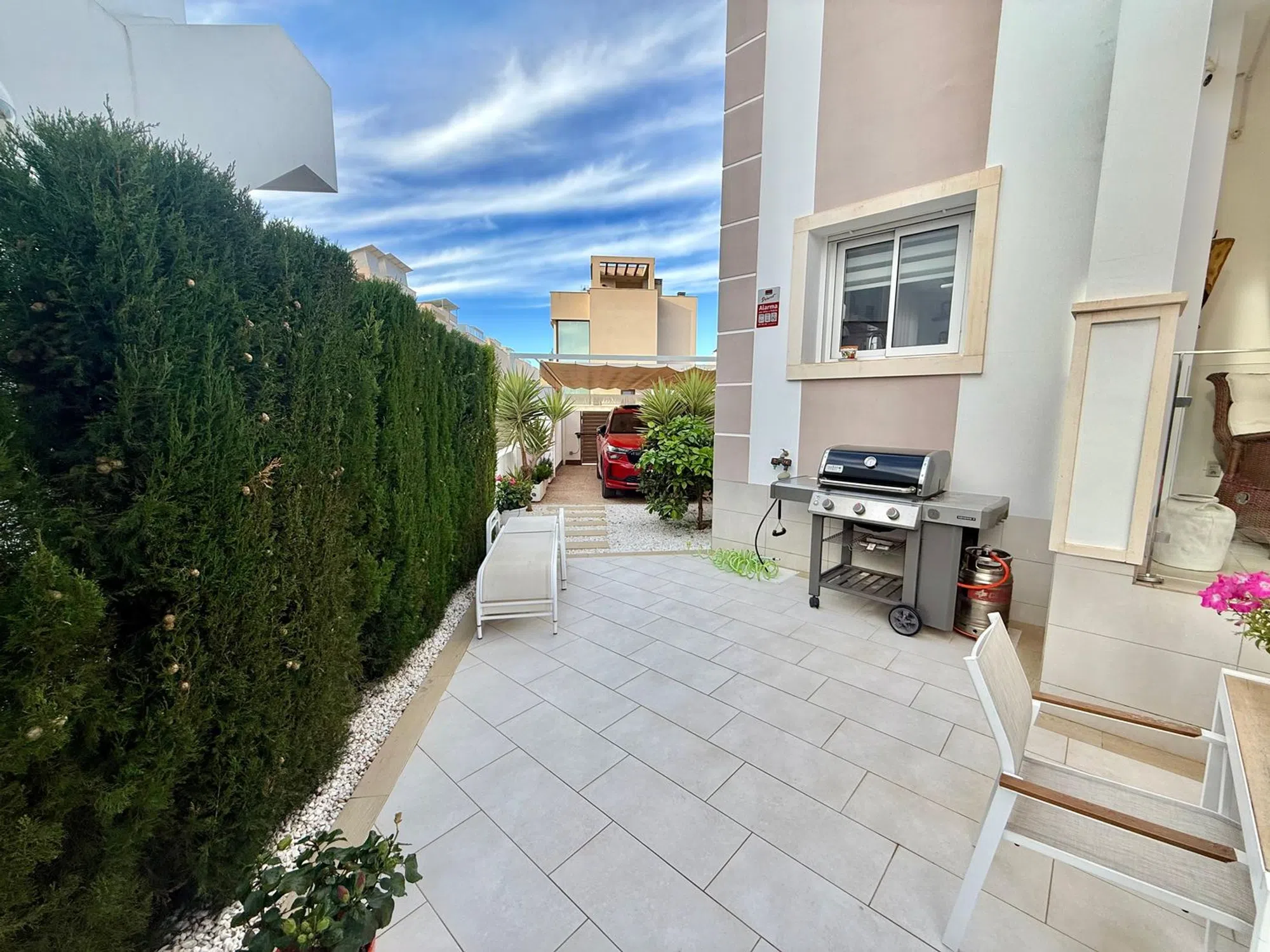 Apartamento en venta en Ciudad Quesada, ubicado en el atractivo residencial Fortuna, una zona tranquila, segura y con excelentes servicios a su alrededor. Esta propiedad, situada en planta baja, ofrece una distribución cómoda y funcional, ideal tanto para residencia habitual como para inversión vacacional o alquiler turístico. Con una superficie interior aproximada de 80 m², el apartamento se entrega totalmente amueblado y listo para entrar a vivir, lo que permite disfrutar de inmediato de todas sus prestaciones sin necesidad de realizar ninguna mejora. Dispone de 2 habitaciones amplias y luminosas, diseñadas para ofrecer confort y privacidad. El dormitorio principal cuenta con baño en suite, proporcionando un espacio íntimo y práctico. El segundo baño completo da servicio al resto de la vivienda. La cocina está totalmente equipada con electrodomésticos modernos y se integra en un espacio abierto que se conecta con el salón, aportando amplitud y mejorando la funcionalidad del área principal. Uno de los grandes atractivos de este apartamento son sus dos jardines privados, uno en la parte delantera y otro en la parte trasera, sumando en total aproximadamente 157 m² de espacio exterior exclusivo. Estos jardines permiten disfrutar del clima mediterráneo, organizar comidas al aire libre, crear zonas de descanso o incluso instalar áreas de juego o relax. Además, la vivienda cuenta con su propia plaza de garaje con acceso directo desde la calle, lo que aporta comodidad y seguridad adicional. El residencial Fortuna destaca por sus cuidadas zonas comunes, ofreciendo una amplia piscina comunitaria rodeada de áreas verdes perfectas para disfrutar en familia o con amigos. La ubicación en Ciudad Quesada garantiza cercanía a comercios, restaurantes, servicios de salud, campos de golf y playas a pocos minutos en coche. Una oportunidad ideal para quienes buscan calidad de vida, comodidad y una excelente inversión en la Costa Blanca. Características principales: Ubicación: Ciudad Quesada, Residencial Fortuna Tipo de vivienda: Apartamento en planta baja Superficie interior: Aproximadamente 80 m² Habitaciones: 2 dormitorios amplios Baños: 2 baños (uno de ellos en suite) Estado: Se entrega totalmente amueblado Cocina: Totalmente equipada con electrodomésticos modernos Espacios exteriores: Jardín delantero Jardín trasero Superficie total de jardines: 157 m² aprox. Plaza de garaje privada con acceso directo desde la calle Zonas comunes: Piscina comunitaria y áreas ajardinadas Entorno: Zona tranquila, cercana a servicios, comercios y áreas de ocio Ideal como vivienda habitual, segunda residencia o inversión para alquiler turístico.