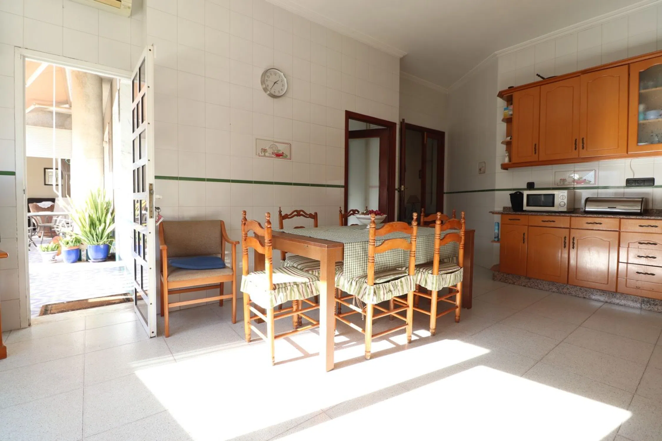 Este apartamento de tres dormitorios en planta baja con orientación sur en Rojales se encuentra con vistas al tranquilo río y a poca distancia de una amplia gama de servicios, que incluyen un mercadillo semanal, un teatro, una escuela y un centro médico abierto las 24 horas. A solo un par de minutos en coche del campo de golf La Marquesa y a solo 10 minutos de la playa, esta propiedad está idealmente situada en el corazón de la Costa Blanca Sur. Con una superficie impresionante de 177 m2, esta casa familiar cuenta con una acogedora sala de estar con chimenea y puertas acristaladas que dan a una terraza, perfecta para relajarse o cenar al aire libre. La cocina independiente equipada, combinada con un comedor, también tiene acceso directo a una terraza e incluye un lavadero para mayor comodidad. Hay tres habitaciones dobles, y la principal se beneficia de una unidad de aire acondicionado, junto con un baño familiar y un baño con ducha adicional. El jardín exterior está completamente embaldosado, por lo que requiere poco mantenimiento, y los residentes pueden disfrutar del acceso a la piscina municipal. ¡Esta propiedad ofrece comodidad, espacio y una ubicación fantástica!