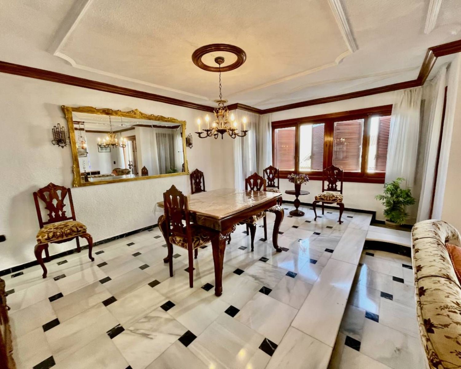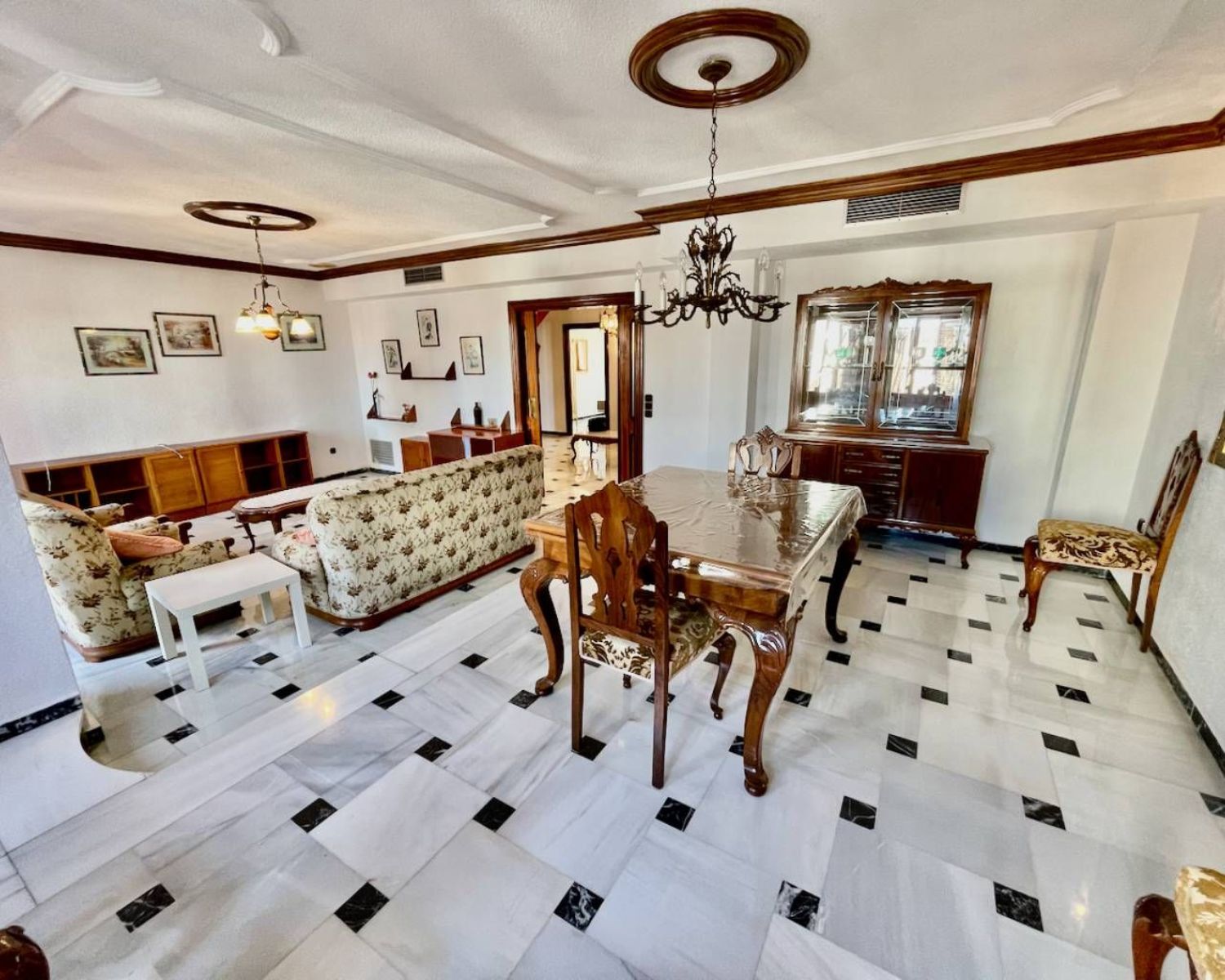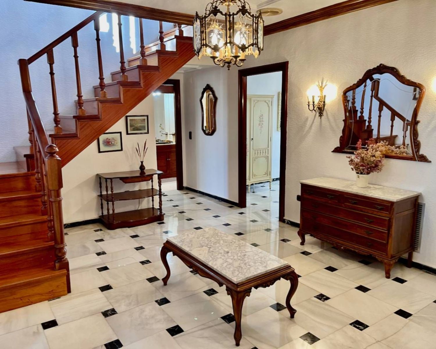 Con un área total de 230 m², este apartamento es ideal para una familia, ya que ofrece generosos espacios habitables y múltiples opciones de almacenamiento. Al entrar, te recibe un amplio y acogedor vestíbulo, que da acceso a una escalera que conduce a otro dormitorio doble y un baño en el primer piso. También encontrarás una sala de estar con chimenea, actualmente utilizada como sala de billar, que se abre a una gran terraza perfecta para disfrutar de comidas al aire libre o realizar barbacoas.