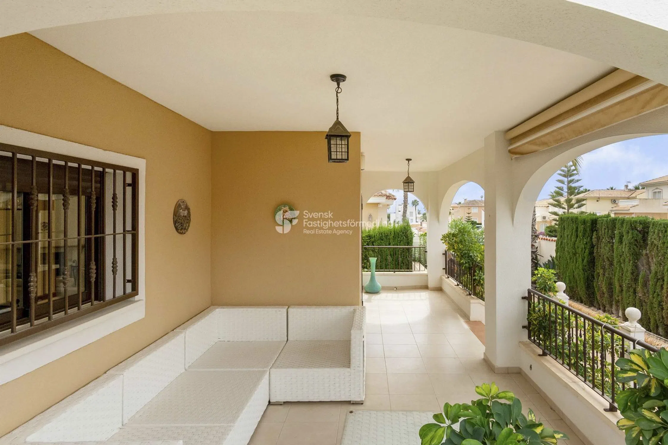 En nuestras oficinas de Torrevieja hablamos sueco y español además de inglés, francés, finlandés e italiano.Svensk Fastighetsförmedling es la agencia inmobiliaria privada más grande de Suecia. Fue fundada ya en 1937 y tiene 230 oficinas en toda Suecia y España. Aquí se presenta una villa bien cuidada con un diseño elegante ubicada en Quesada-La Fiesta.La villa, que cuenta con numerosas zonas interiores y exteriores, realmente invita a pasar tiempo con familiares y buenos amigos.En la parcela de aproximadamente 528 metros cuadrados hay mucho espacio para tumbonas, muebles de salón y, por supuesto, la barbacoa.Para aquellos a los que les guste jugar al golf, hay varios campos a poca distancia en coche. Nos reciben en una sala de estar amplia y luminosa que tiene espacio para un grupo de comensales y una agradable sala de estar frente a una chimenea.La cocina, abierta al salón, está totalmente equipada y tiene buenas opciones de almacenamiento tanto en los armarios superiores como en los inferiores.La cocina tiene una luz agradable que entra por una ventana situada encima del fregadero. La residencia, distribuida en dos plantas, tiene un total de 5 dormitorios y 4 baños, de los cuales 3 son en suite.En el sótano, que tiene entrada independiente desde la parcela, hay una bonita sala familiar, una cocina totalmente equipada y también una sauna con ducha y WC asociados.La villa tiene una preciosa azotea con una bonita vista de toda la zona. Impuesto sobre bienes inmuebles (IBI): 403 euros/año Contáctenos para más información o para reservar una visita. Número de artículo: 385937 Una cálida bienvenida a nosotros en Svensk Fastighetsförmedling en Torrevieja.