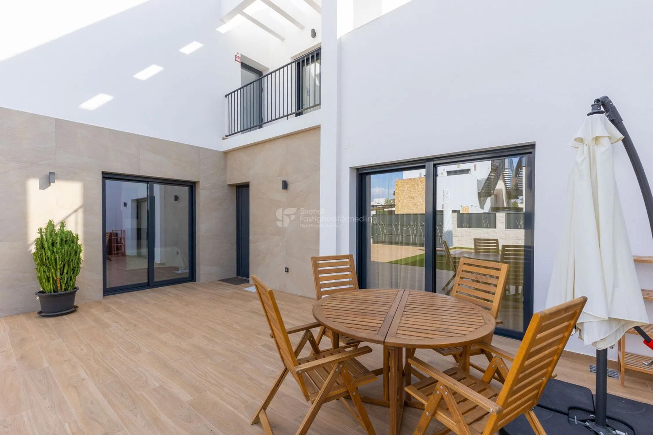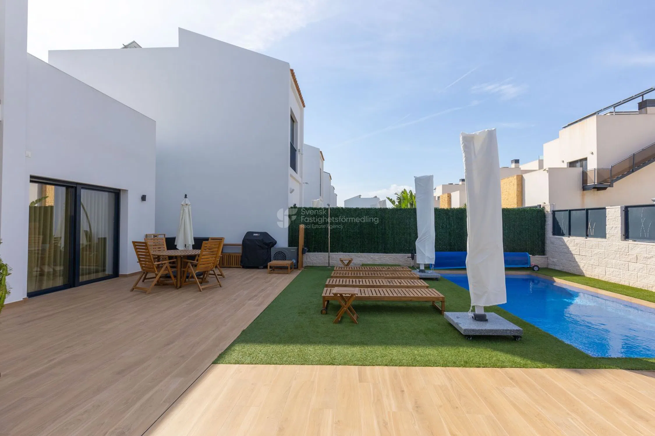 Esta elegante villa, terminada en 2024, combina la arquitectura mediterránea contemporánea con el confort escandinavo y la eficiencia energética. Ubicada en la solicitada zona de Ciudad Quesada, Rojales, ofrece paz y privacidad a la vez que está cerca de campos de golf, restaurantes y a solo 10 minutos en coche de las hermosas playas de arena de Guardamar del Segura. Construida con los más altos estándares, esta propiedad ofrece una combinación perfecta de estilo, funcionalidad y sostenibilidad. Cada detalle ha sido cuidadosamente seleccionado para garantizar la comodidad durante todo el año y una vida de bajo mantenimiento. Distribución La villa está distribuida en tres niveles y ofrece seis habitaciones en total, incluyendo cuatro dormitorios, tres baños y una sala familiar. Planta baja: El nivel de entrada cuenta con un salón luminoso y espacioso conectado a una cocina moderna, totalmente equipada con electrodomésticos integrados y acceso directo a la terraza y la zona de la piscina. En este nivel, también encontrará un dormitorio y un baño, ideal para invitados o para una cómoda vida en un solo nivel. Planta baja: El nivel inferior incluye una generosa sala familiar, perfecta como segunda sala de estar, cine o área de pasatiempos. También hay un dormitorio y un baño, lo que la convierte en una excelente suite para invitados o un refugio privado. Planta alta: El nivel superior cuenta con dos dormitorios y dos baños, ambos con mucha luz natural y acabados modernos. Desde aquí se accede a la terraza privada en la azotea, un espacio perfecto para tomar el sol, relajarse o disfrutar de reuniones nocturnas con vistas panorámicas de Quesada. Zona exterior La parcela privada ha sido diseñada para un fácil mantenimiento y ofrece un equilibrio perfecto de sol y sombra durante todo el día. Disfrute de la piscina privada climatizada, elegantes muebles de exterior, sombrillas y una variedad de áreas de descanso para comer y relajarse. Hay aparcamiento privado disponible en la parcela. Confort y tecnología Esta villa está equipada con paneles solares, una bomba de calor aire-agua y un sistema de aire acondicionado por conductos que garantiza una temperatura uniforme durante todo el año. Combinado con aislamiento de alta calidad e iluminación de bajo consumo, la casa es ecológica y rentable. La propiedad se vende completamente amueblada, con muebles nuevos, sombrillas y una decoración de buen gusto, lista para que se mude y comience a disfrutar del estilo de vida mediterráneo de inmediato. La zona Ciudad Quesada es una zona residencial bien establecida y popular conocida por su ambiente internacional, sus alrededores verdes y sus excelentes servicios. Encontrará restaurantes, tiendas, farmacias, centros médicos, escuelas y el famoso campo de golf La Marquesa a pocos minutos. Los amantes de la naturaleza disfrutarán de las cercanas lagunas saladas y rutas de senderismo, mientras que la playa y la animada ciudad de Torrevieja están a poca distancia. El aeropuerto de Alicante está a unos 35 minutos en coche. Resumen Una villa de nueva construcción y energéticamente eficiente con una distribución inteligente, materiales de alta calidad, una piscina privada climatizada y una impresionante terraza en la azotea, ideal para aquellos que buscan un hogar moderno y confortable en la Costa Blanca. Ubicación: Ciudad Quesada, Rojales Año de construcción: 2024 Habitaciones: 6 (4 dormitorios, 3 baños + sala familiar) Piscina privada climatizada Terraza en la azotea con vistas Paneles solares y sistema de A/C por conductos Totalmente amueblado y listo para entrar a vivir.