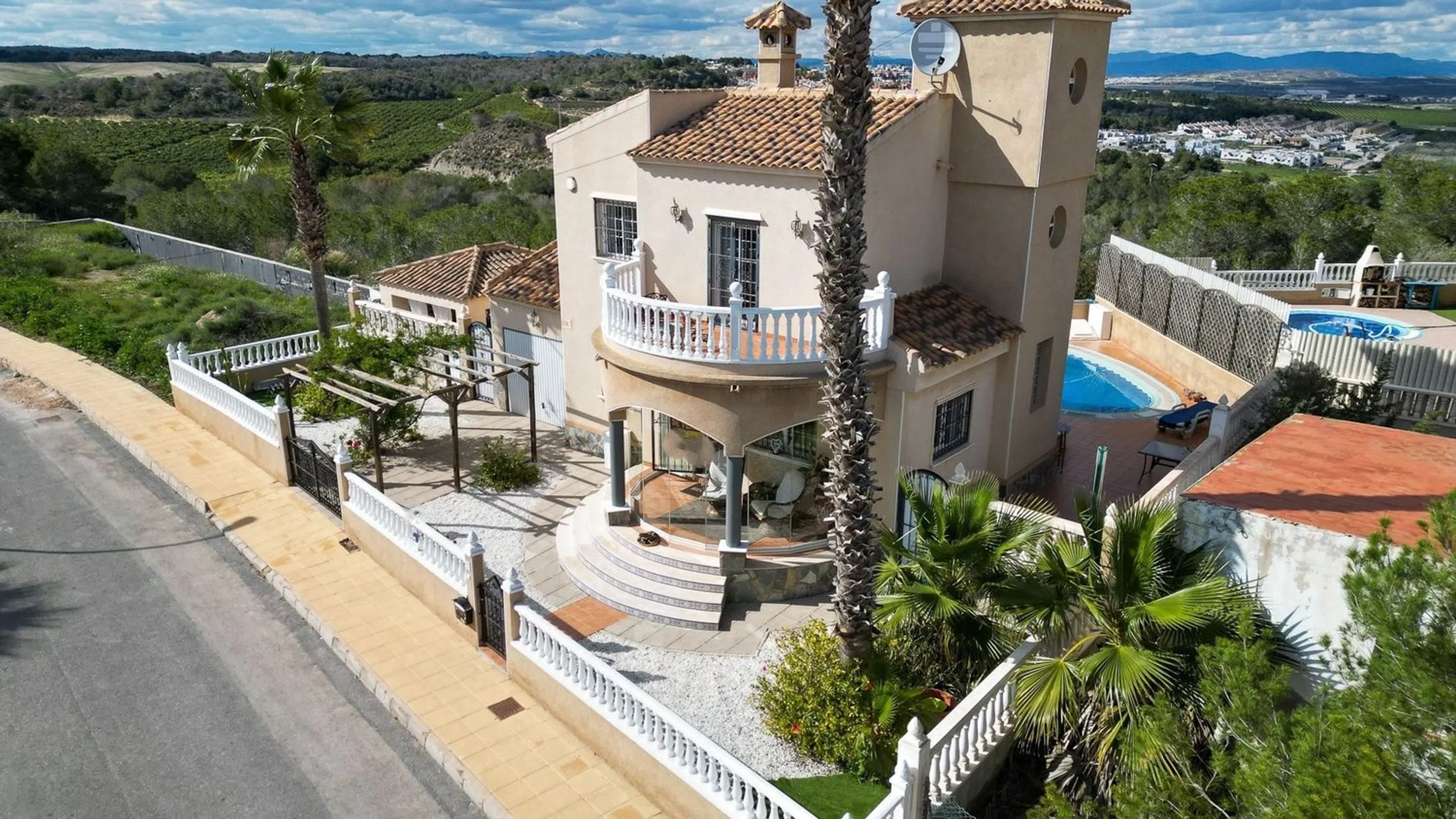 ¡OFERTA! Amplia villa con piscina privada y garaje en Villamarín 3 dormitorios 2 baños Piscina privada Garaje Amueblada Orientación SUR ¡Impresionante villa independiente en Villamartín con impresionantes vistas! � Disfrute de un estilo de vida excepcional en esta villa independiente de 3 dormitorios y 2 baños, ubicada en una amplia parcela en la codiciada zona de El Galán en Villamartín. Esta joya con orientación sur cuenta con piscina privada, solárium y un jardín envolvente, con impresionantes vistas al mar y al campo. Características principales: Espaciosa parcela en esquina: Disfrute de amplios espacios exteriores y privacidad. Piscina privada: Perfecta para refrescarse en los calurosos días de verano. Entrada y garaje cerrados: Aparcamiento seguro para sus vehículos. Solarium acristalado: Ideal para relajarse durante los días y noches más frescos. Zonas de estar con aire acondicionado: Amplias zonas de estar, comedor y cocina que garantizan comodidad durante todo el año. Acogedora chimenea: La sala de estar ofrece un ambiente cálido para las noches más frescas. Cocina abierta: Totalmente equipada con electrodomésticos modernos y un lavadero independiente. Dormitorio principal con balcón privado: Disfrute de su café matutino con impresionantes vistas. Acceso al solárium: Un espacio privado con increíbles vistas al mar y a las montañas. Amplio jardín envolvente: Perfecto para el entretenimiento y la relajación. Ubicada a poca distancia en coche de bares, tiendas, restaurantes y varios campos de golf, esta villa es el refugio perfecto para quienes buscan una casa espaciosa con todas las comodidades. ¡No pierda esta oportunidad excepcional! ¡Contáctenos hoy mismo para programar una visita y hacer de esta impresionante villa su nuevo hogar!