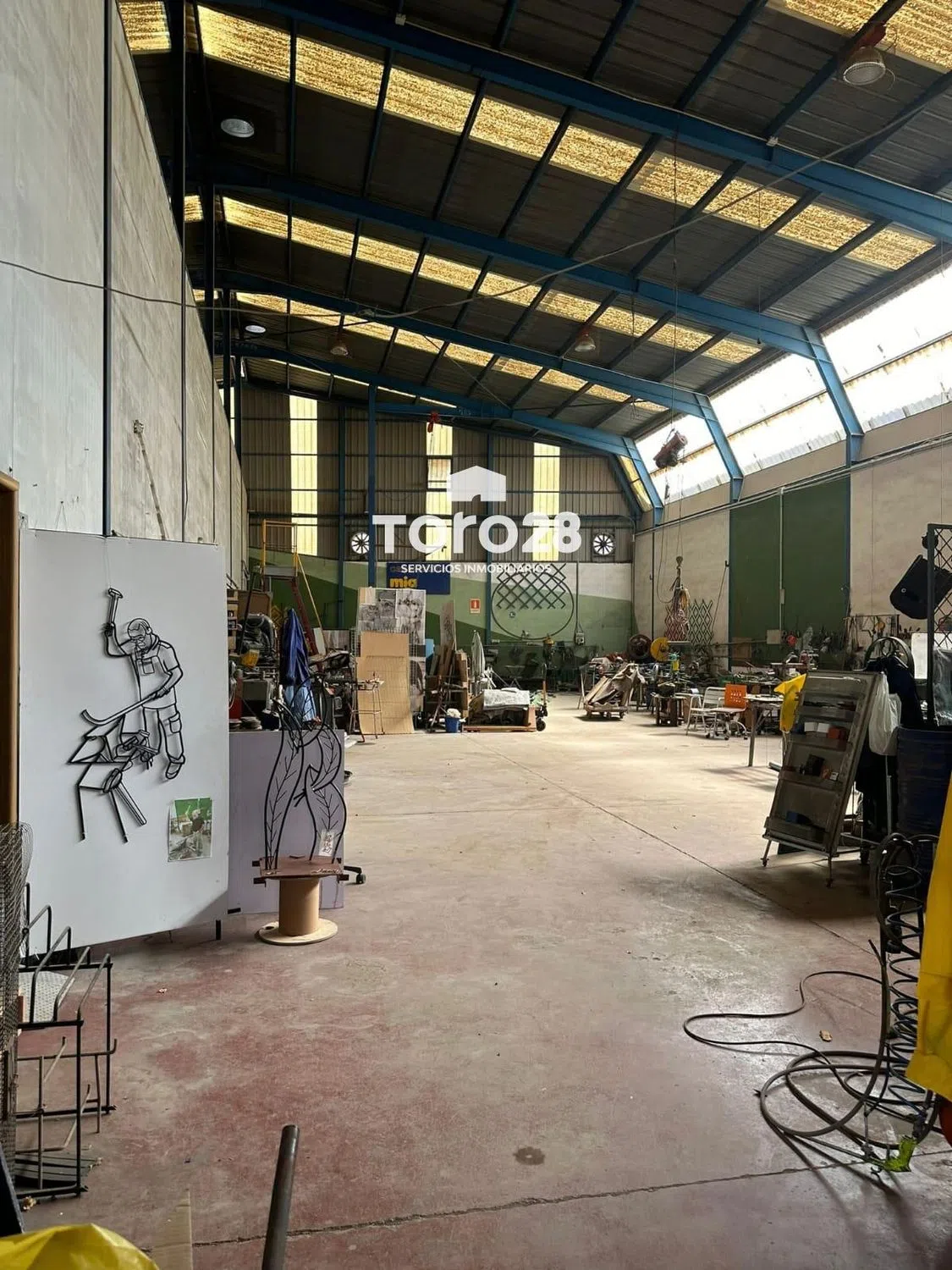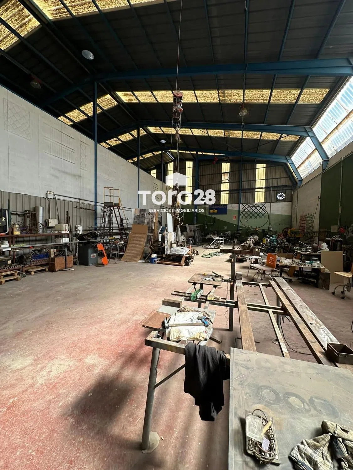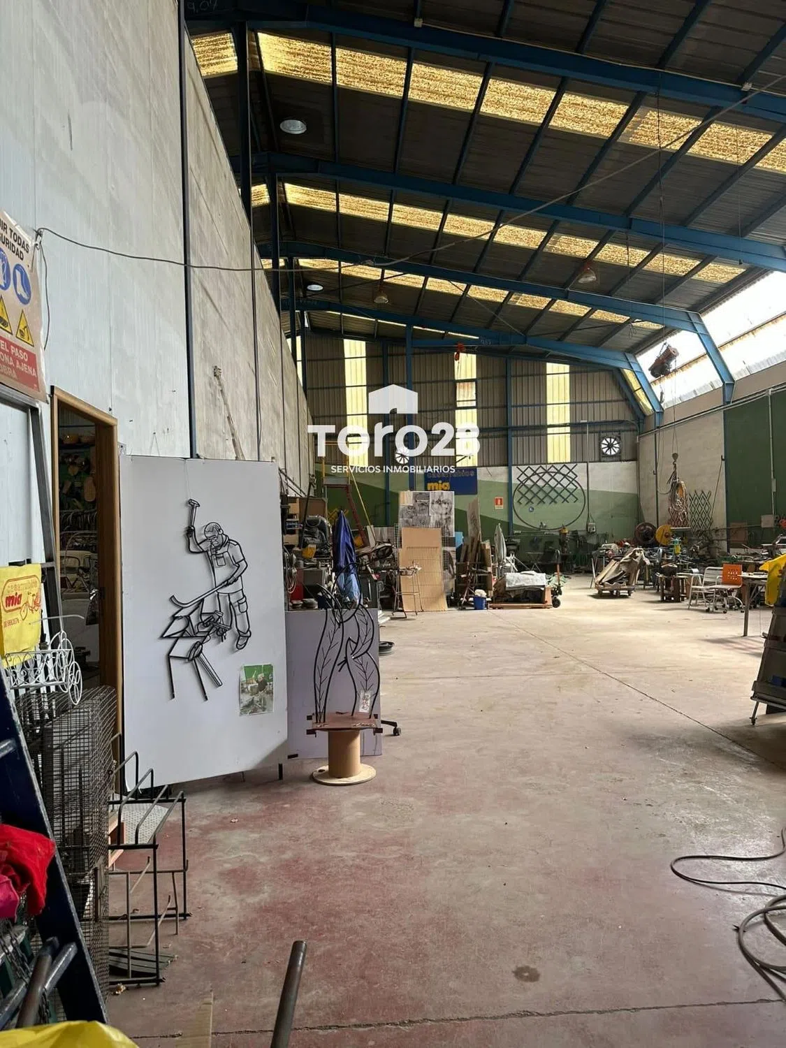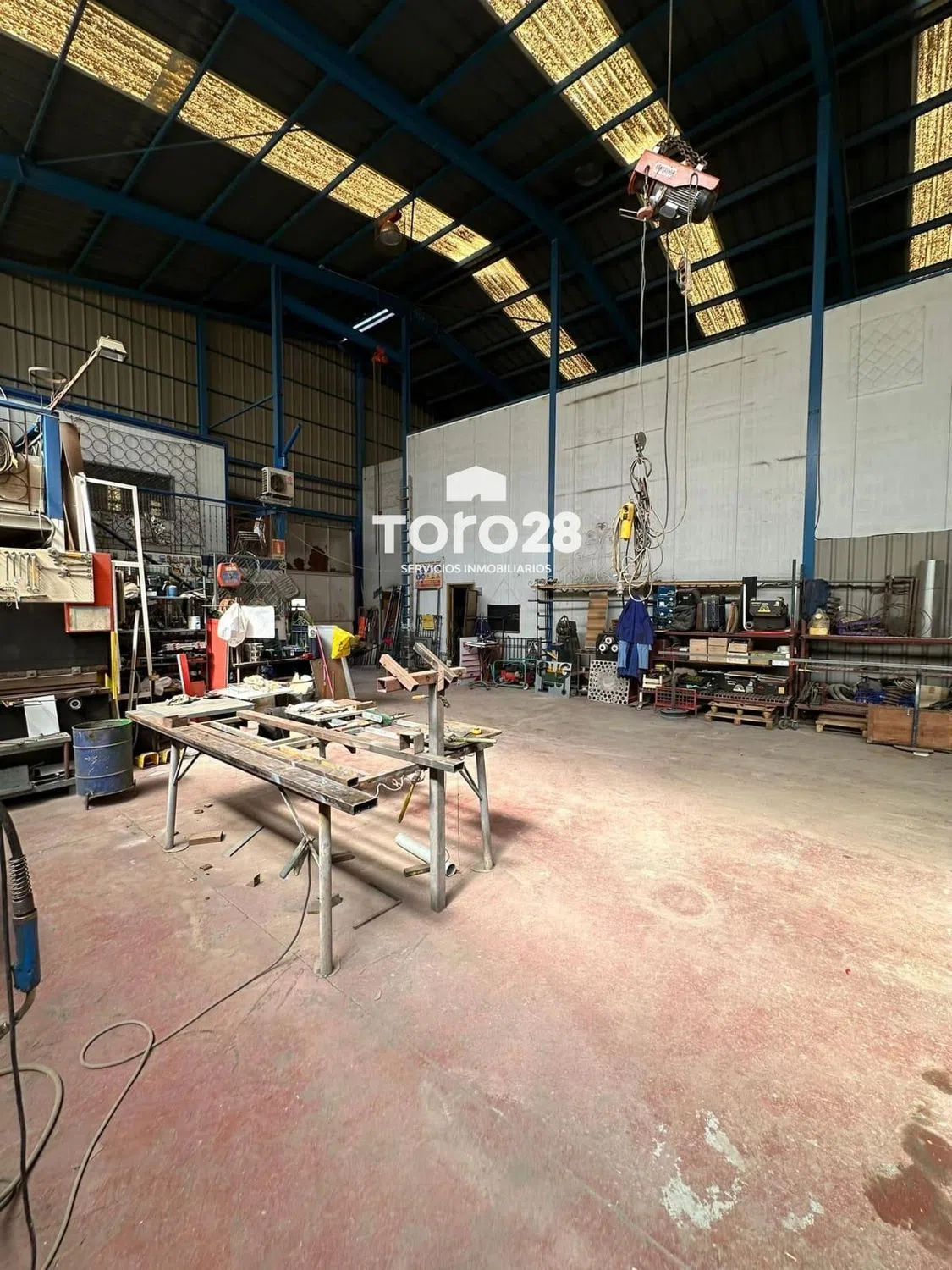 Nave industrial en el polígono de San Vicente. superficie de 764m2 (descontando chaflan) construcción con estructura metálica a dos aguas, con vigas IPN y HPN, lucernarios laterales en toda su longitud. Cubierta con chapa de acero galvanizado trapecial, cumbrera y placas translucida repartidas, respiraderos superiores. Altura central de la cumbrera a suelo: 9,50m, altura de muros 6,00m, más cerramiento vertical metálico Pavimento continuo en hormigón fratasado de 30cm de espesor y pulido en fresco con plas giratorias, suelo color granate, tiene 3 puertas de acceso (4,20x4,35), (3,60x3,80), (1,68x2,05) con puerta de paso a personas. División interior longitudinal coincidiendo con la cumbrera de unión de las dos aguas, pilares metálicos con vigas HPN y paneles tipo sanwich de 6m de altura y libres los 3,50m restantes tasta la cumbrera, esta división no forma parte de la estructura inicial de la nave, por lo que se podría desmontar en caso de necesidad o conveniencia. Esta división tiene dos puertas muy grandes de comunicación. Hay instalación eléctrica industrial de 13,5kw, en la mitad derecha con cuadros para maquinaria y focos de alumbrado en el techo de toda la nave. Instalación de tubería metálica de aire comprimido con varias tomas en los laterales de la parte derecha. Instalación de agua en toda la nave. En la mitad de la derecha hay oficina con aseo y vestuarios para personal de taller con WC y duchas, en la parte baja. Encima hay un despacho y una sala de juntas con acceso por escalera exterior dentro de la nave, y ventanas a la calle. Para más información, puede contactar con nosotros a través de la inmobiliaria Toro28 S. L. Antonia Inscrita en el registro con el número RAICV1442, conforme se requiere en el Decreto 98/2022 de 29 de julio de 2022, del Consell de la Comunitat Valenciana, por el que se regula el Registro de Agentes de Intermediación Inmobiliaria de la Comunitat, cumpliendo con los requisitos. Asociación de agentes de la propiedad inmobiliaria API, nº de asociado A-110. Expertas en asesoramiento inmobiliario en Alicante.
