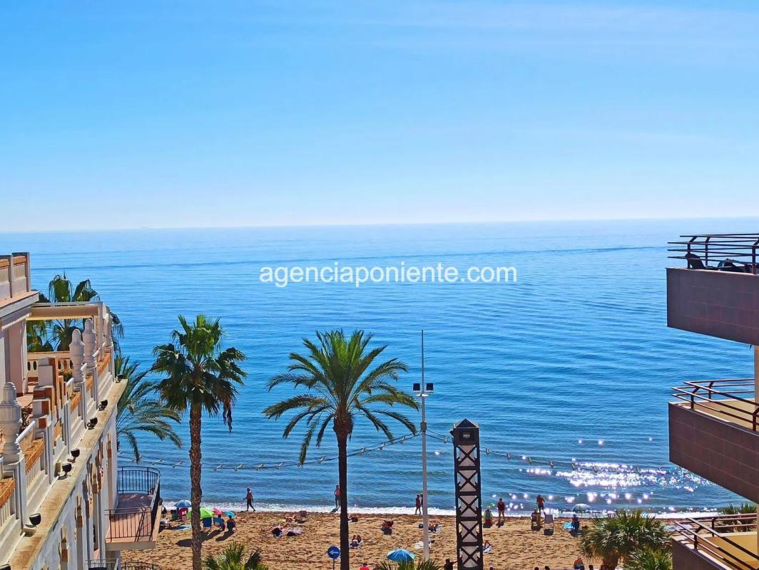 Descubre este impresionante ático ubicado en la primera línea de la playa, con vistas espectaculares al mar. La propiedad cuenta con tres acogedores dormitorios y dos baños modernos, además...