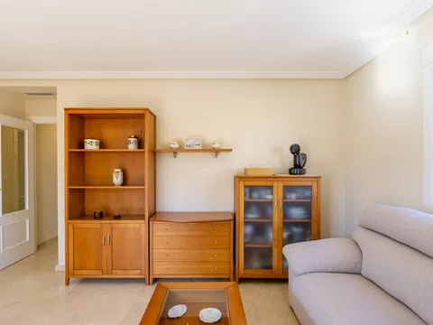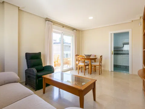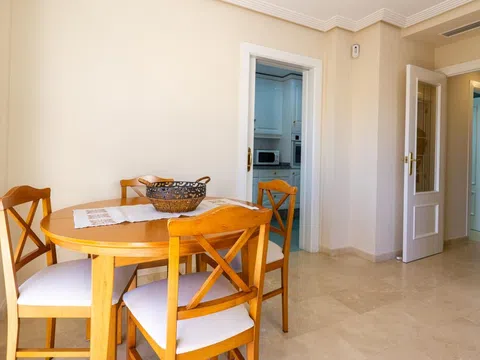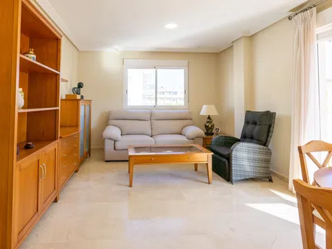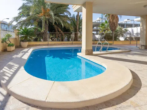 Bonito piso de 3 dormitorios y 2 baños, con amplia terraza y vistas laterales al mar, piscina comunitaria, parking y trastero, ubicado a un paso de la emblemática playa de Santiago Bernabéu, en Santa Pola. La vivienda es muy luminosa gracias a la estupenda terraza que le proporciona bonitas vistas del mar y la costa. Se trata de un piso con muy buena ventilación, ya que es una esquina. Tiene una distribución ideal, con 3 dormitorios bien equipados, el dormitorio principal cuenta con baño completo en suite, tambien cuentas con un cuarto de baño completo totalmente equipados. En la propiedad destaca el amplio salón – comedor, con acceso directo a la terraza, con bonitas vistas, donde podrás vivir fantásticos momentos con familiares y amigos, mientras disfrutas del magnífico clima mediterráneo. La cocina es independiente está completamente equipada y amueblada. Además, cuenta con mucho espacio de almacenaje y una galería independiente para hacer la colada. La vivienda está en la tercera planta con ascensor de un edificio privado muy bien conservado, cuentas con una estupenda piscina comunitaria, plaza de parking, trastero y solarium comunitario. La ubicación de la propiedad es ideal, ya que se encuentra a tan solo unos metros de la playa, en una zona muy tranquila y segura, donde se respira un ambiente excelente. En la zona se puede disfrutar de una gran oferta gastronómica, además de todo tipo de servicios, como supermercados, cines, farmacias, gimnasios, tiendas, etc. A tan solo 2 minutos está el centro de Santa Pola y su emblemático paseo marítimo.