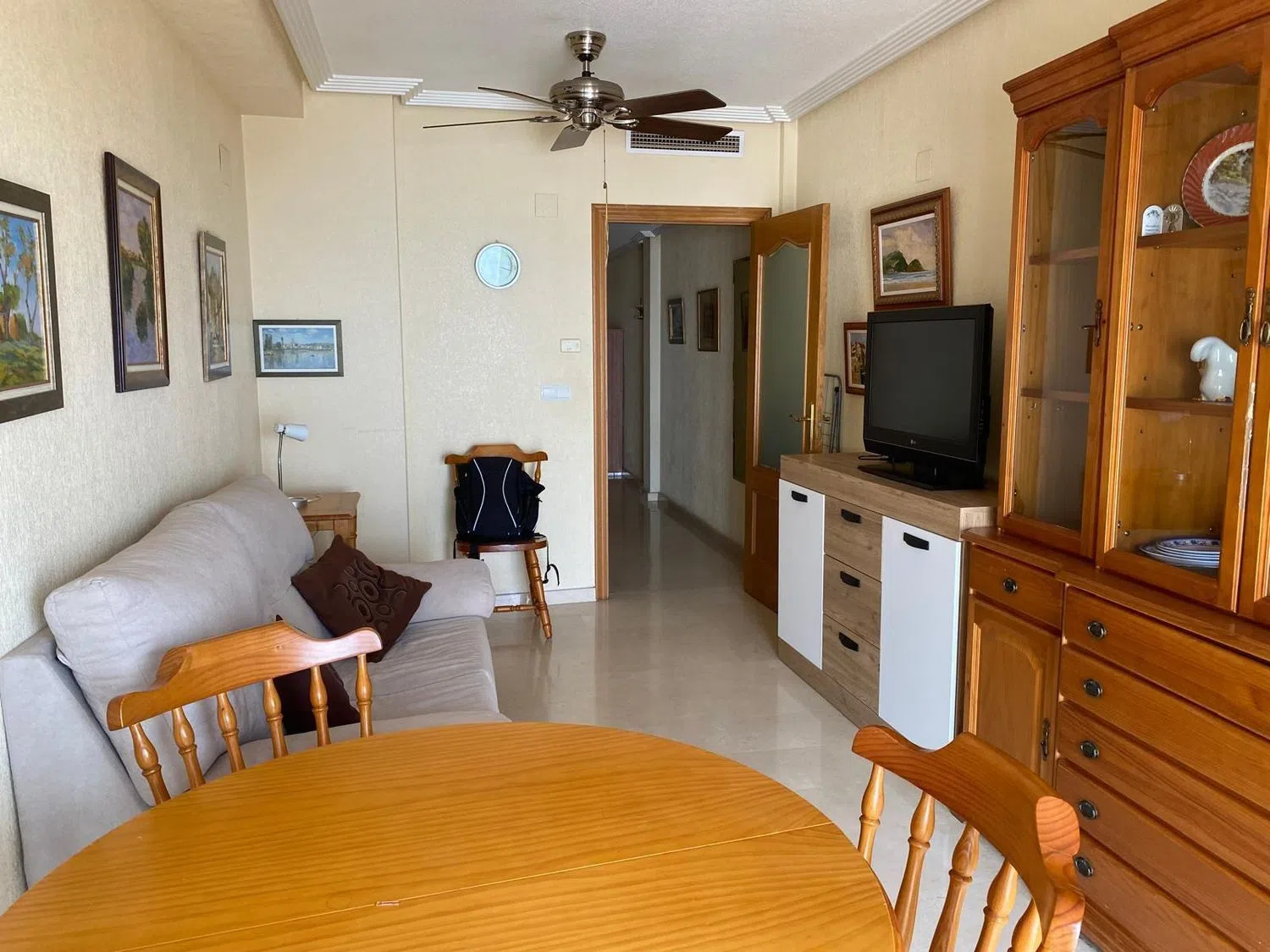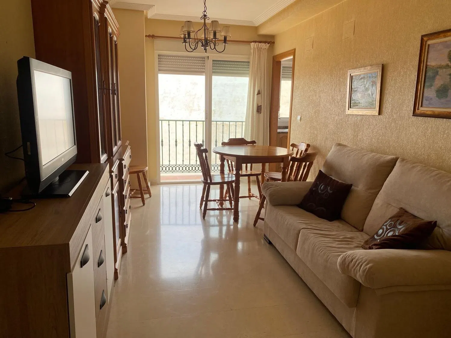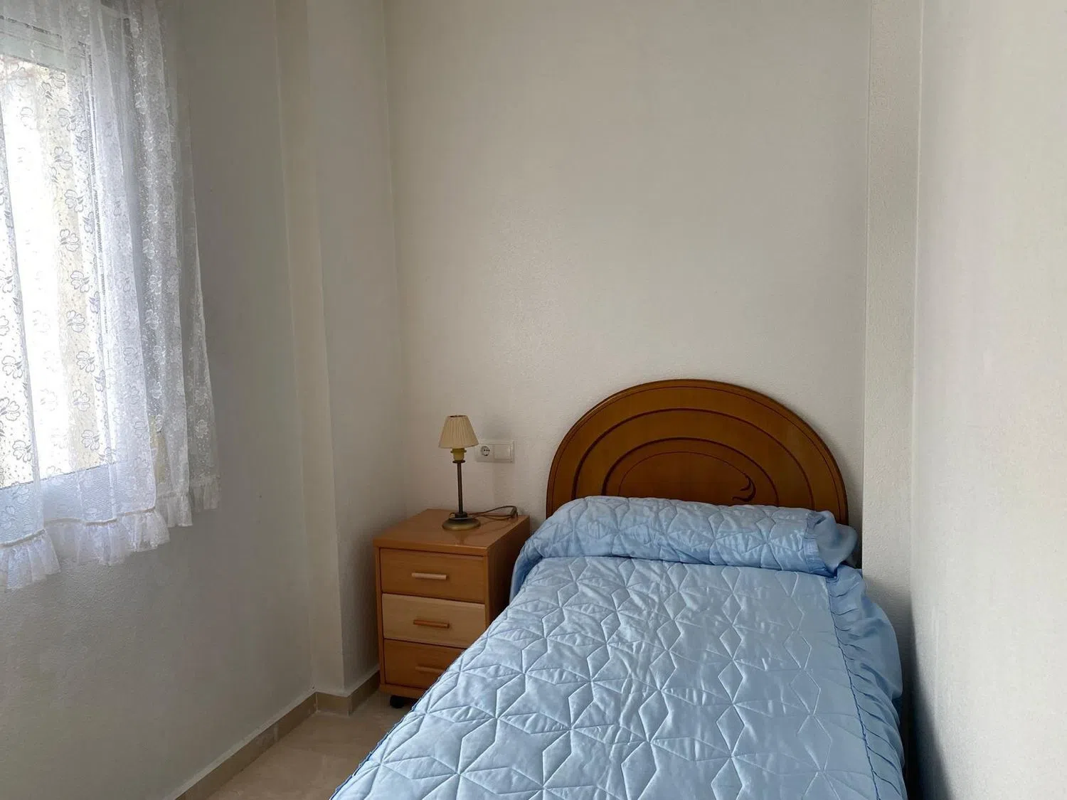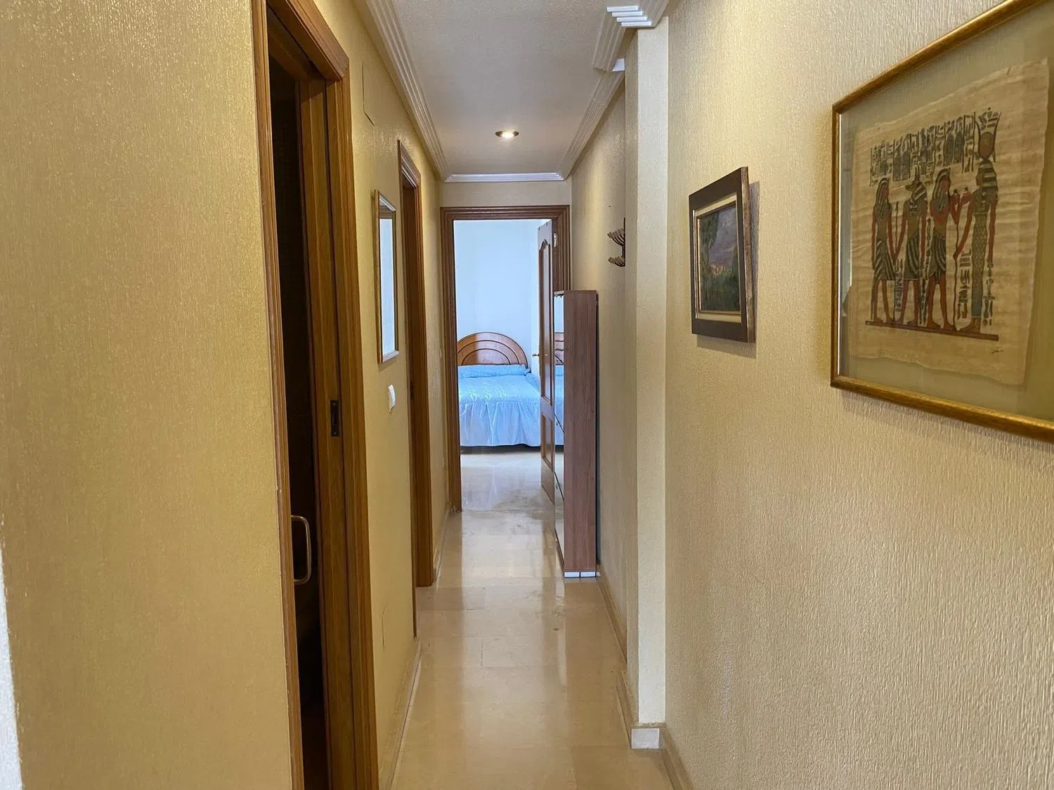 De woning beschikt over twee slaapkamers: één tweepersoonskamer met inbouwkast en een eenvoudige kamer. De keuken is gezellig en volledig uitgerust, de woonkamer is ruim en licht, en het balkon voegt een aangenaam extern tintje toe om van het weer te genieten. De badkamer is compleet en de woning heeft een vloer van hoge kwaliteit marmer. Bovendien is er airconditioning in het hele huis, de verf is in uitstekende staat van behoud en de massief houten deuren zijn goed onderhouden. De ramen zijn van aluminium met dubbele isolatie, wat comfort en rust garandeert.
