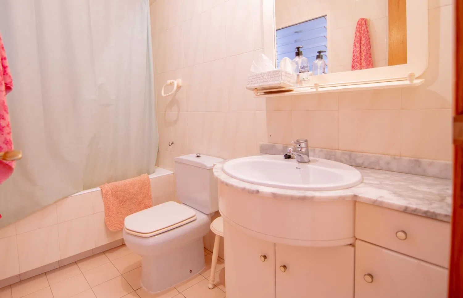 Opmerkelijk is dat het huis beschikt over twee complete badkamers, beide uitgerust met een bad en alle benodigde accessoires. De keuken is zeer ruim, volledig ingericht en uitgerust met moderne apparatuur, en beschikt bovendien over een galerij voor was- en opslagmogelijkheden.