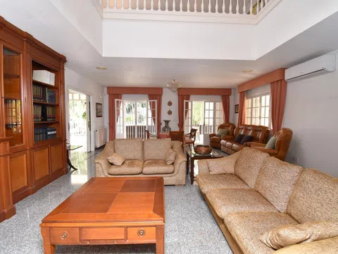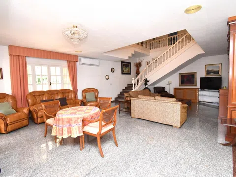 Op het buitenterrein van het perceel staat een huisje met barbecue, eetkamer en eetgedeelte buiten, waardoor u kunt genieten van familiediners of etentjes met vrienden in de open lucht. Het beschikt over een tennisbaan, uitgestrekte tuinen met palmbomen en fruitbomen en een groot zwembad van 14x6 om de hete zomerdagen aangenaam door te brengen. Vanaf de buitenzijde heeft u toegang tot een semikelder met een ingang voor voertuigen, een badkamer en twee ruime opslagruimtes. Er is ook een overdekte garage buiten.
