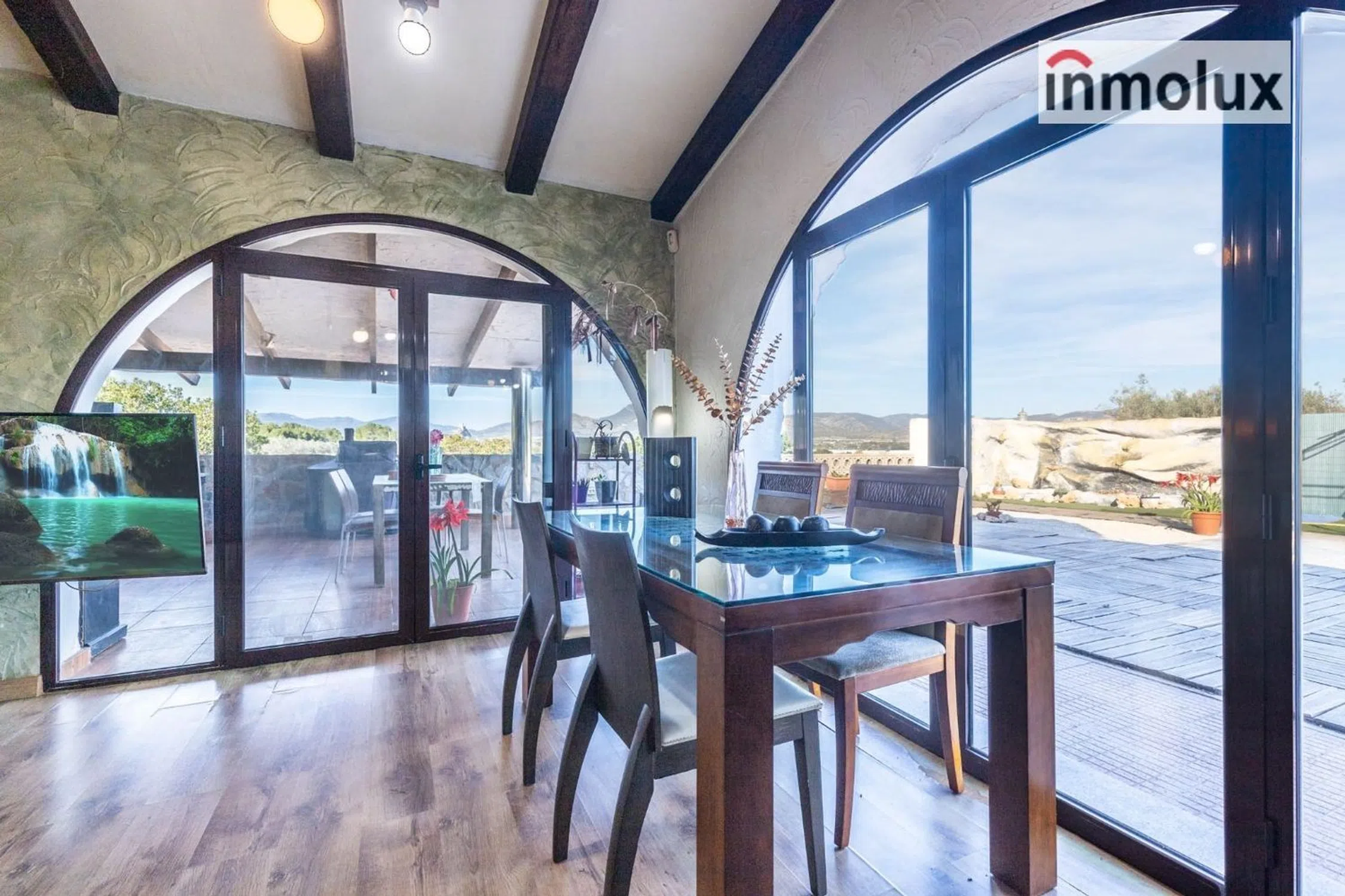 INMOLUX API Agente de la Propiedad Inmobiliaria COL.1044 Presenta: Este magnífico chalet en Sax, Alicante, es una verdadera joya y la exclusividad que combina la tranquilidad del campo con la comodidad de estar cerca del centro urbano. Ubicado en una parcela de 17,325 m2, este oasis ofrece un estilo de vida único en un entorno natural impresionante. Al entrar en esta propiedad de ensueño, te recibirán varios salones elegantemente decorados, que te invitan a disfrutar de momentos de relajación y entretenimiento en un ambiente refinado. Los detalles de diseño y la calidad de los materiales utilizados crean una atmósfera de lujo y confort en cada rincón. La casa cuenta con dos amplias habitaciones que se convierten en tu refugio privado, la principal dispone de una gran habitación- vestidor, todo ello ofreciendo la tranquilidad necesaria para un descanso reparador. Además, el baño, diseñado con acabados de alta gama, brinda una experiencia de spa en casa que te cautivará. Y cabe destacar su magnífica cocina totalmente equipada con materiales de primera calidad, bancada de silestone y gran capacidad de almacenaje con armarios hasta el techo. Uno de los puntos destacados de esta propiedad es su maravilloso porche, un espacio al aire libre perfecto para disfrutar del clima mediterráneo y las vistas panorámicas de los alrededores. Además, la zona acristalada con marquesinas y ventanas de seguridad agrega un toque de elegancia y funcionalidad, permitiéndote disfrutar del entorno en todas las estaciones del año con total seguridad y confort. La presencia de olivos en la parcela añade un encanto especial, creando un ambiente sereno y natural que invita a relajarse y conectar con la naturaleza. Además disfrutarás de una zona adecuada para caballos y un gran almacén con baño. Esta propiedad representa una oportunidad única para aquellos que buscan un estilo de vida exclusivo en un entorno privilegiado. Su ubicación cercana al centro de Sax te brinda acceso a todos los servicios y comodidades que puedas necesitar, mientras que su espacio exterior te permite disfrutar de la privacidad y la belleza del entorno rural. En resumen, este chalet en Sax es mucho más que una casa; es una experiencia de lujo y bienestar en un entorno natural incomparable. ¡No dejes pasar la oportunidad de convertir esta propiedad en tu hogar de ensueño! *El precio no incluye el pago de impuestos de transmisiones patrimoniales, los gastos notariales e inscripción en el registro de la propiedad. *NO se incluyen en el precio, el mobiliario, los electrodomésticos y el material anclado no de obra, salvo que se especifique lo contrario. *El presente documento tiene carácter meramente informativo, orientativo y no vinculante por lo que no supone información contractual alguna, siendo su uso estrictamente comercial.