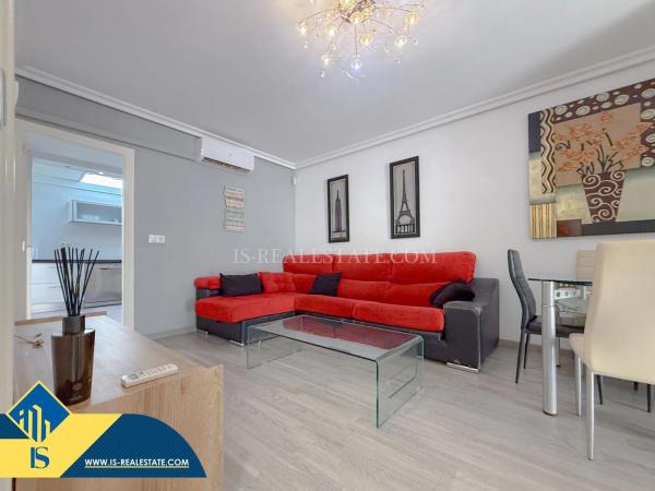 Descubre este espectacular apartamento de lujo con elegancia contemporánea. Con dos amplios dormitorios, cada uno diseñado para ofrecer un refugio acogedor y sofisticado, esta propiedad ha sido meticulosamente reformada para resaltar su belleza innata. Su precioso diseño combina a la perfección materiales de alta calidad y acabados modernos que deleitarán tus sentidos. Ubicado a solo 200 metros de las doradas arenas de la playa de Torrevieja. Además, cuenta con garaje cerrado incluido en el precio, garantizando seguridad y comodidad para tu vehículo. La distribución inteligente maximiza los espacios ofreciendo una fluidez excepcional entre las áreas sociales e íntimas; ideal tanto para relajarte como para recibir invitados en un ambiente elegante pero cálido.